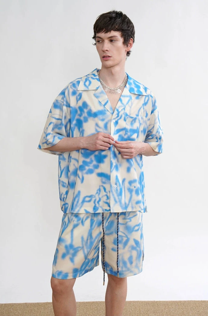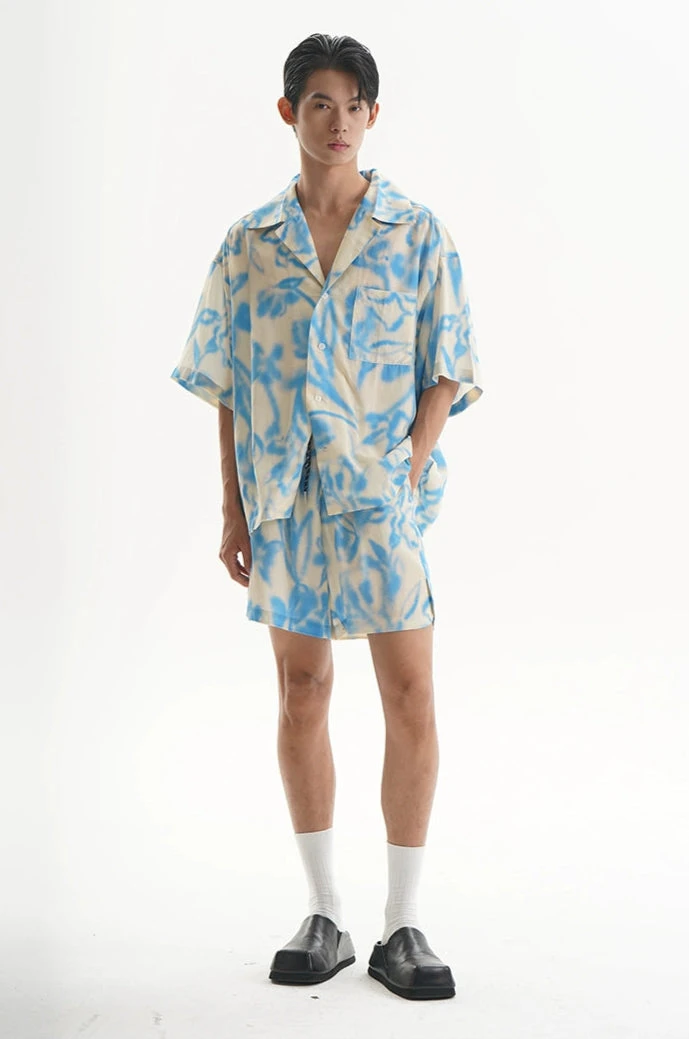 A laid-back take on classic tailoring, this abstract tie dye button-up shirt and shorts set is built for ease without losing edge.