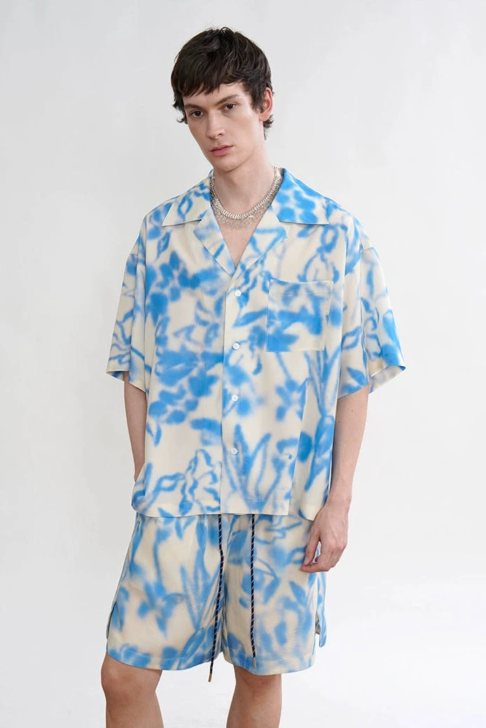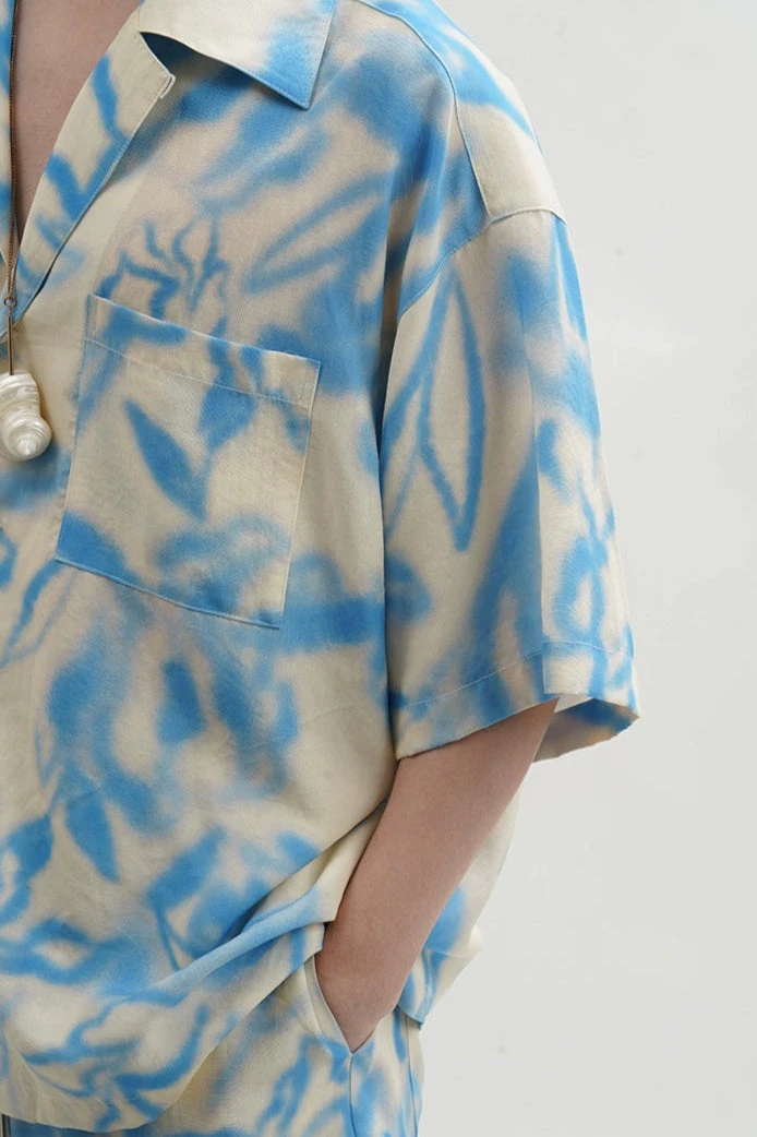 The all-over abstract floral-inspired print gives it a distinct mood, striking that balance between chill energy and sharp detail. Crafted from 100% Tencel, the fabric feels soft and breathable against the skin, with a smooth texture that holds color well. The Cuban collar and loose fit give it a relaxed silhouette, while the digital dye print adds visual depth and a slightly offbeat energy that feels right whether you’re heading out, staying local, or packing light for a quick trip.Â