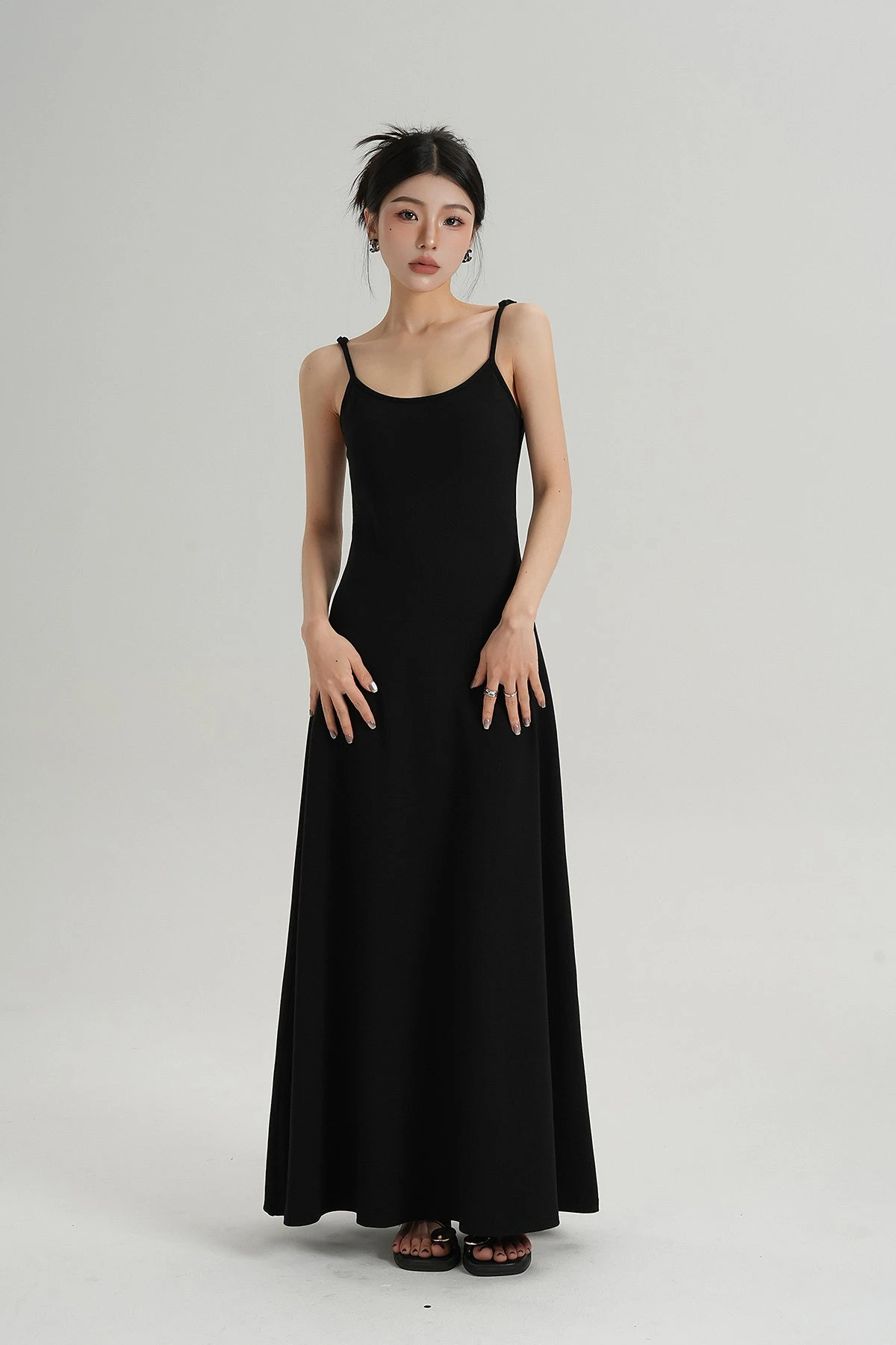 Designed with a minimalist edge, this adjustable spaghetti strap maxi dress blends effortless style with a sleek, tailored fit.