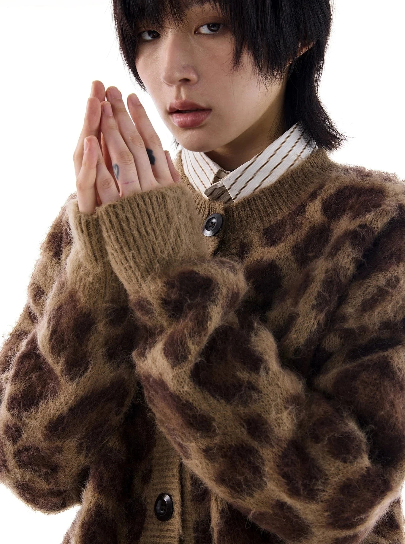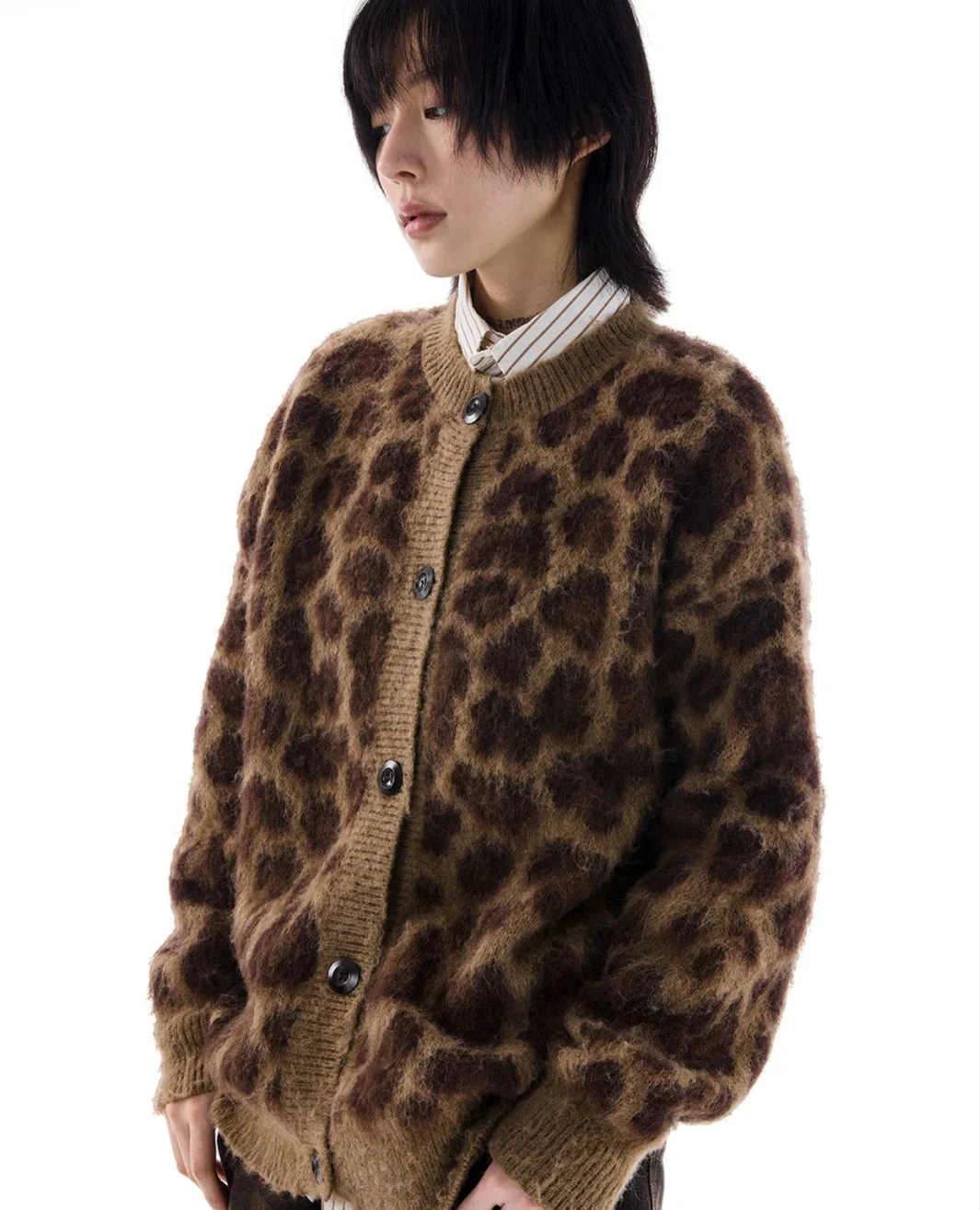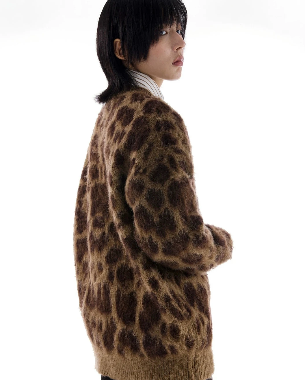 Crafted for those who appreciate the finer details, this cardigan features a sumptuous blend of polyester and wool, with a touch of unique textures. Its striking animal print is balanced by a cozy, fuzzy finish, while ribbed trims add a refined edge to the relaxed silhouette. A single-breasted closure and a loose-fitting shape make this knitwear piece a versatile addition to any wardrobe.