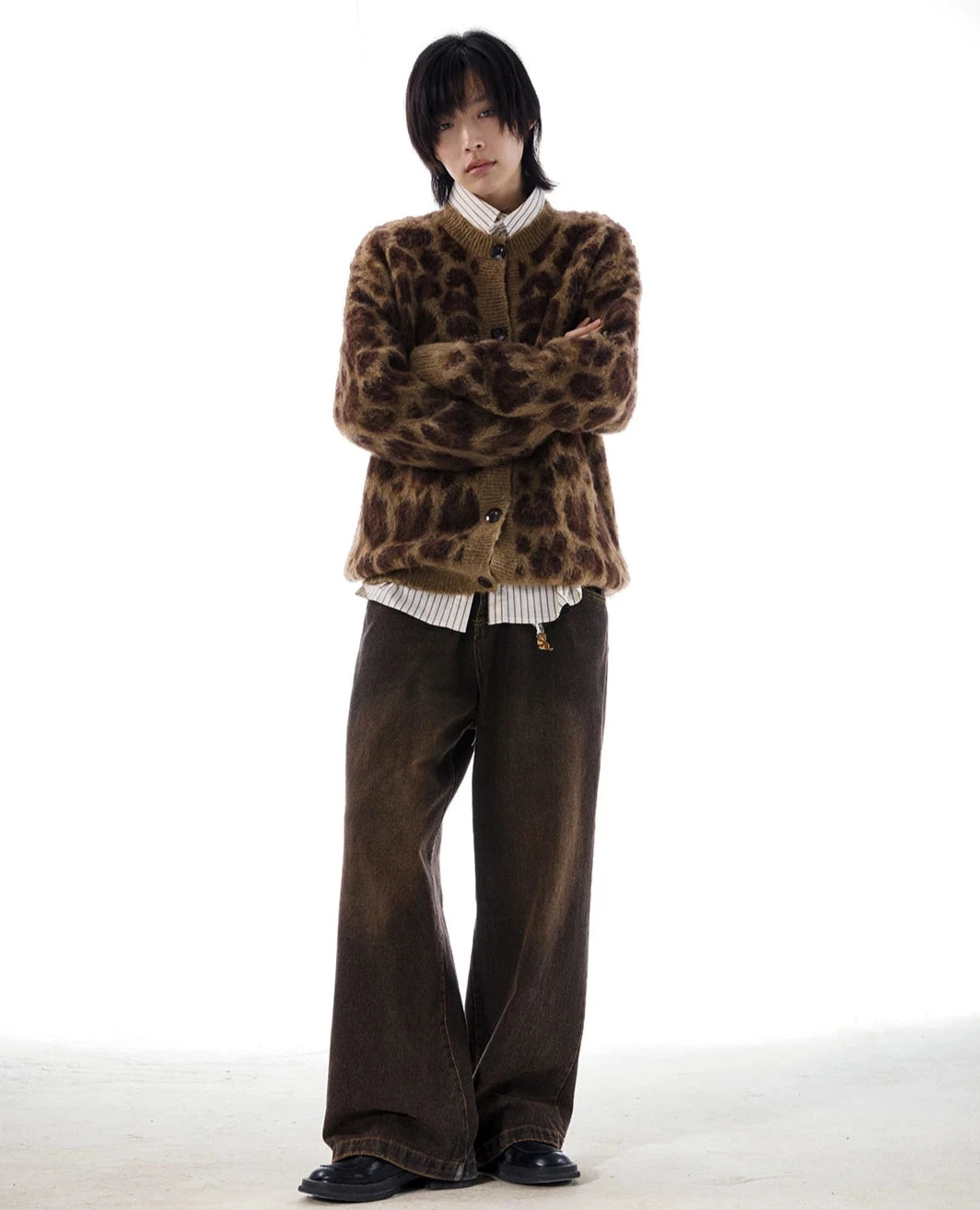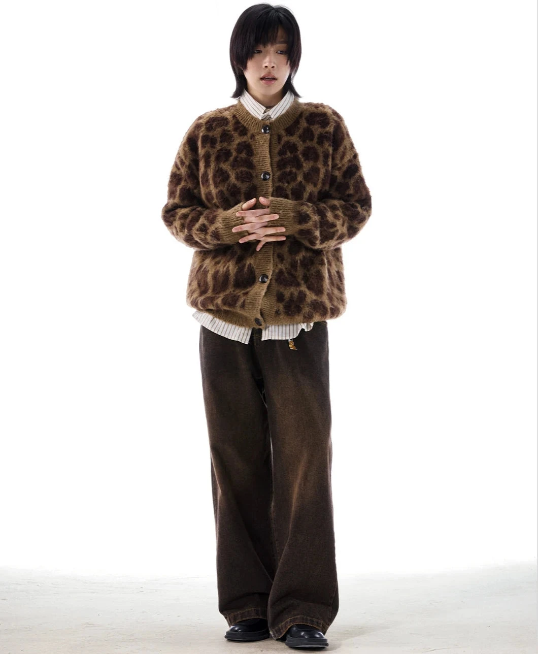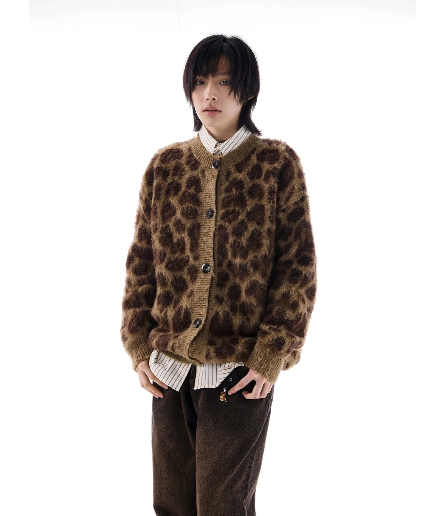 Crafted for those who appreciate the finer details, this cardigan features a sumptuous blend of polyester and wool, with a touch of unique textures. Its striking animal print is balanced by a cozy, fuzzy finish, while ribbed trims add a refined edge to the relaxed silhouette. A single-breasted closure and a loose-fitting shape make this knitwear piece a versatile addition to any wardrobe.