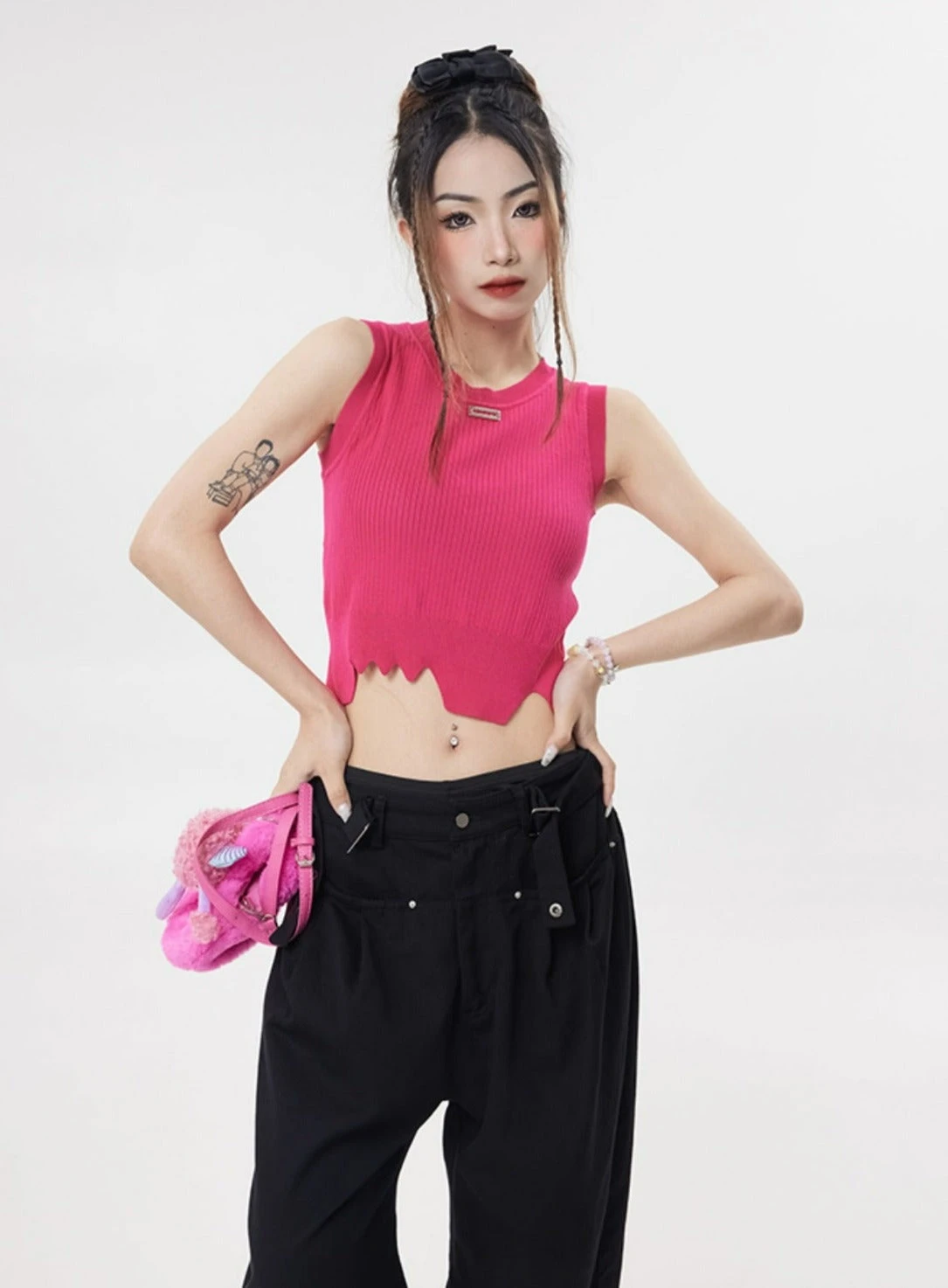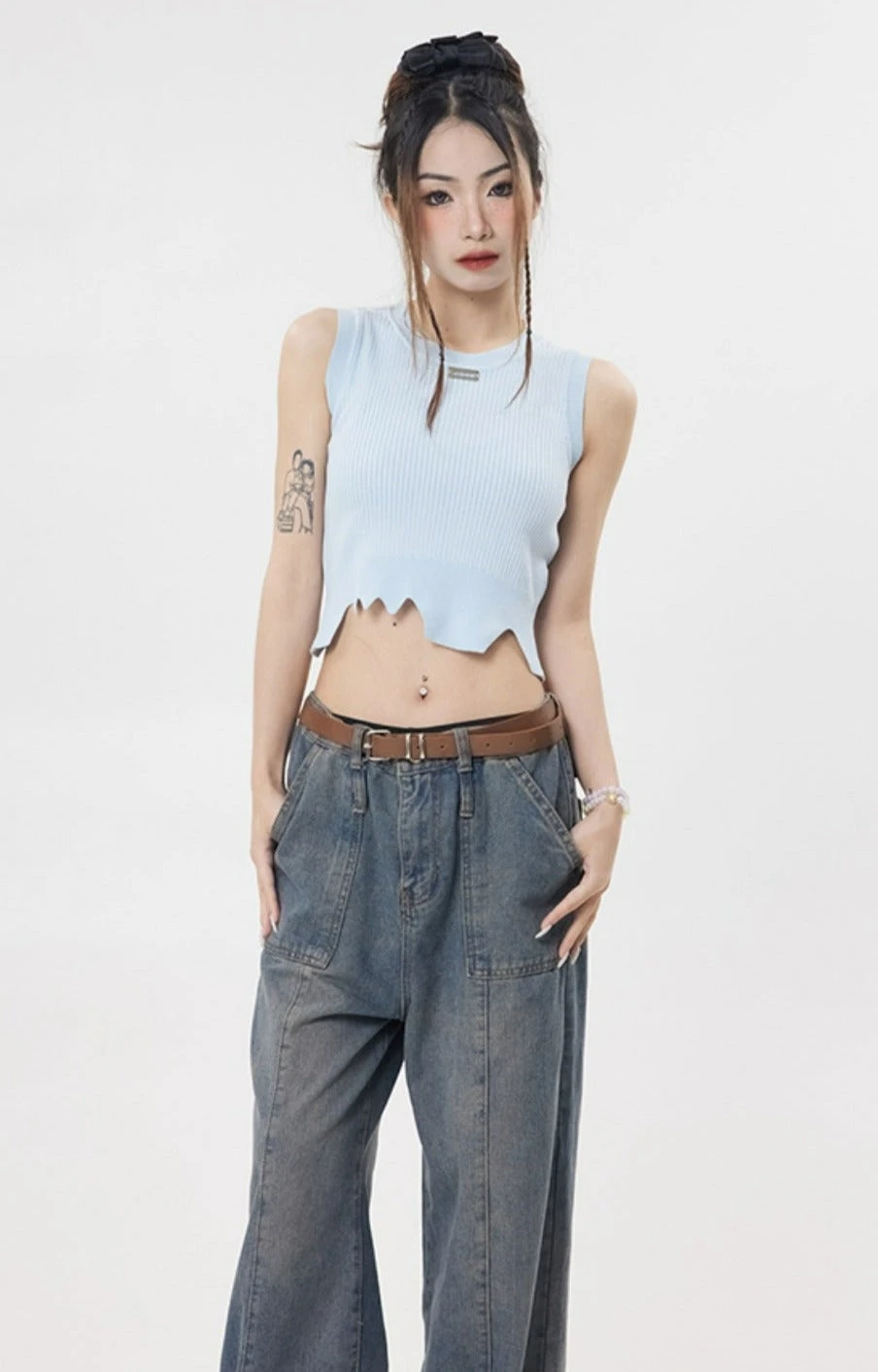 This stylish Distressed Sleeveless Cropped Top is perfect for hot days. Its cropped length and asymmetric hem make it a fashionable choice, while its comfortable fit makes it a great option for all-day wear. Pair with high waist jeans or skirts for an effortless, elegant look.