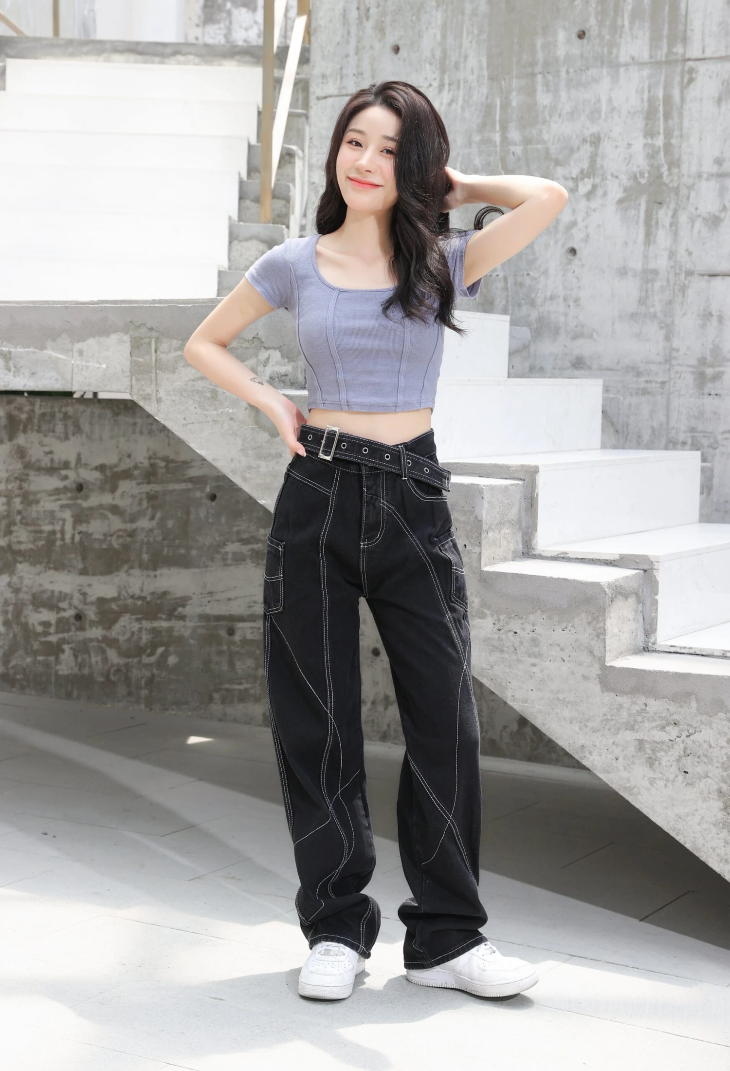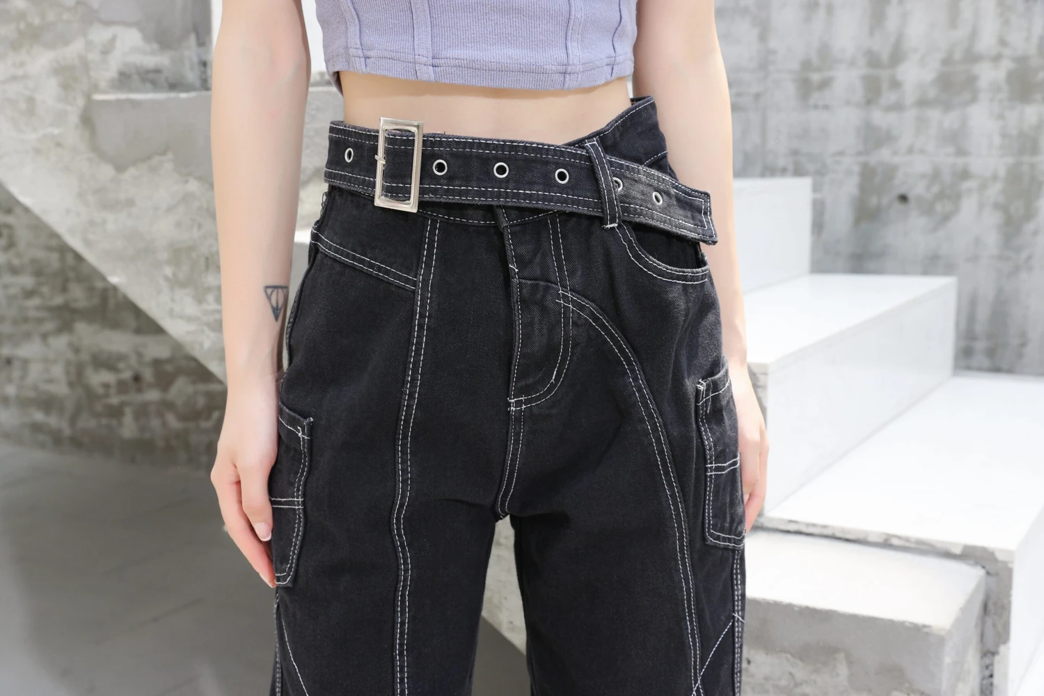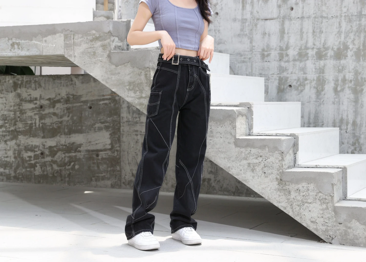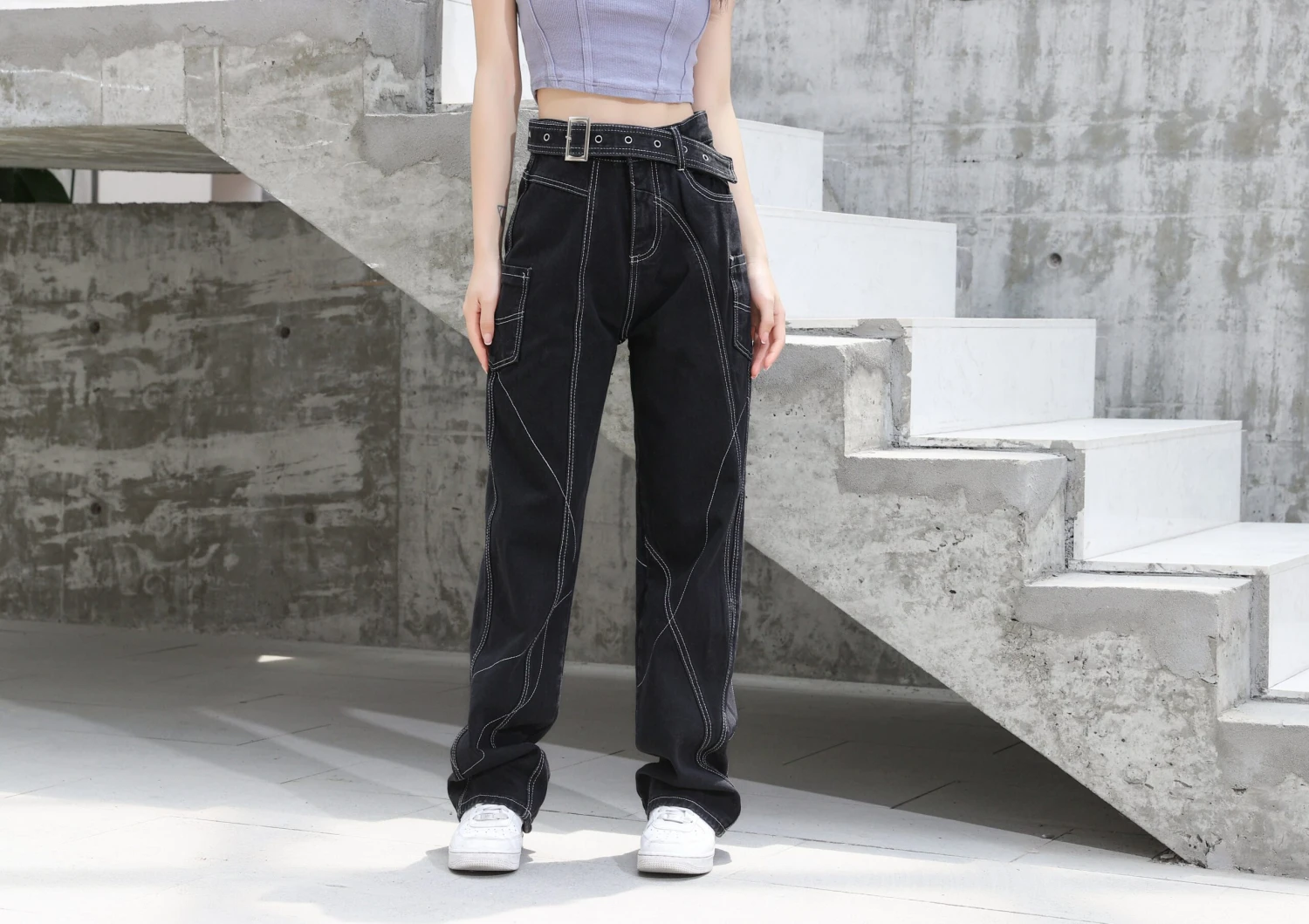 Casual meets chic with nightcity clothing’s Baggy Belted Jeans. The loose fit of this denim pant will match the relaxed feel of any event perfectly. Completed with contrast detailed stitching, those who know fashion will immediately recognize a unique and stylish look with a touch of charm. Your friends will be asking you where you got these baggy jeans.