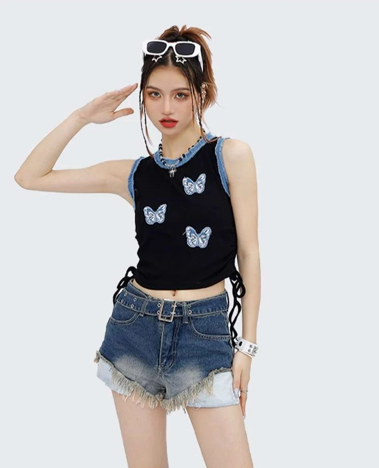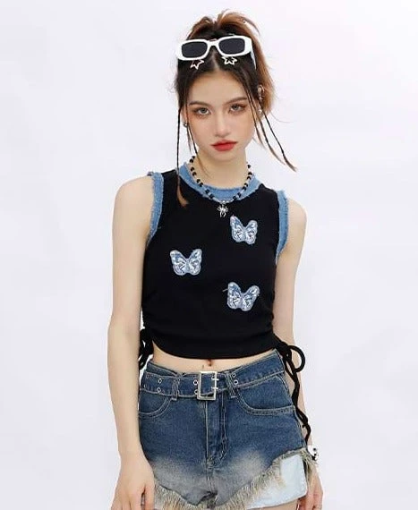 Look gorgeous in this Butterfly Patchwork Ruched Crop Top. Featuring a simple and casual style with contrast trim, this top pairs perfectly with skirts, shorts or jeans for a look that is easy to style and comfortable to wear. Bring out your best with this must-have fashion piece!