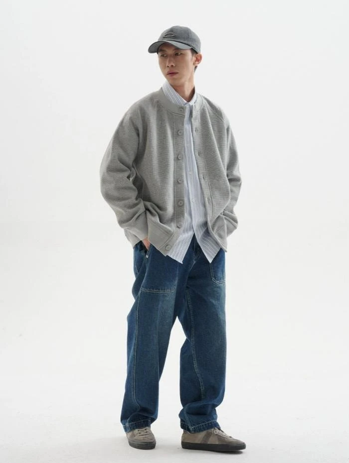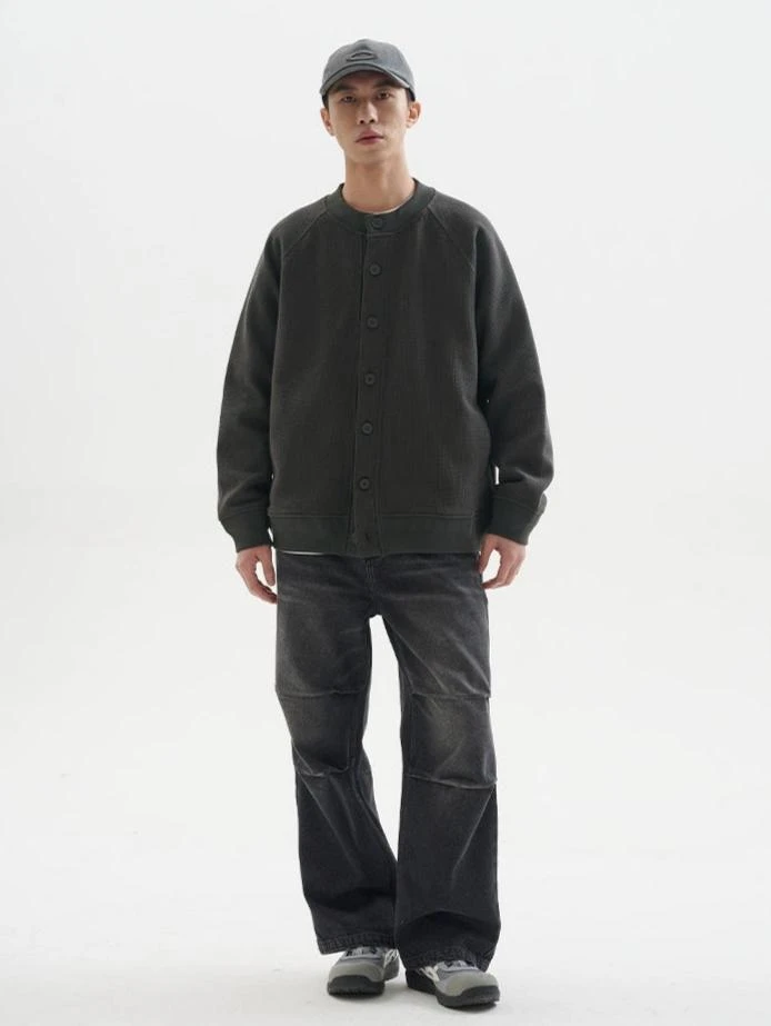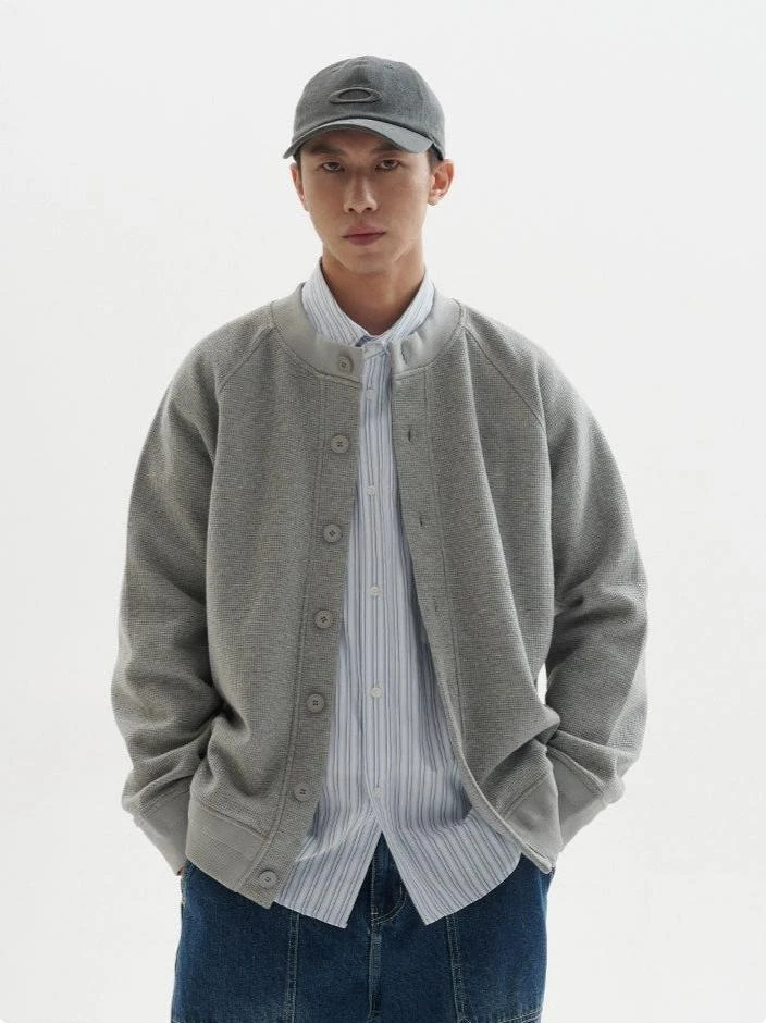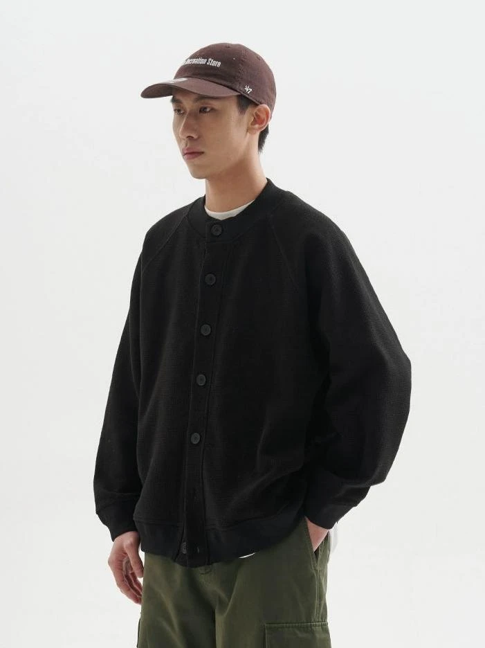 Our bomber jacket features a distinctive waffle texture and a classic button-up front, offering both comfort and durability. Crafted with care, the heavyweight knit provides functionality while the loose fit guarantees ease of movement for your dynamic lifestyle.