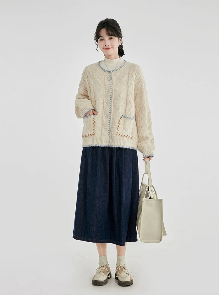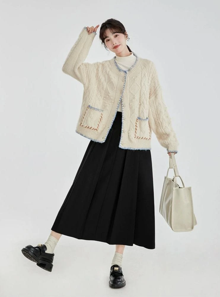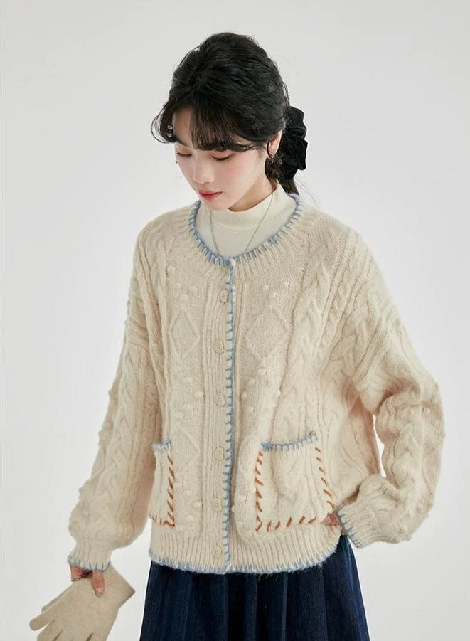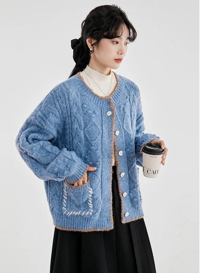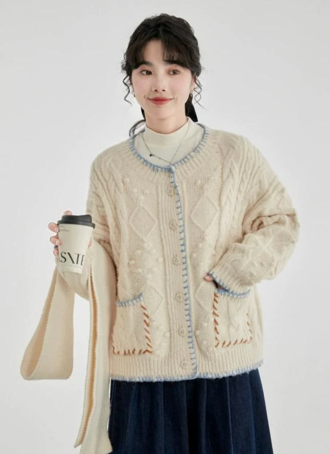 Whether paired with slim jeans for a casual outing or draped over a dress for cooler evenings, this cardigan’s single-breasted closure and timeless cable knit pattern make it suitable for a range of settings. It’s the ideal companion for those seeking a blend of ease and elegance in their everyday attire.