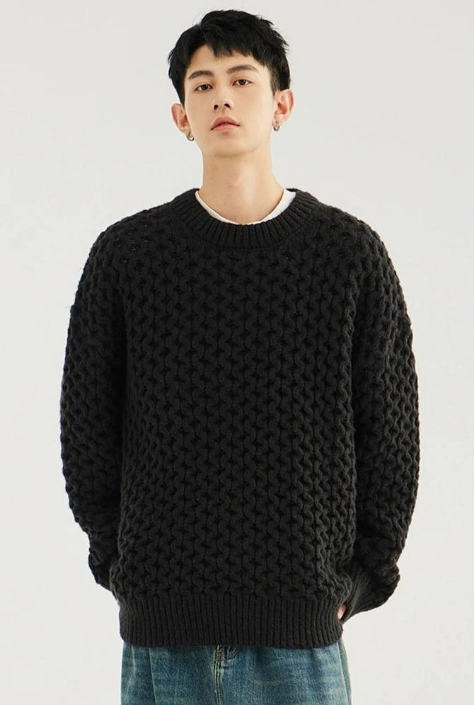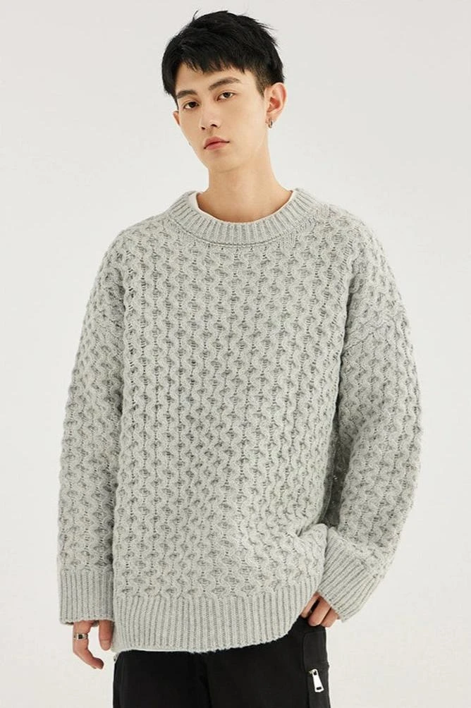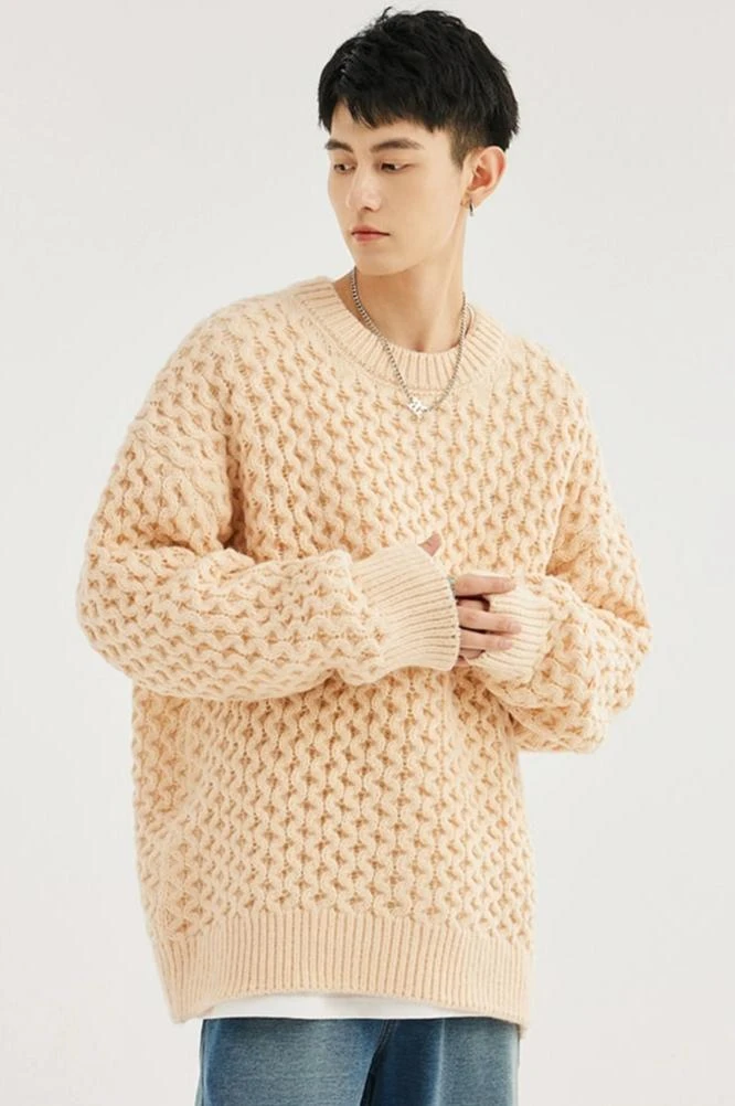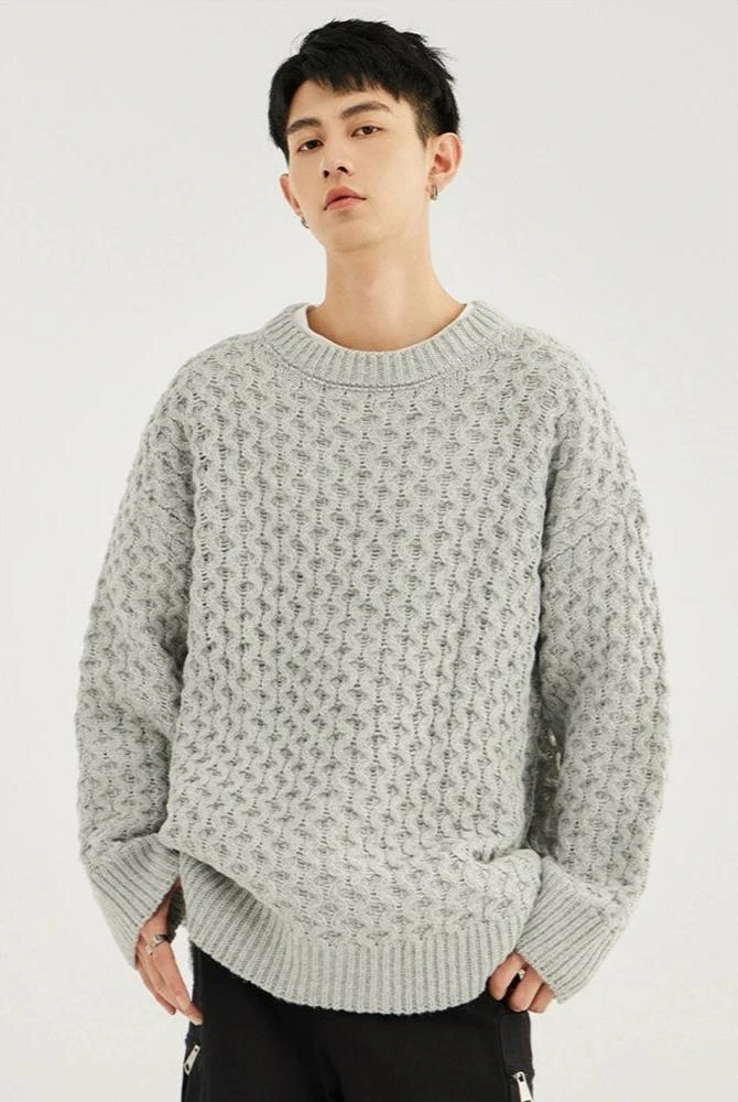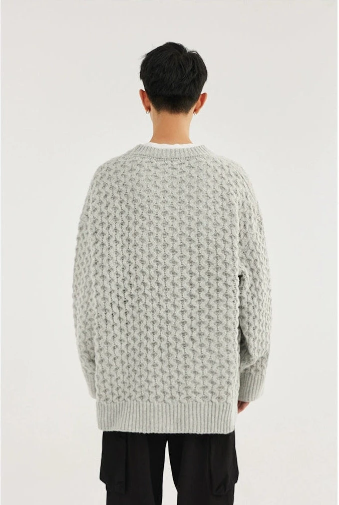 Made with 100% polyester fiber, this demure sweater boasts a classic cable knit pattern and a comfortable loose fit, giving it an easy-going yet refined look. The round neck and long sleeves underscore its timeless design, perfect for the modern minimalist. Versatile in its simplicity, it pairs seamlessly with anything from casual denims to tailored trousers.