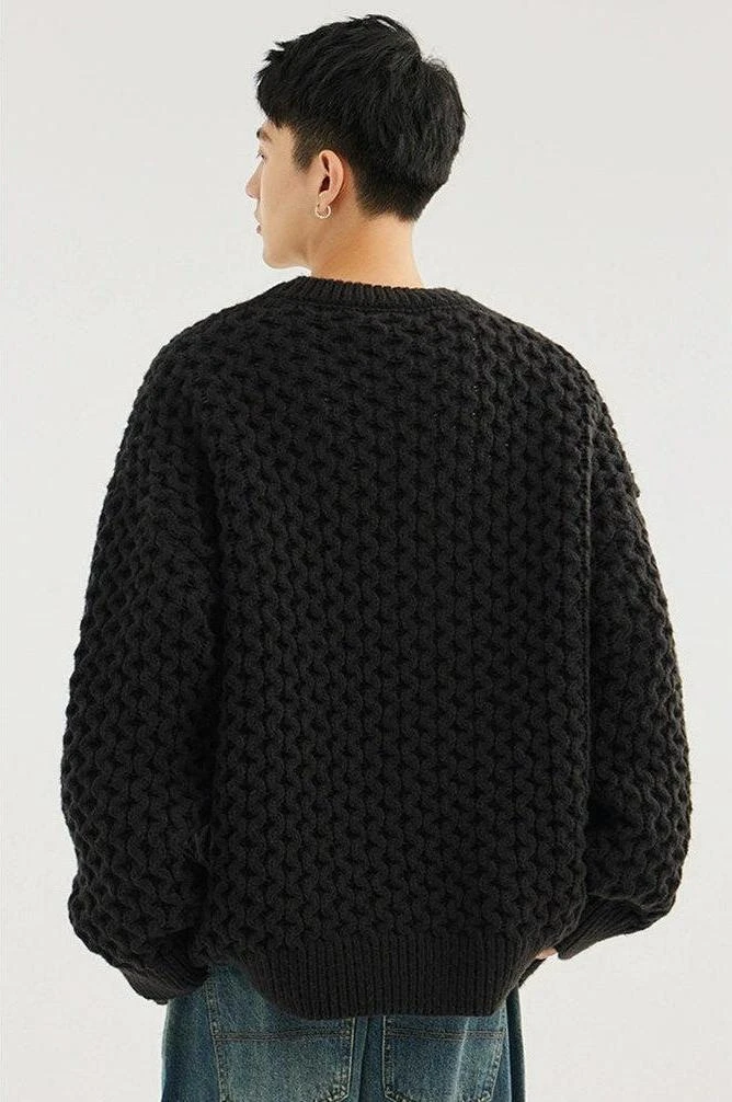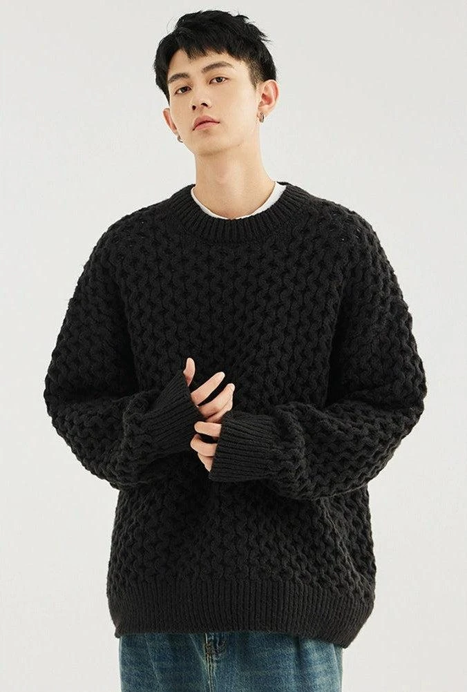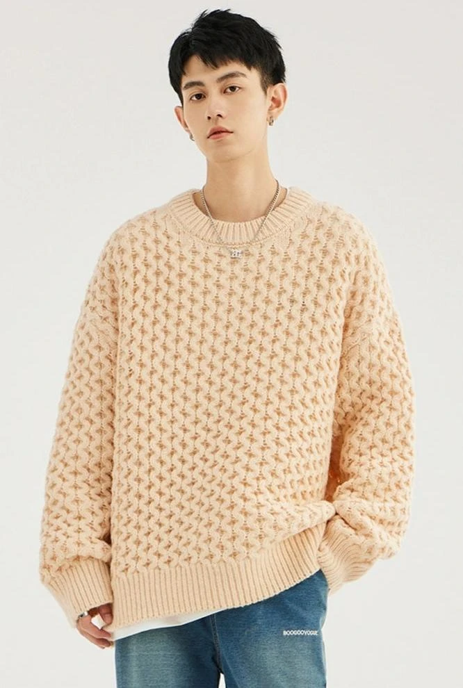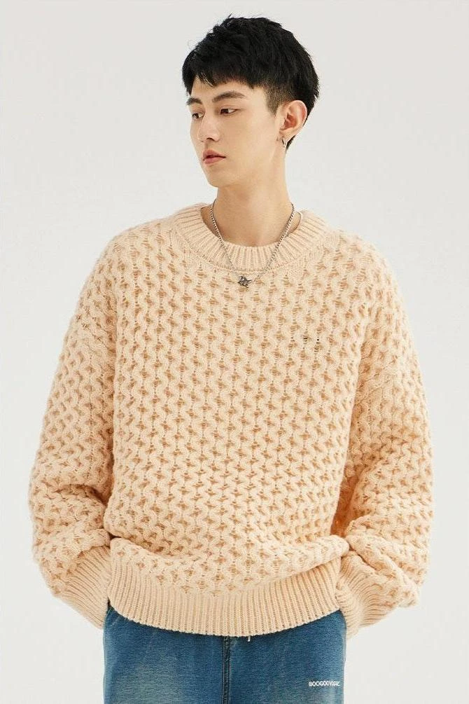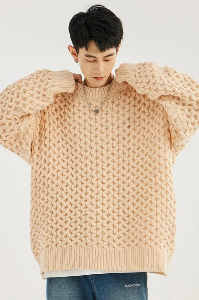 Made with 100% polyester fiber, this demure sweater boasts a classic cable knit pattern and a comfortable loose fit, giving it an easy-going yet refined look. The round neck and long sleeves underscore its timeless design, perfect for the modern minimalist. Versatile in its simplicity, it pairs seamlessly with anything from casual denims to tailored trousers.