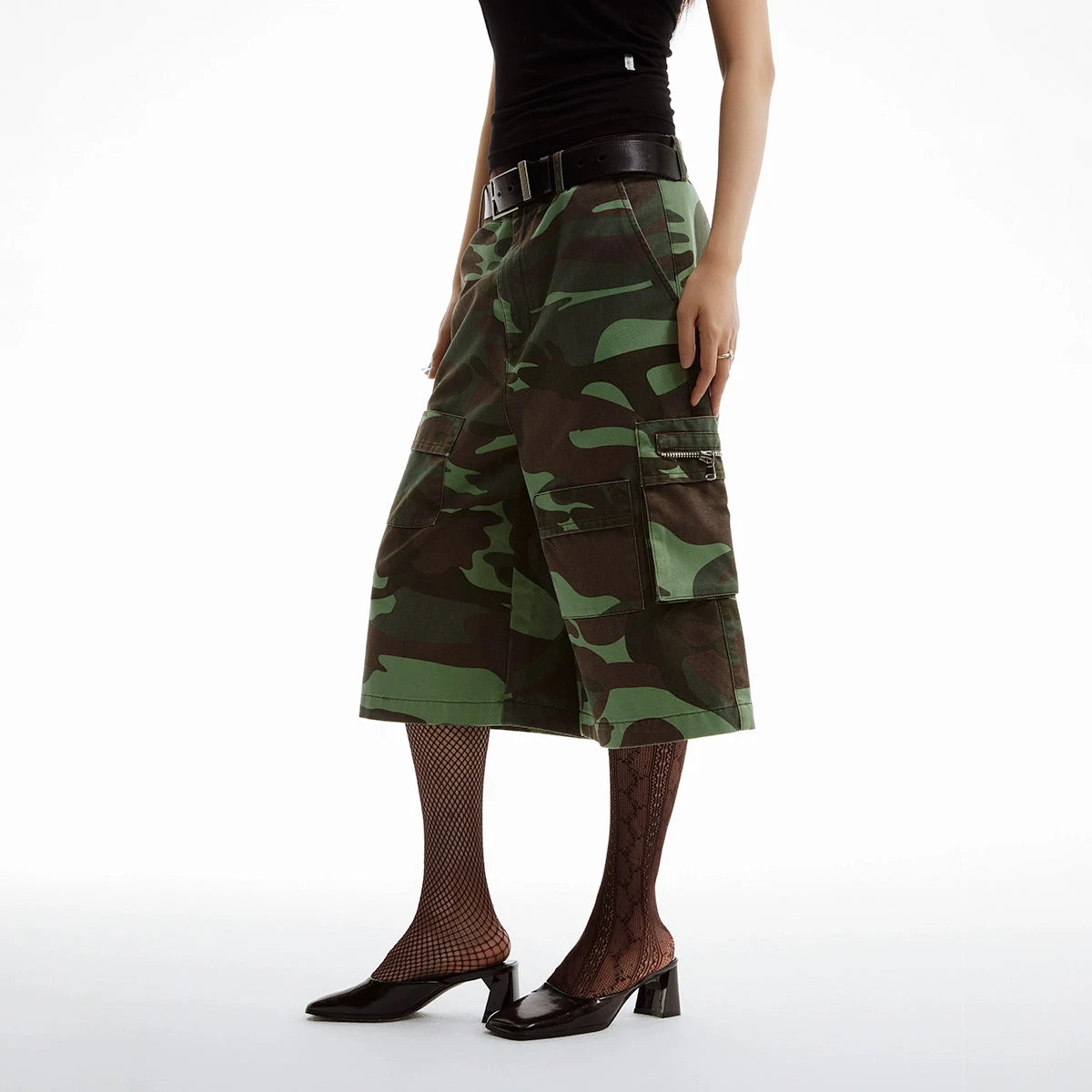 Embrace the utility trend with effortless cool in these Camouflage Cargo Culotte Shorts, perfect for the urban explorer.