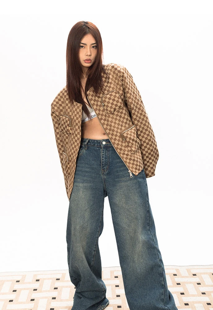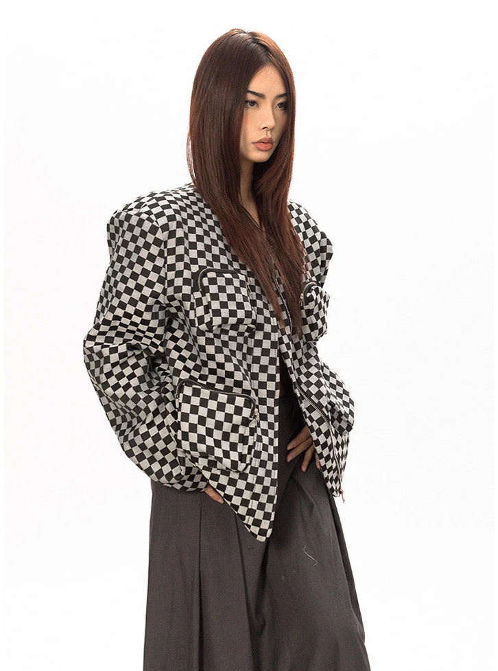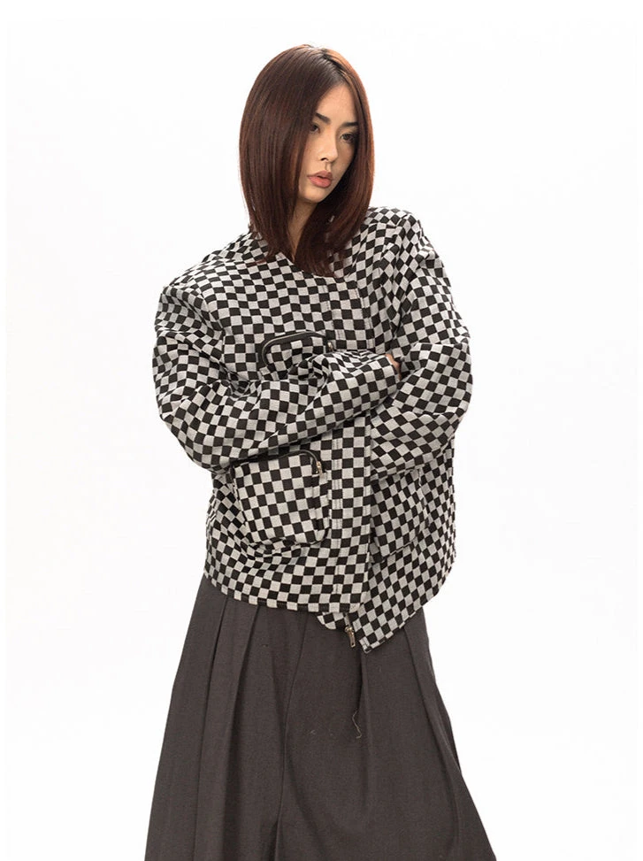 Effortless edge meets everyday versatility with the Checker Oversized Zip Jacket.