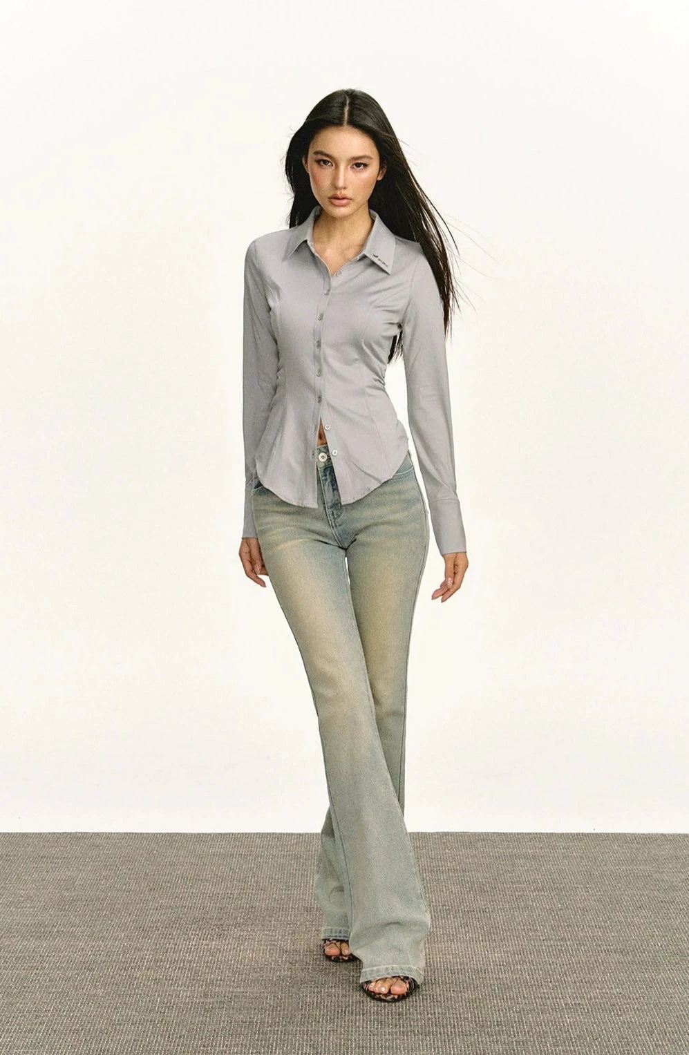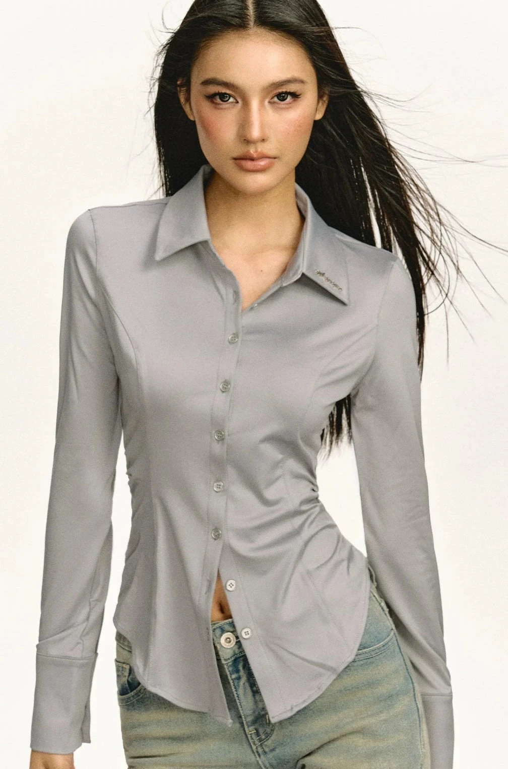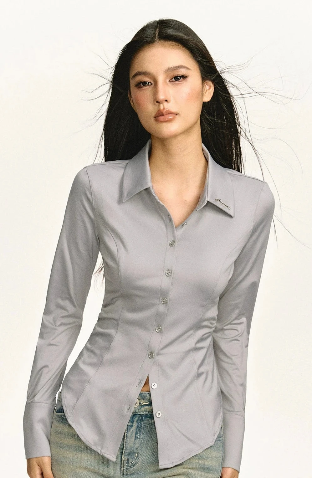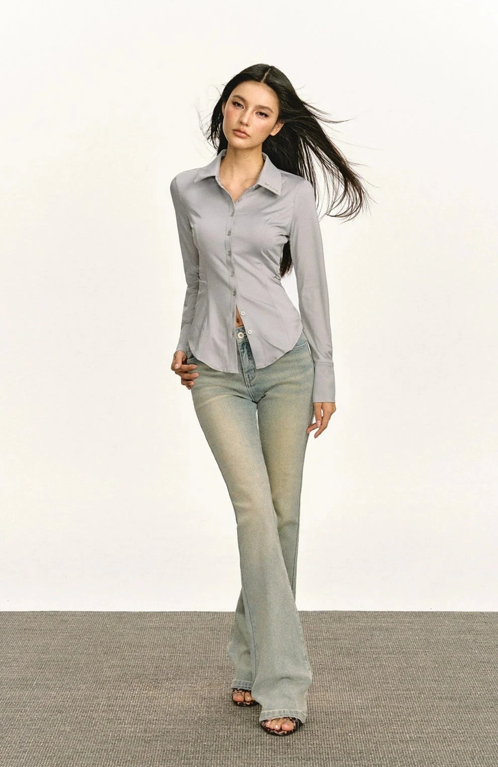 Experience the seamless blend of sophistication and comfort with the Classic Button-Up Long Sleeve Blouse.