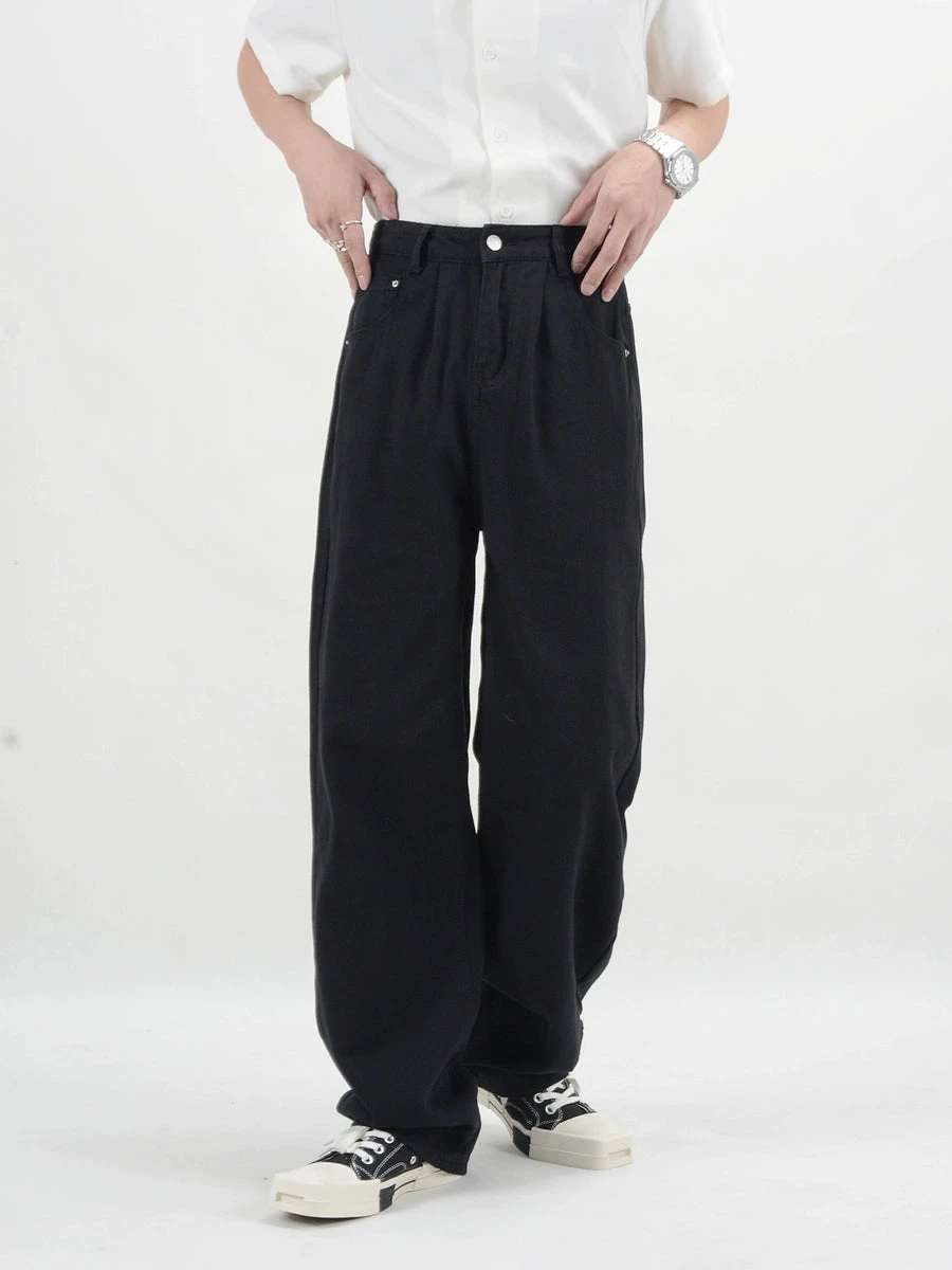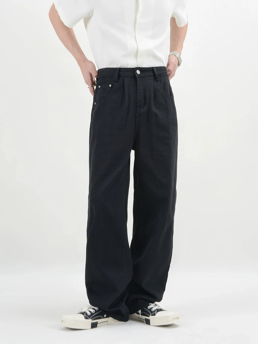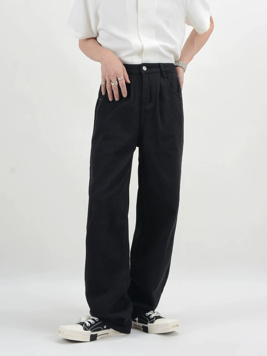 Crafted from premium denim, these pants boast a timeless straight fit that pairs with everything. The rich, black hue encapsulates a moody yet professional aesthetic, perfect for those who value a touch of nonchalant edge in their wardrobe.