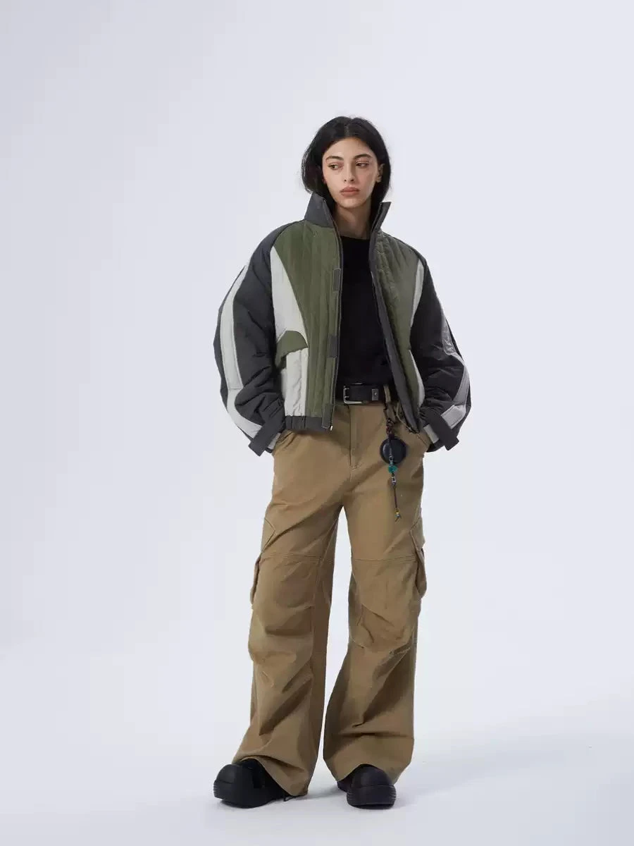 Oversized, quilted, and effortlessly cool—this color-block puffer jacket brings an edge to cold-weather layering.