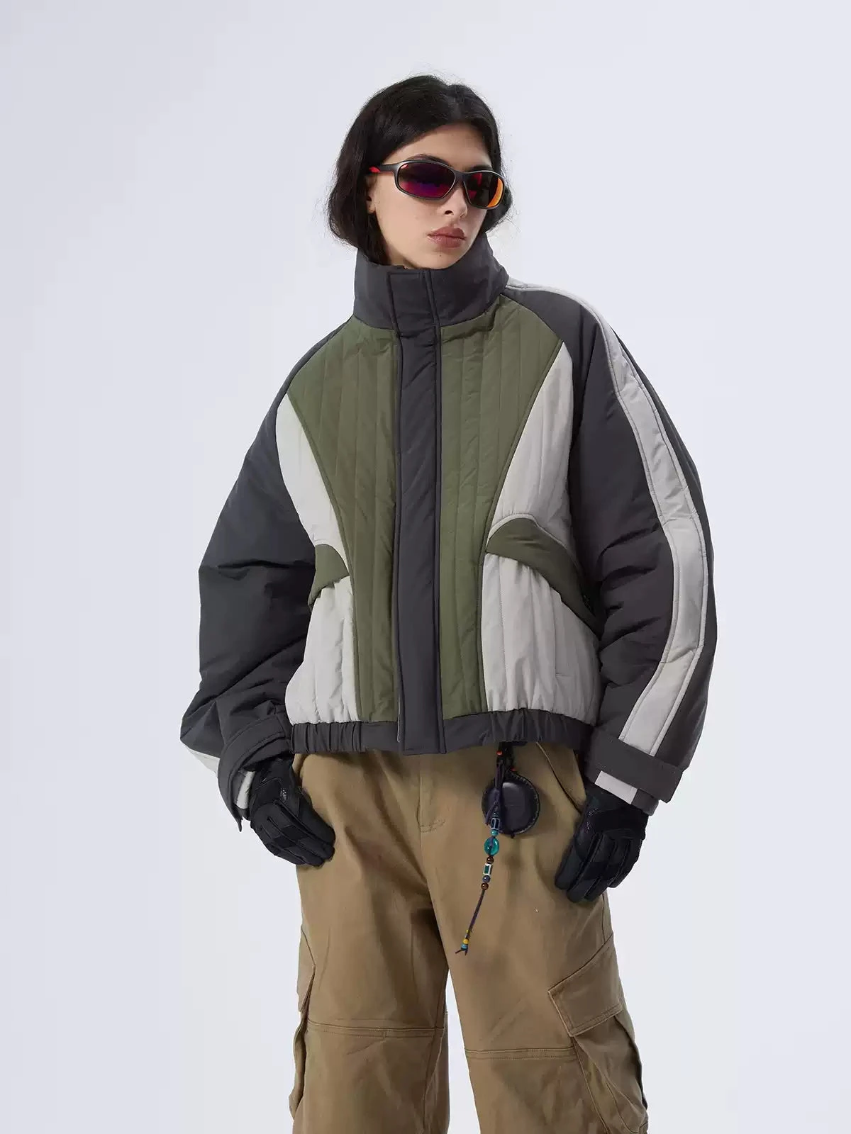 Designed with bold contrast panels and structured stitching, it delivers a statement look without compromising on comfort. The lightweight puffed design offers warmth without bulk, while the relaxed fit and short length give it a modern, nonchalant feel.