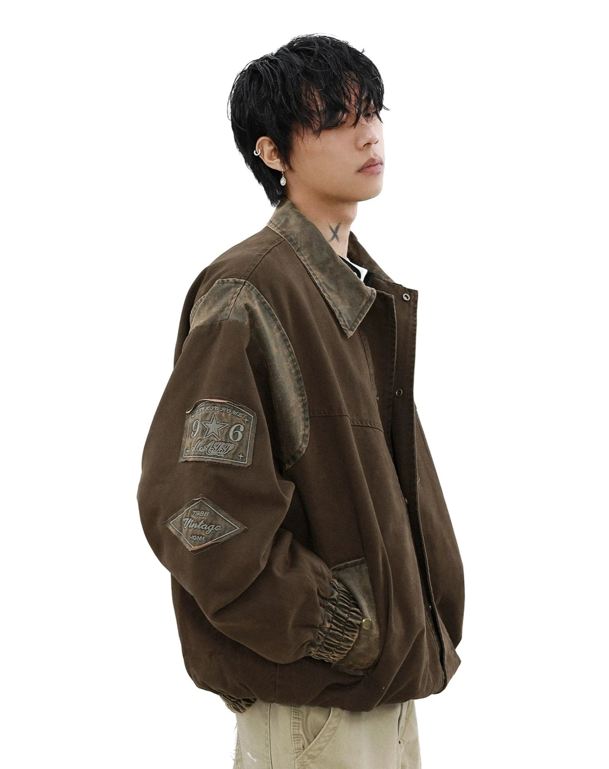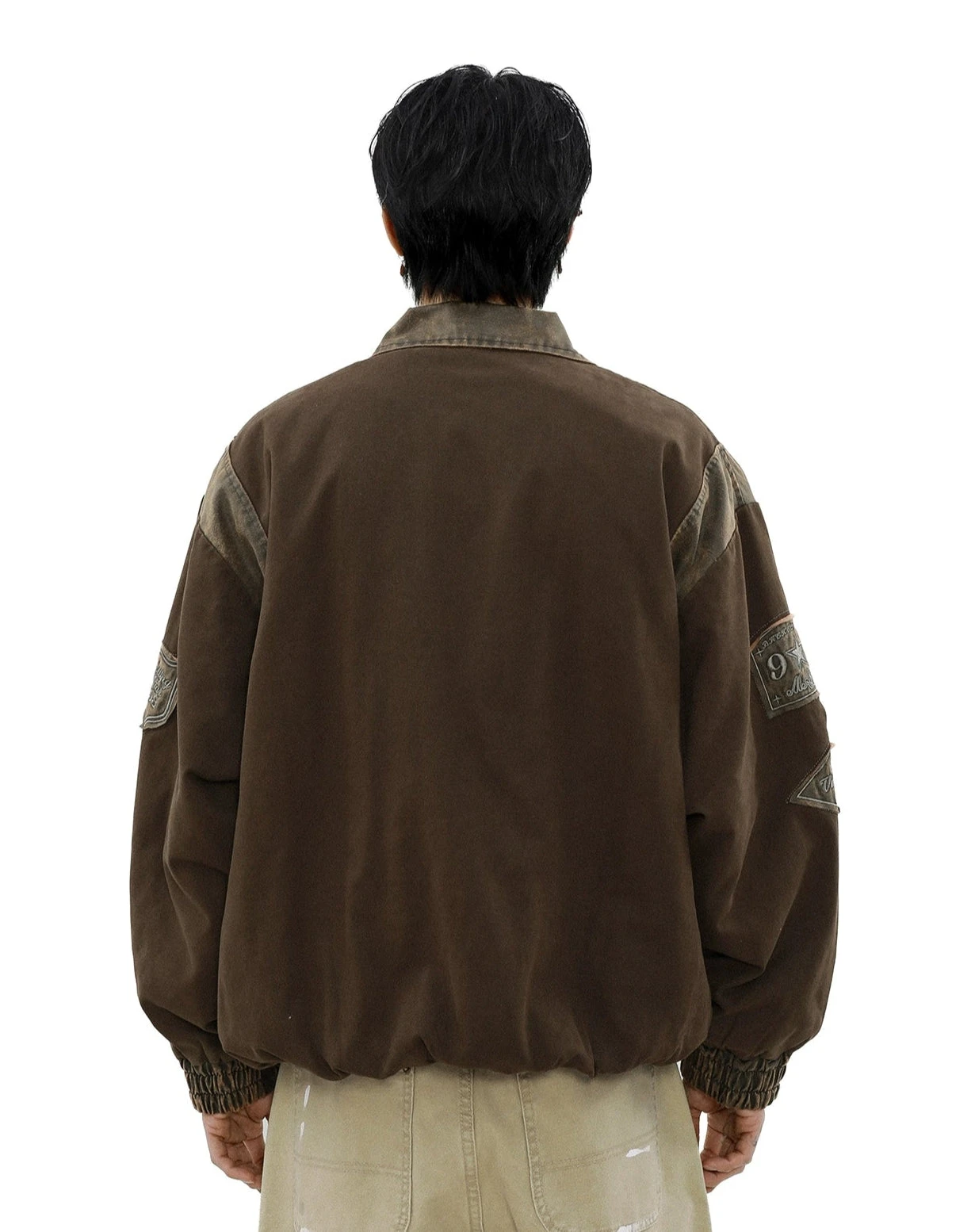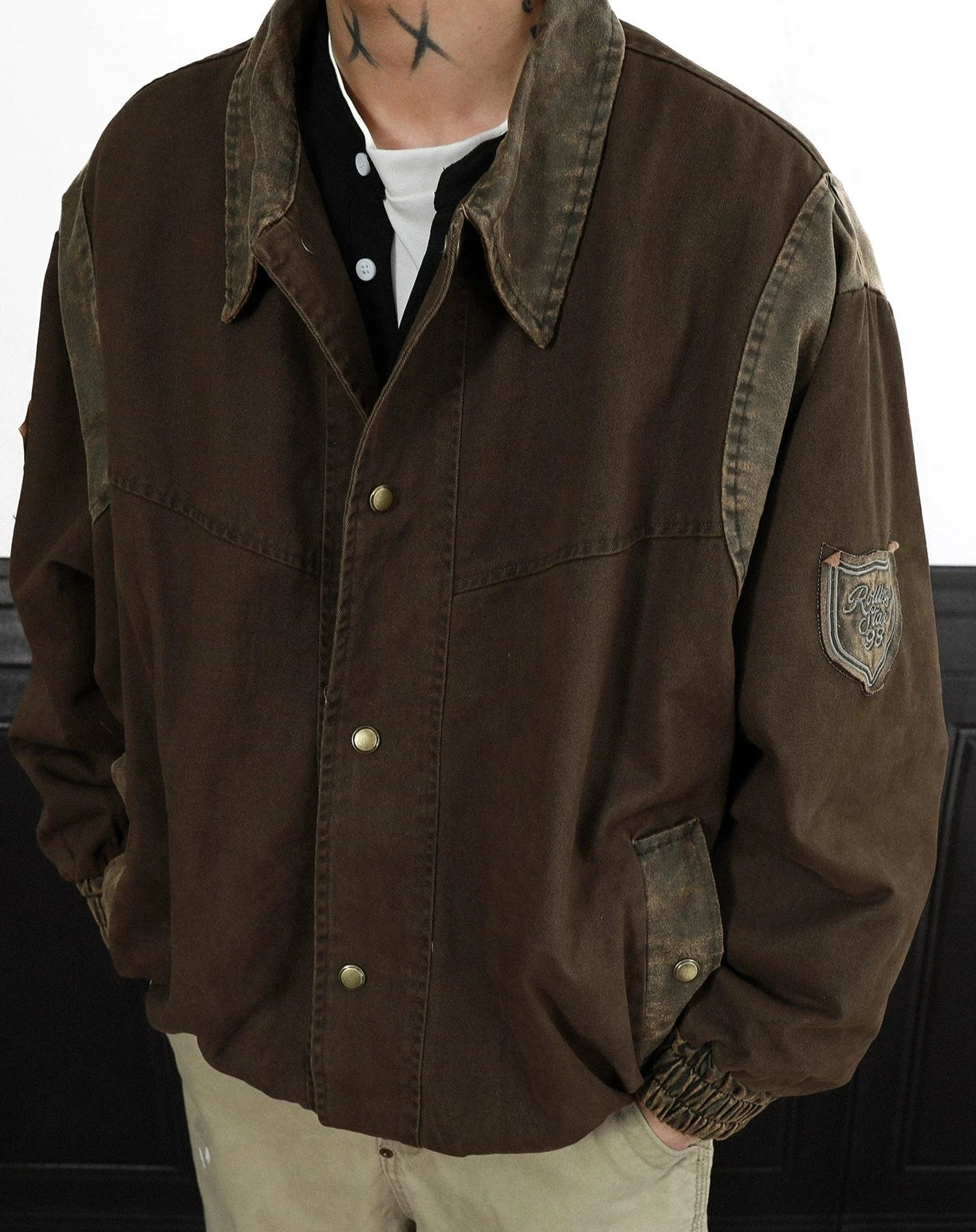 The washed textures and stitched accents create a striking look that’s both laid-back and intentionally crafted. Made from 100% cotton fabric, this jacket is designed for comfort and durability, featuring elastic cuffs and hem for a secure yet relaxed fit. The single-breasted closure and lapel collar enhance its classic silhouette, while side-seam pockets provide practical storage. Subtle patchwork detailing completes the design, exuding an understated yet distinguished vibe.