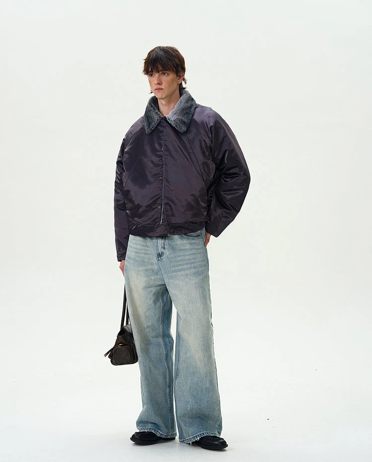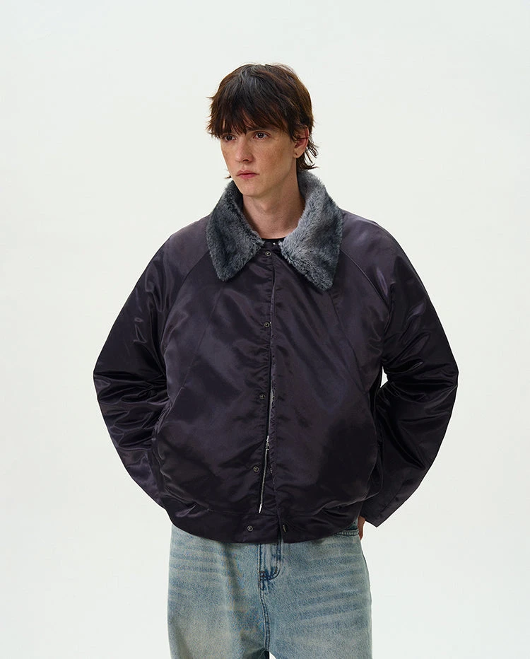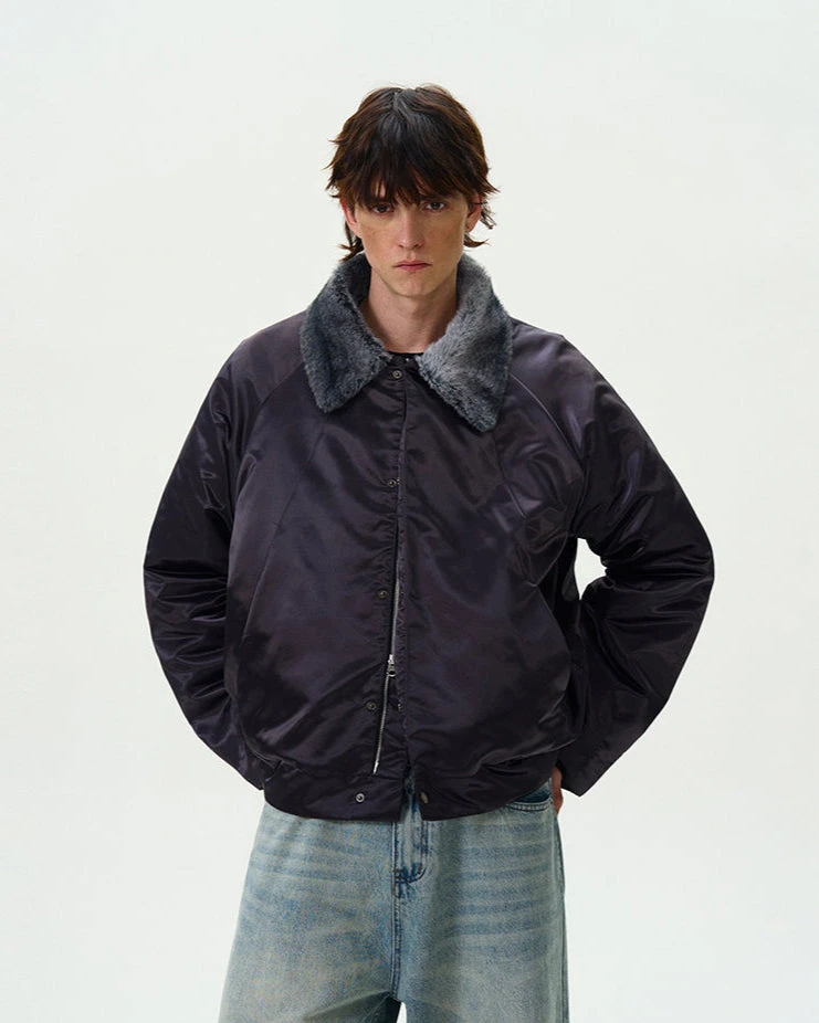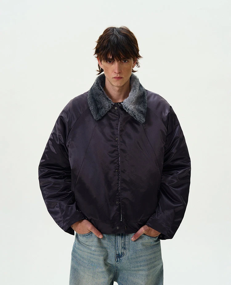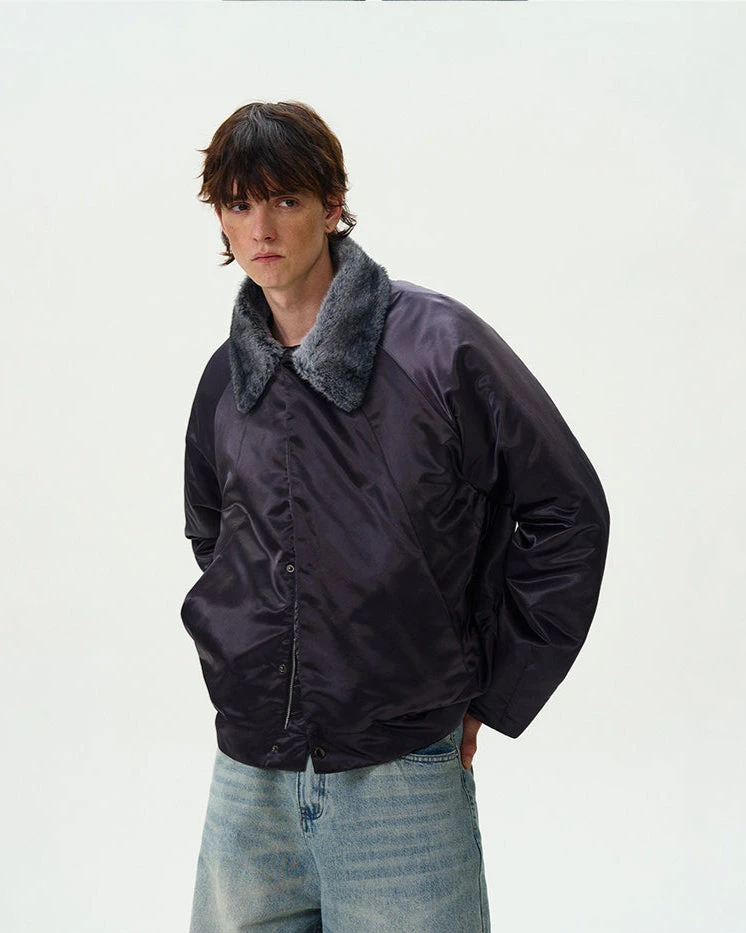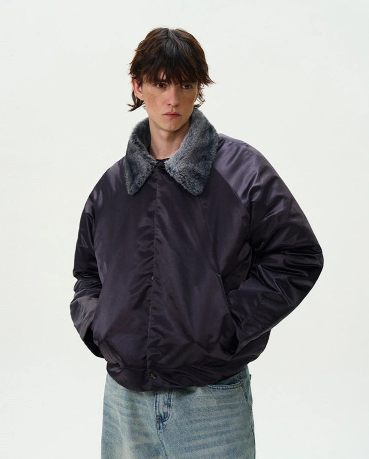 Designed for those who appreciate effortless style, it balances edge and comfort in a way that feels natural and easy to wear. The smooth, slightly reflective shell adds a modern touch, while the plush faux fur collar brings warmth and texture. The snap button closure and relaxed fit make layering simple, lending itself to both casual and refined looks.