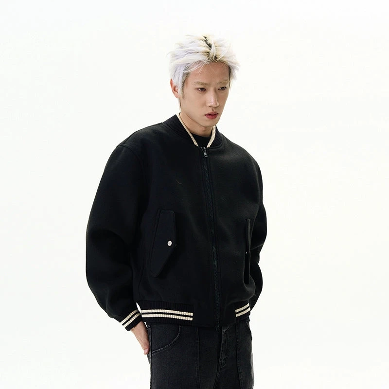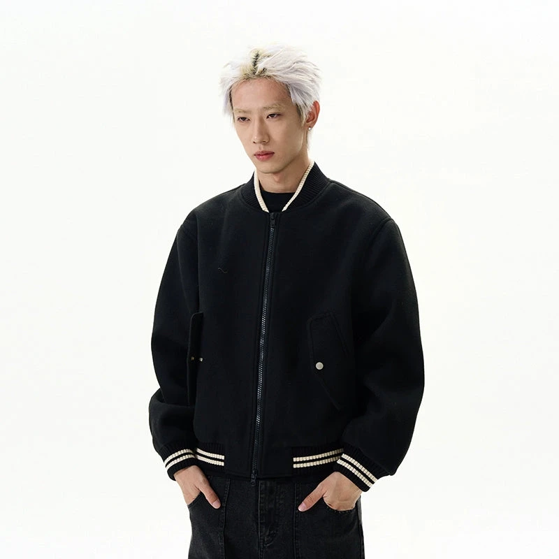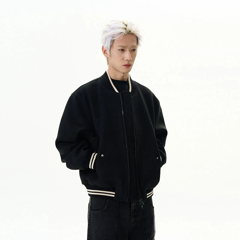 Meticulously crafted from premium materials, this jacket features a soft wool blend that exudes quality. The contrast ribbed trim and striped detailing add a touch of classic American sportswear elegance, while the sleek zipper closure ensures a secure and easy fit. Its loose cut not only enhances style but also comfort, making it a day-to-night staple for any casual ensemble.