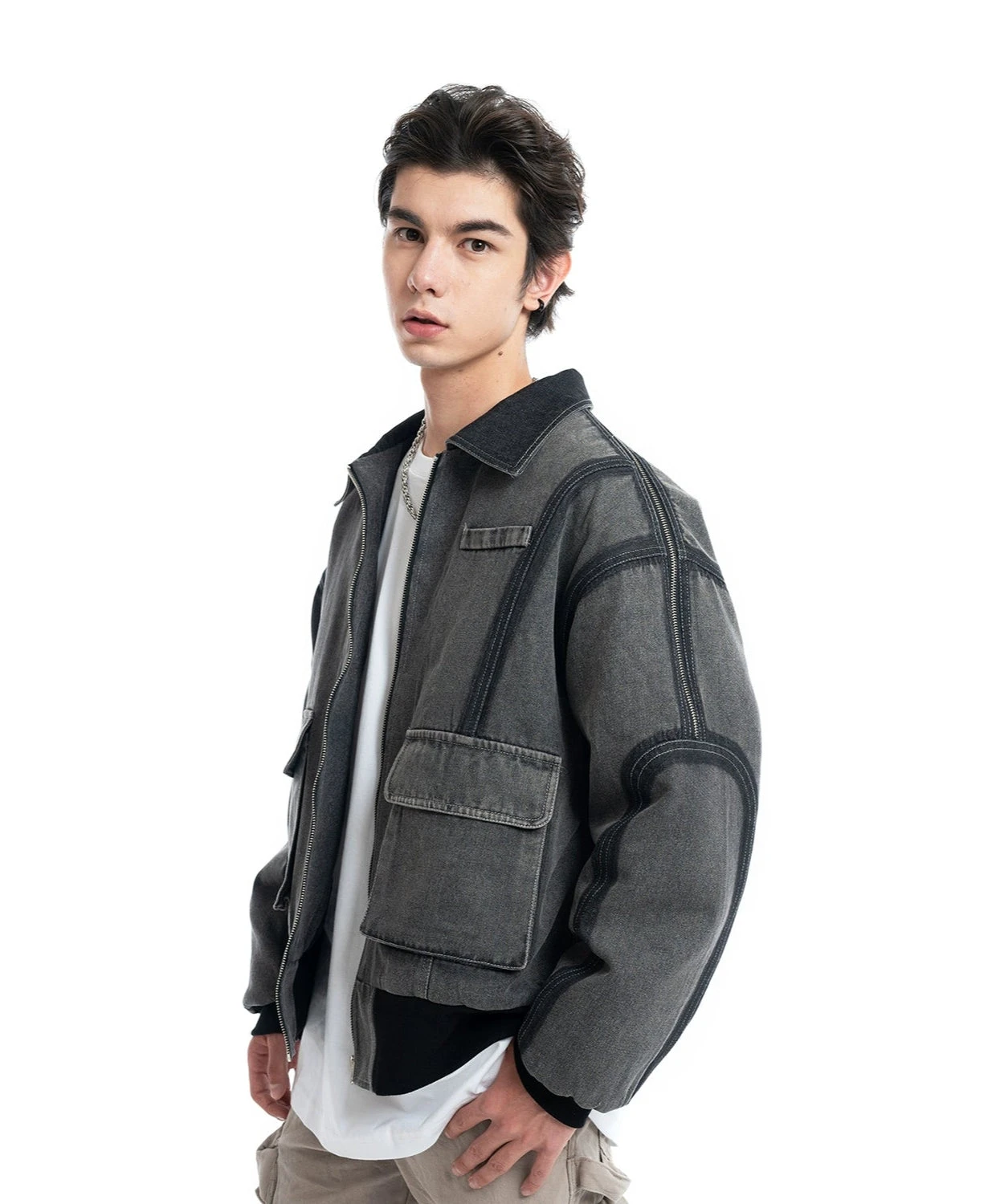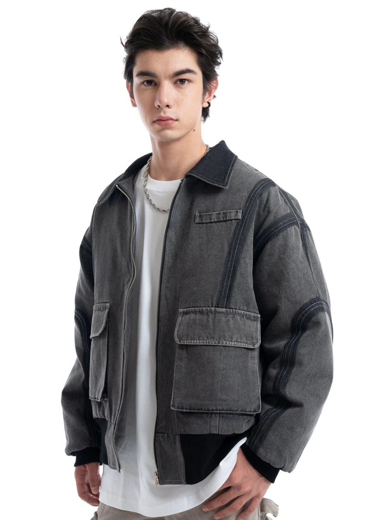 Amplify your casual wardrobe with the Contrast Stitch Denim Cargo Jacket, balancing rugged utility with a modern edge.