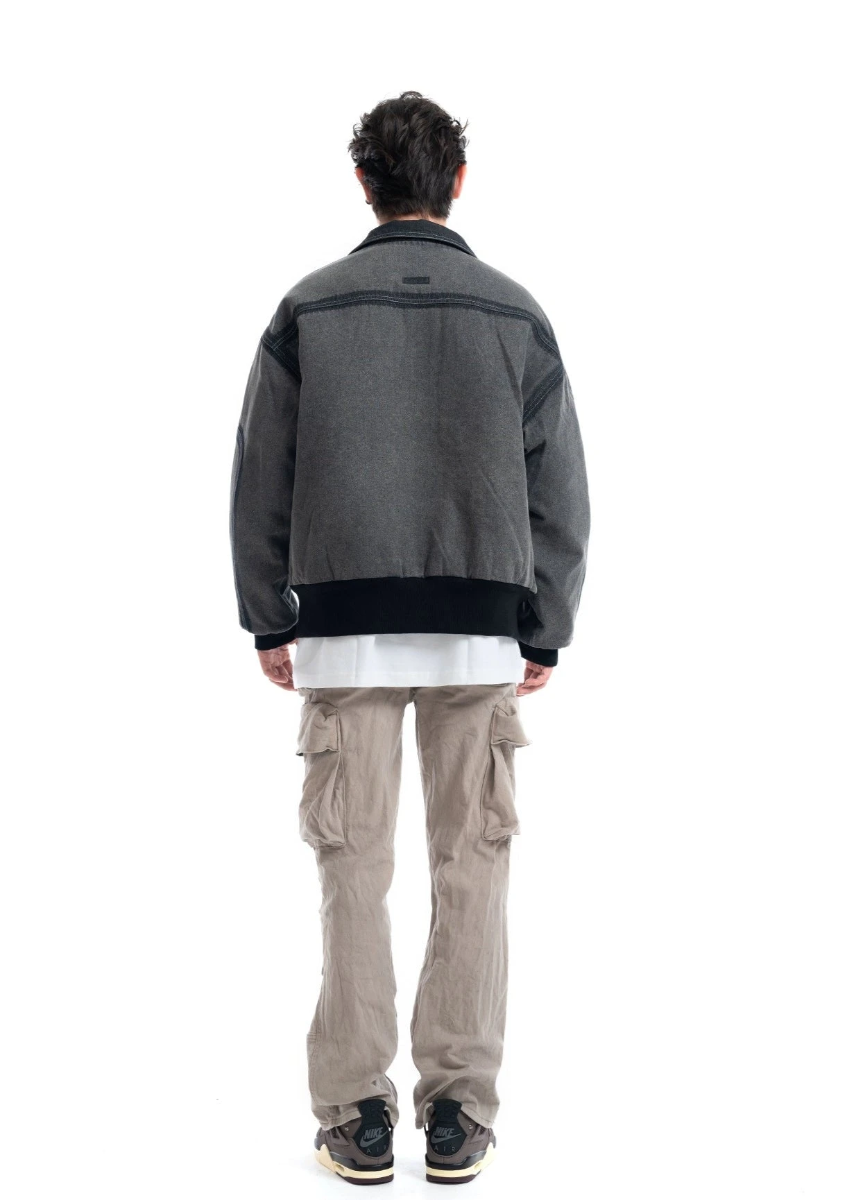 Crafted in ultra-durable 13oz high-weight denim with a washed finish, this piece exudes a laid-back vibe while offering exceptional comfort and warmth. Featuring bold contrast stitching, a zippered front, and oversized flap pockets, this jacket combines striking visual appeal with practical functionality.