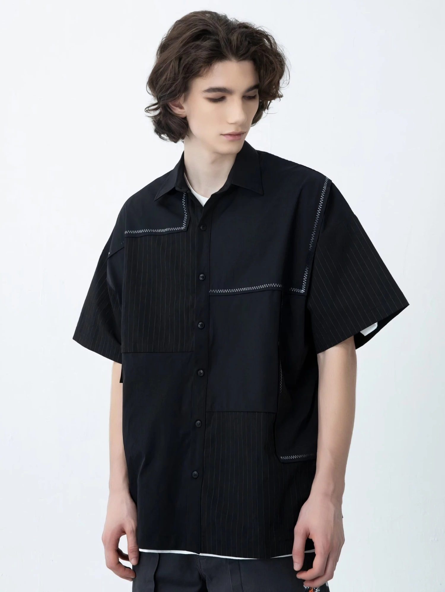 Step into effortless style with this Contrast Stitching Striped Oversized Shirt, the perfect addition to the modern man’s wardrobe.