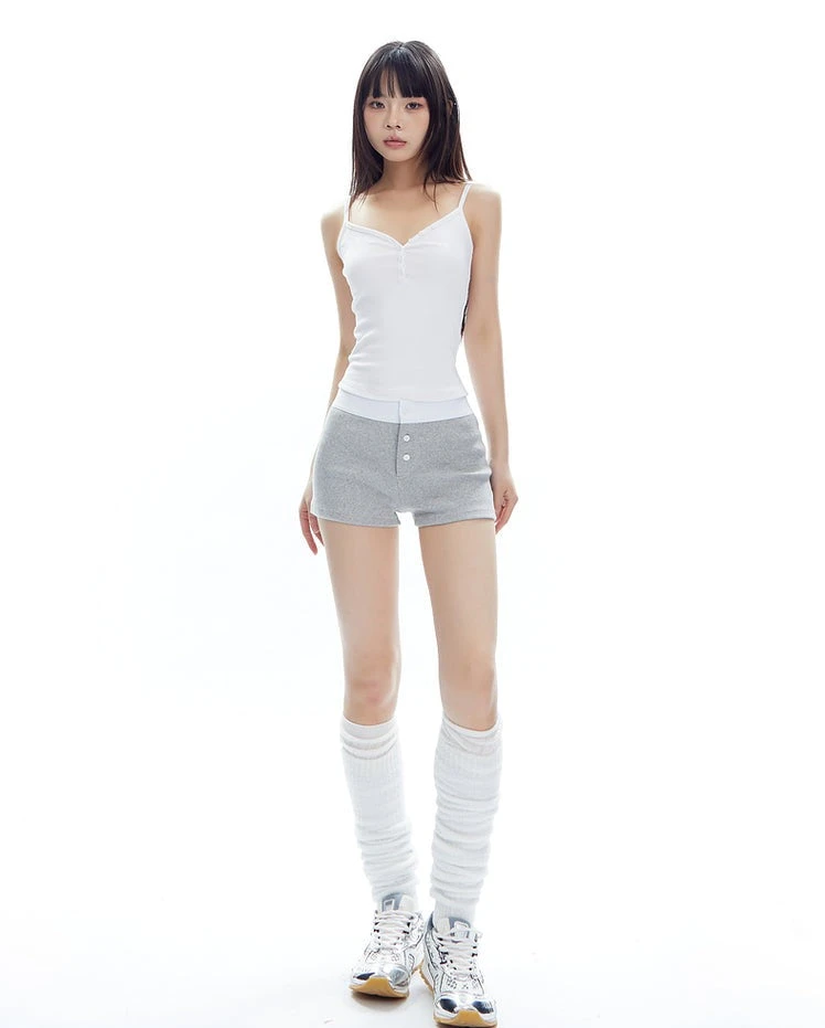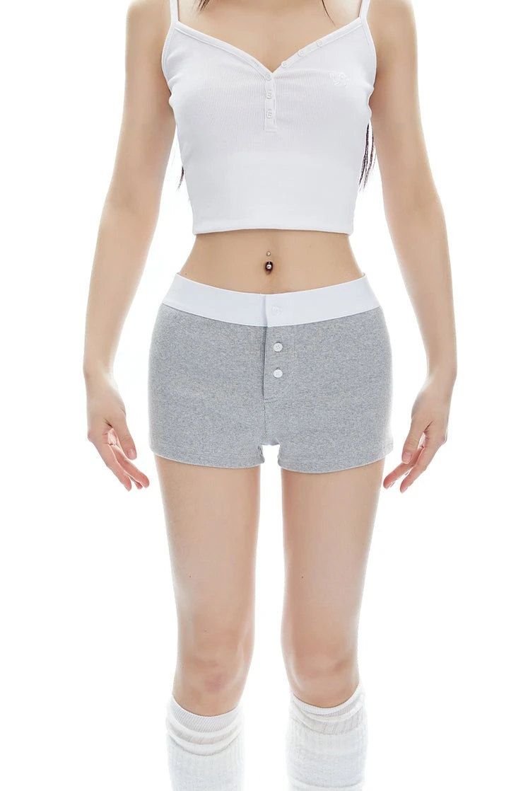 Made from a soft cotton blend, these shorts feature a unique contrast waistband and a trio of buttons that bring an edgy twist to a classic silhouette. The high-quality terry fabric offers a plush texture that’s both breathable and durable, ensuring these shorts are both a staple and a statement piece in your wardrobe.
