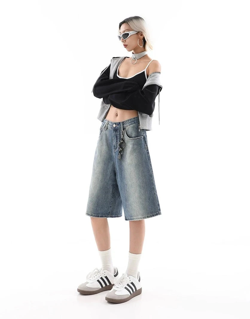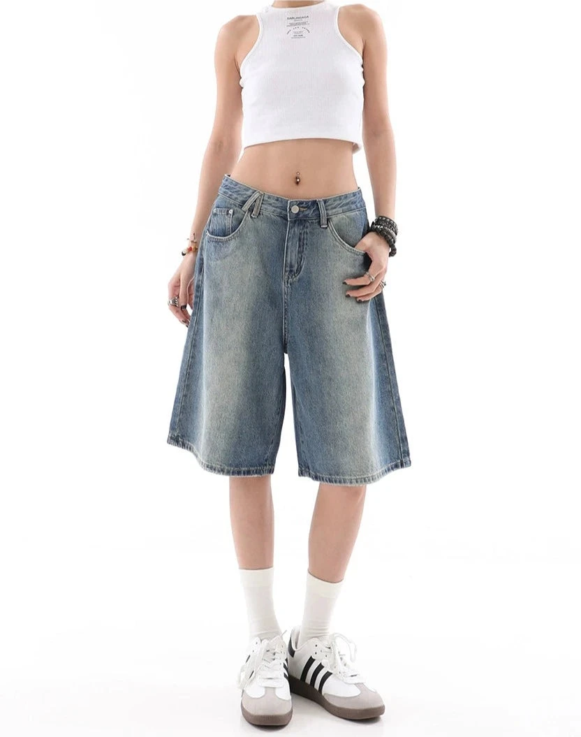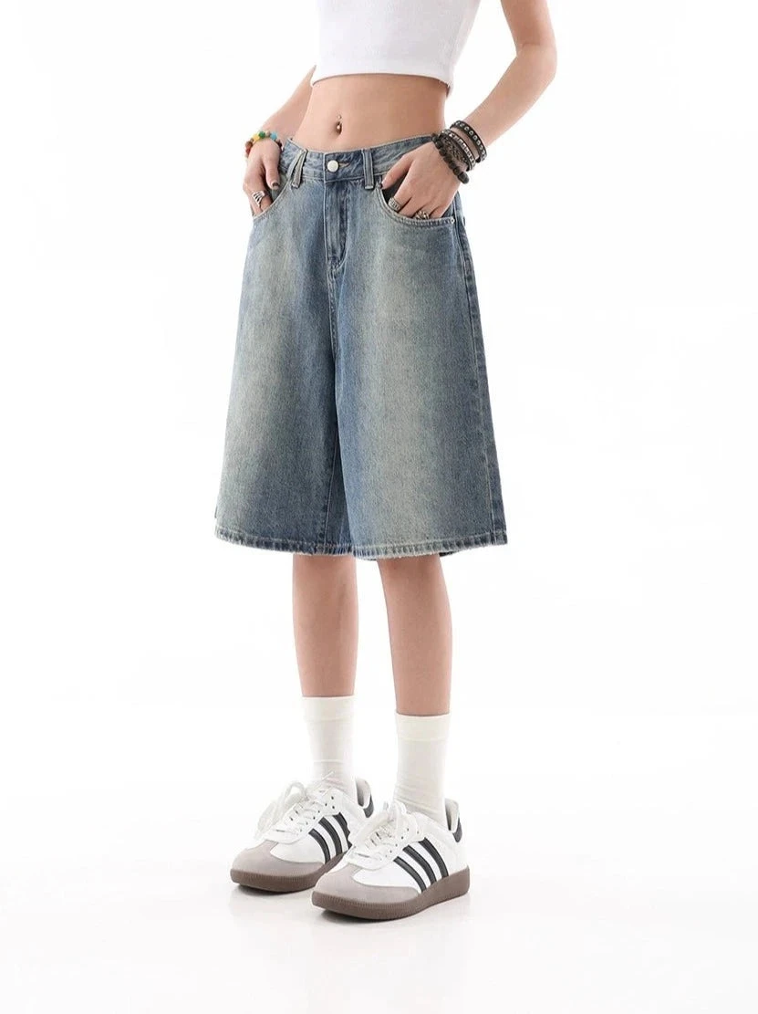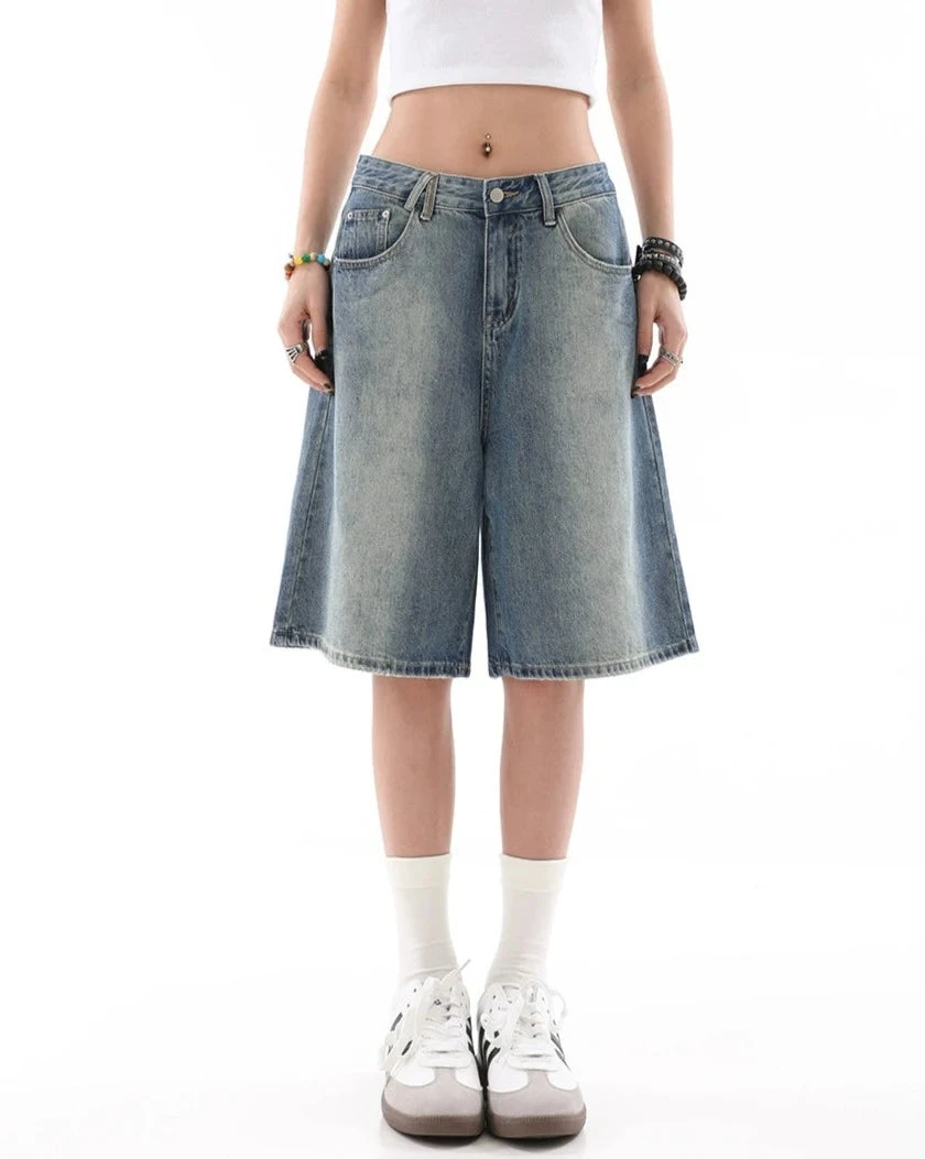 Stay cool and on-trend with our Denim Bermuda Wide-Leg Jean Shorts, a summer wardrobe essential with a retro-chic flair.
