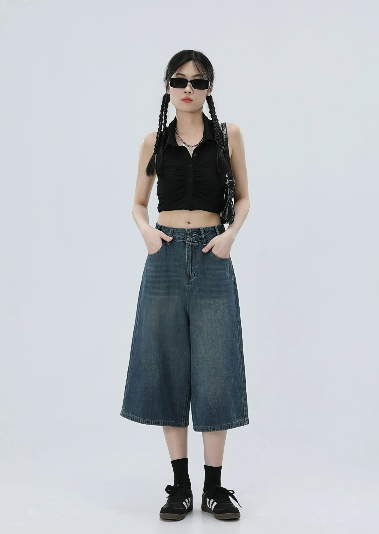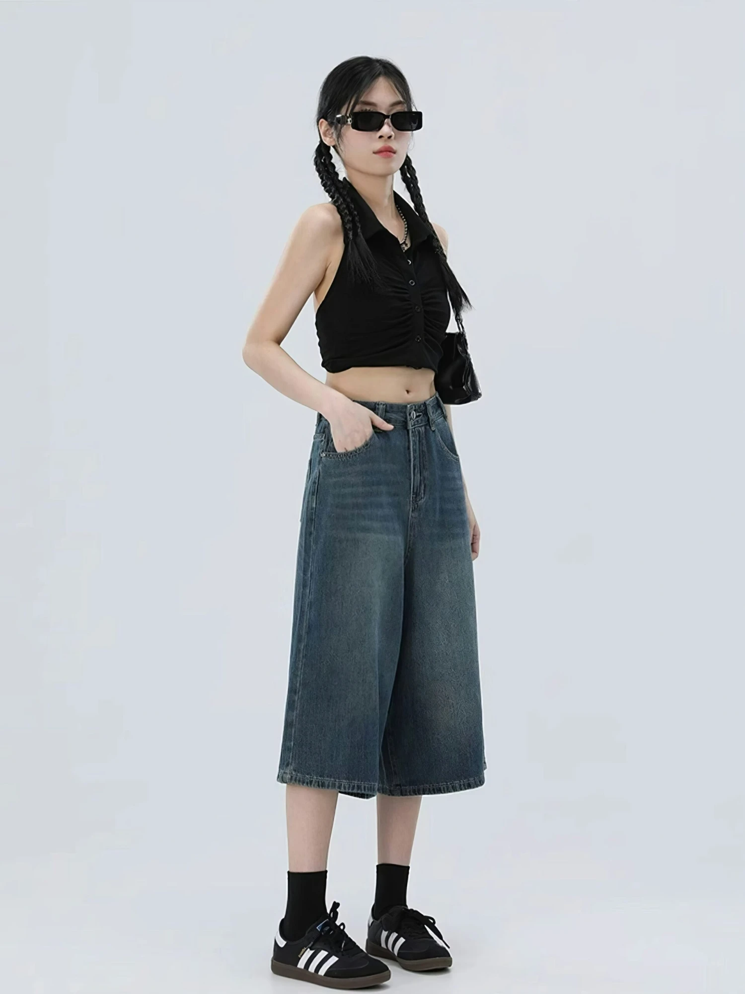 Experience easy-going elegance with our Denim Culotte Capri Shorts, perfect for any casual-cool ensemble.