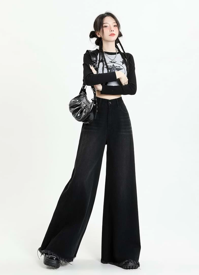 Get ready to turn heads in nightcity’s Extra Wide Leg Distressed Hem Jeans. These stylish jeans are all about making a statement. Designed for a comfortable fit, these jeans will let you breathe easy all day long. Whether it’s chilling out on the couch or running errands, this pair of jeans will be your go-to design for some fashionable fun. For a city look, pair these jeans with a skinny fit top or give them an edgy feel with a crop top. Get ready to make every look your own.