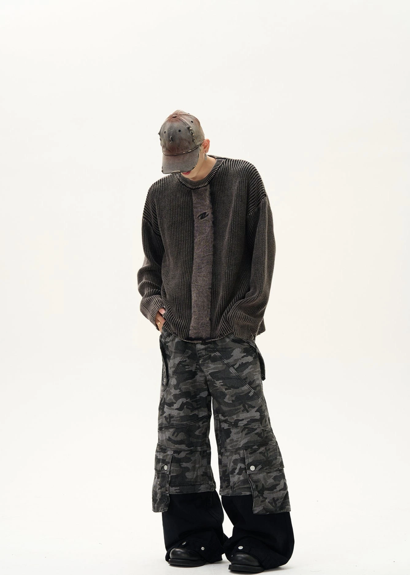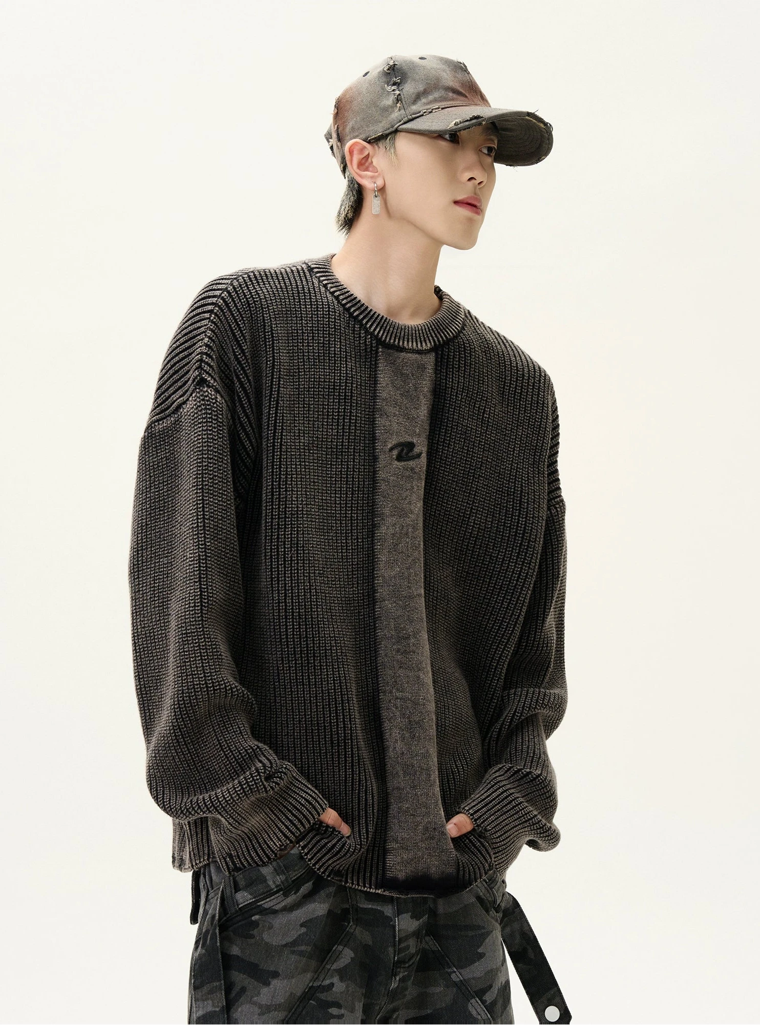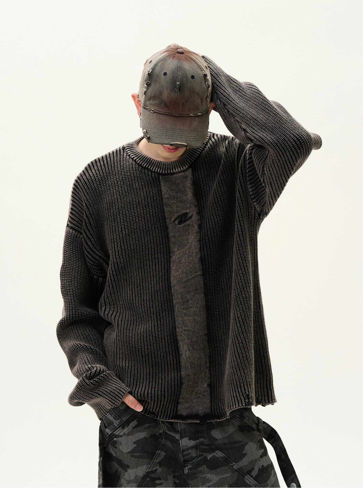This knit sweater stands out with its textured washed finish, distressed hems, and drop shoulder design, encapsulating an understated, moody charm. Crafted from a premium knit blend, the fabric boasts both durability and a soft touch against the skin. The ribbed structure enhances its timeless appeal, while the relaxed fit ensures all-day comfort without compromising style. The slight fading and distressed detailing add a well-worn, lived-in vibe that’s perfect for layering or as a standalone piece.