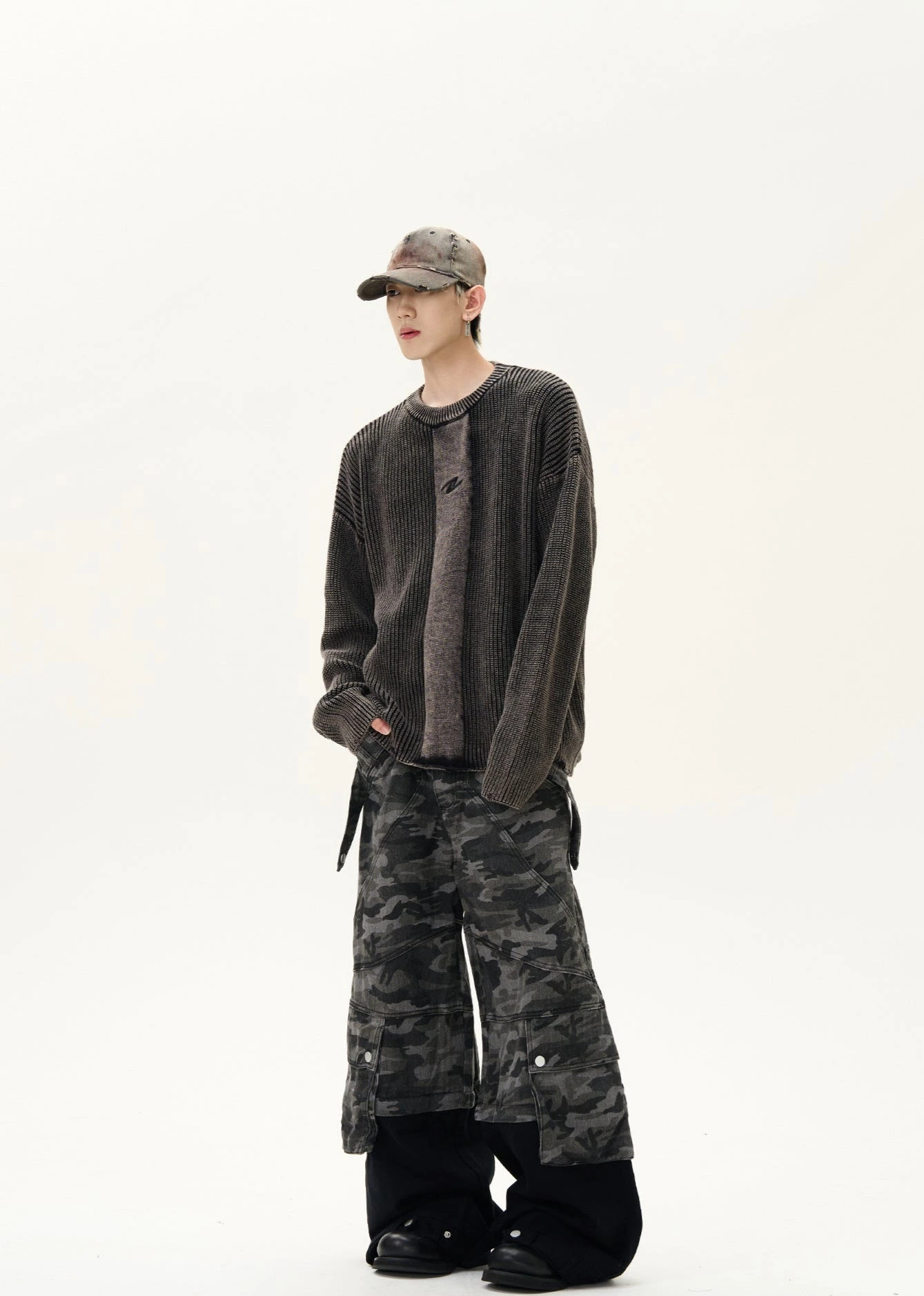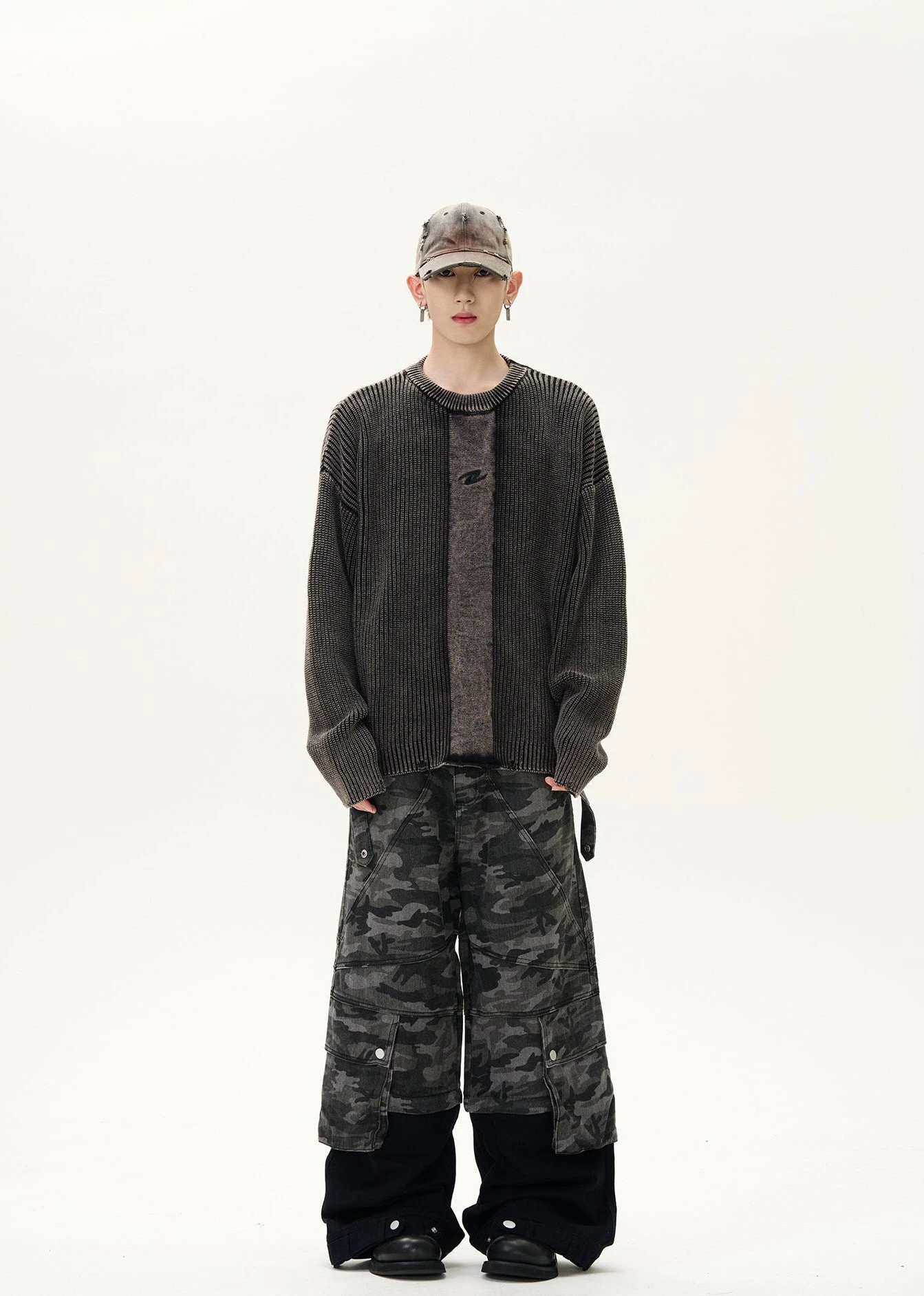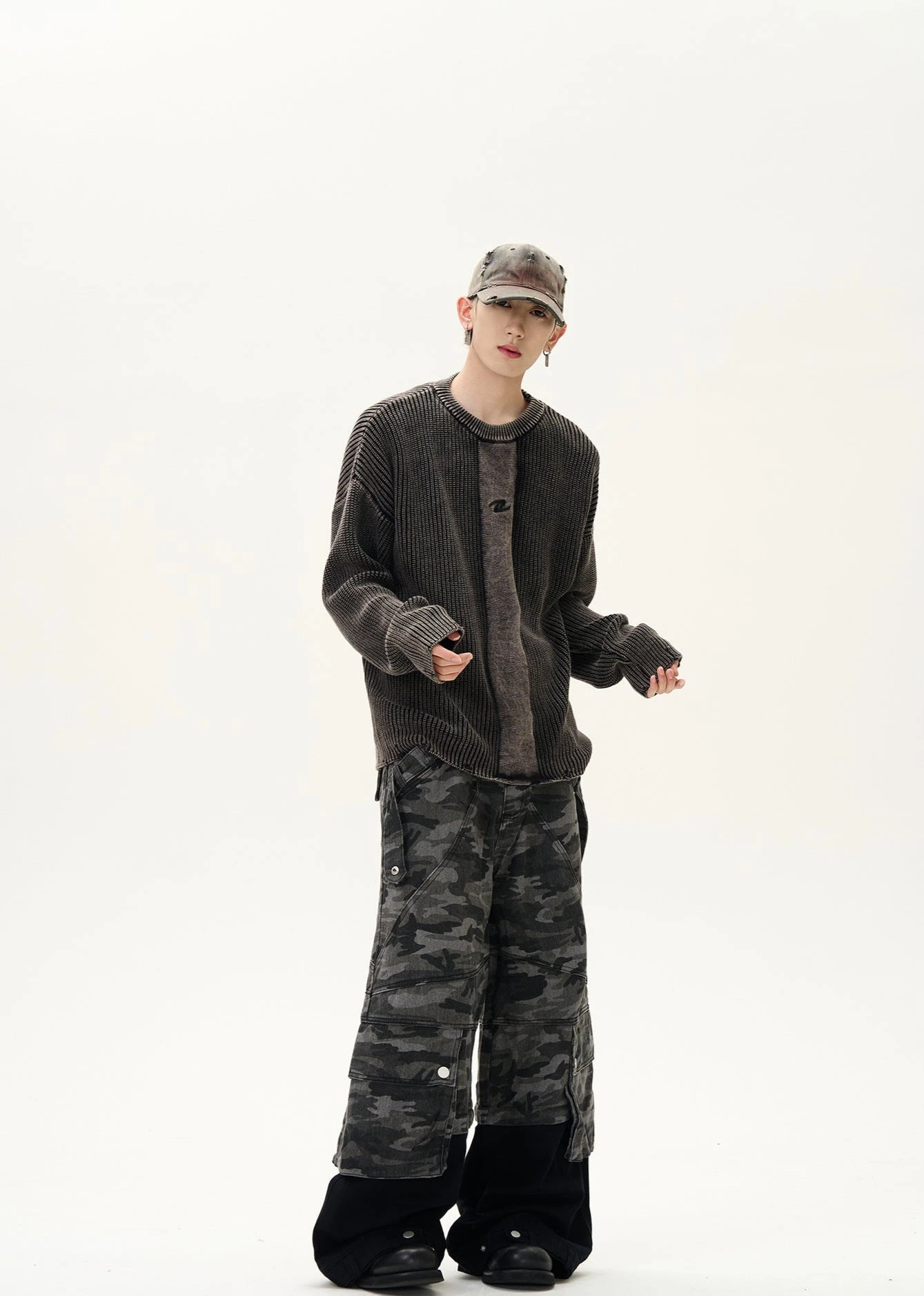 This knit sweater stands out with its textured washed finish, distressed hems, and drop shoulder design, encapsulating an understated, moody charm. Crafted from a premium knit blend, the fabric boasts both durability and a soft touch against the skin. The ribbed structure enhances its timeless appeal, while the relaxed fit ensures all-day comfort without compromising style. The slight fading and distressed detailing add a well-worn, lived-in vibe that’s perfect for layering or as a standalone piece.