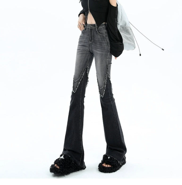 You’ll love these jeans! With a distressed patchwork design, these jeans are perfect for a casual day out. The wide leg style is comfortable and flattering, while the faded wash gives them a well-loved look. Pair them with a crop top and sandals for a laid-back look.