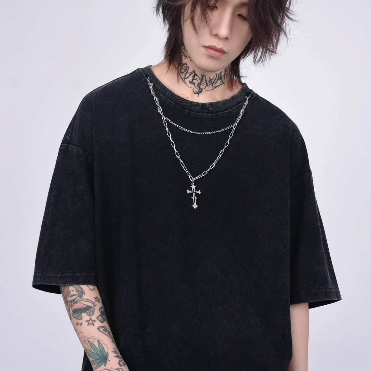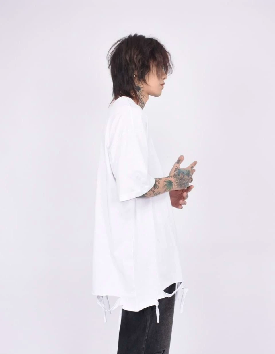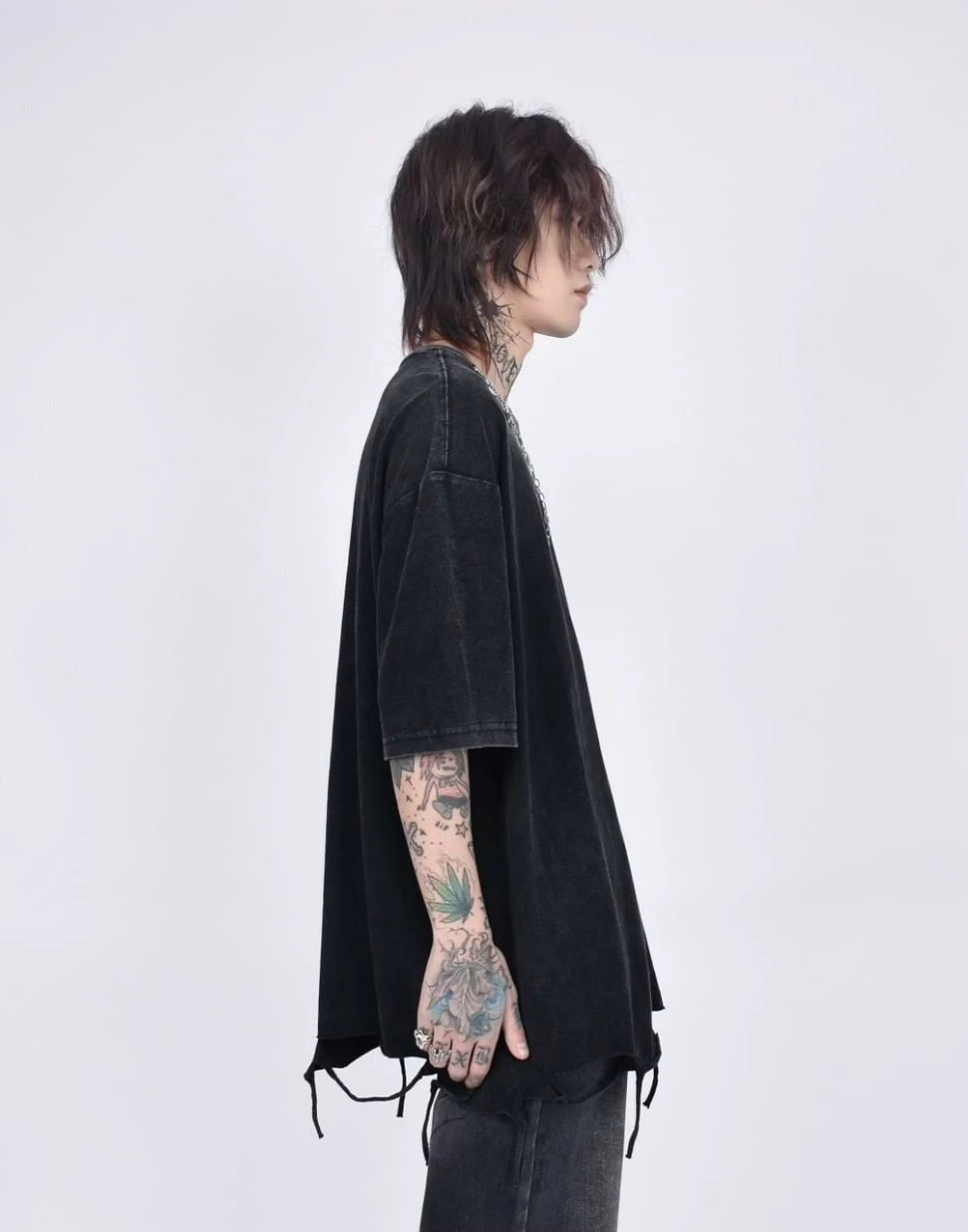 This casual Distressed T-Shirt is perfect for everyday wear. The distressed hem and double layer chain necklace accessory create an effortless, relaxed look. Pair this comfortable T-shirt with jeans for a stylish, put-together look.