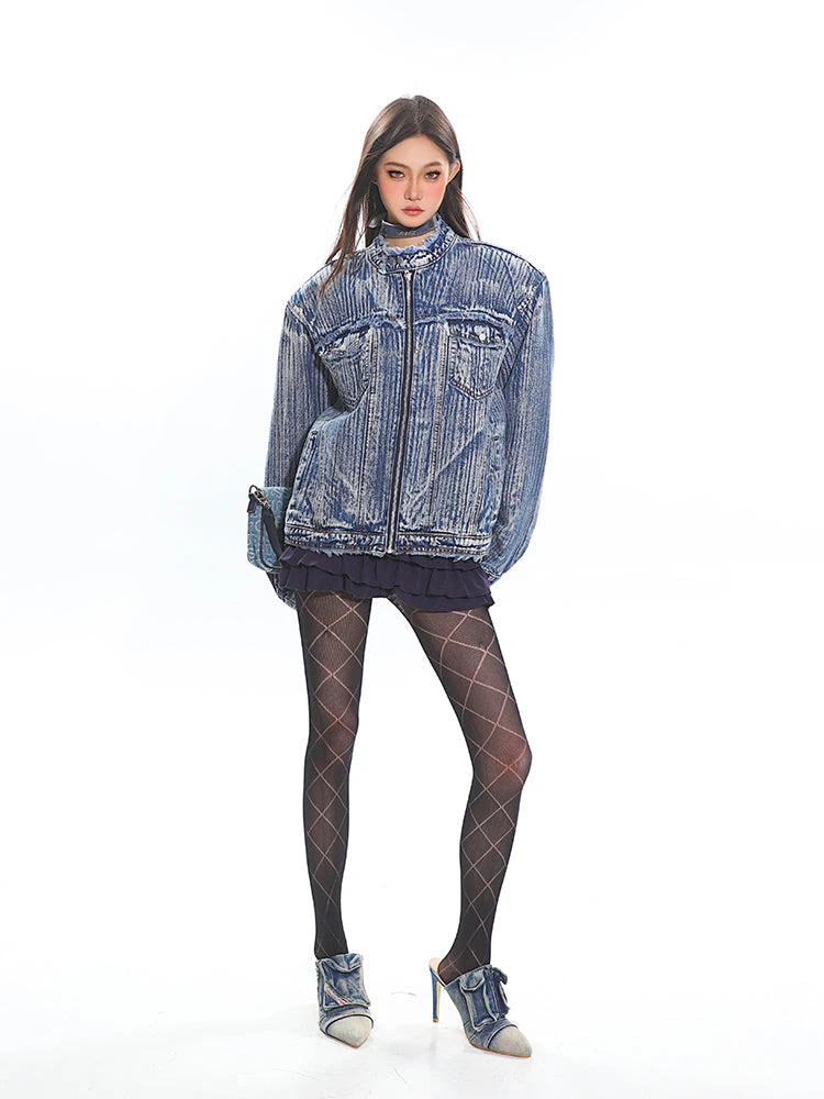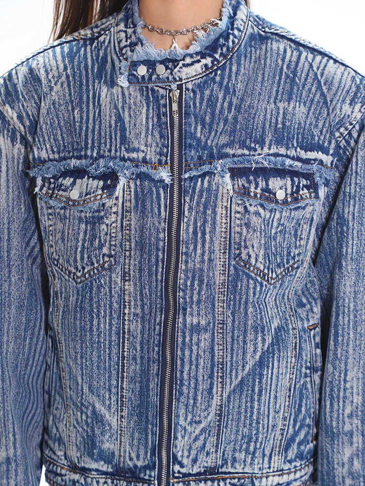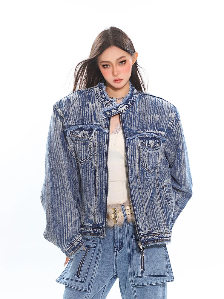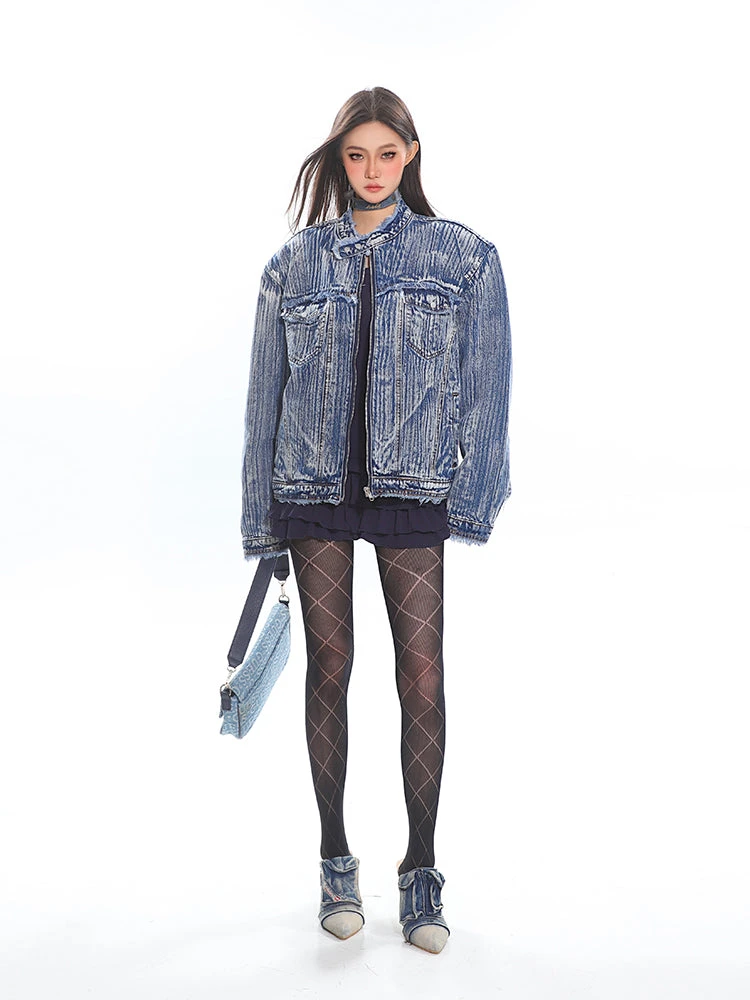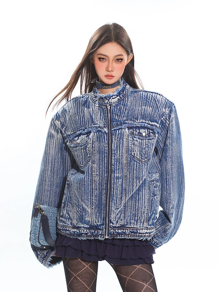 Crafted from heavyweight denim, this jacket brings texture and structure without feeling stiff. The unique wash and raw-edge details add depth, making it an easy standout in any outfit. The loose, boxy silhouette makes layering simple—throw it over a fitted top for contrast or pair it with oversized pieces for a relaxed streetwear feel.