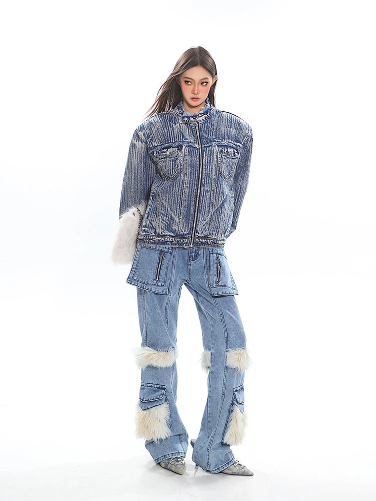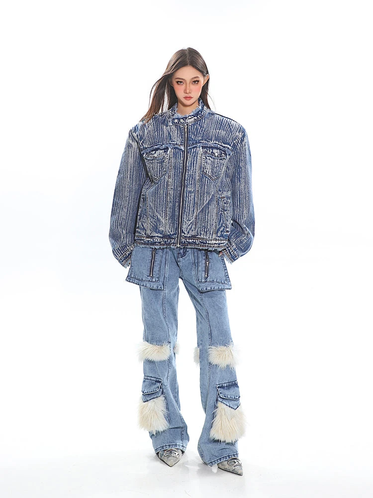 Wear it with cargo pants and chunky boots for an off-duty look, or balance the rugged texture with a sleek mini skirt and tights. Whether styled casually or as a statement layer, it’s the kind of jacket that pulls everything together.