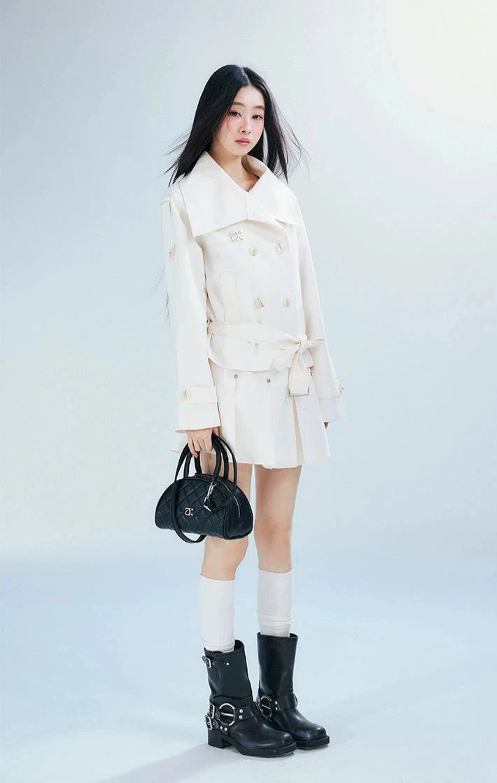 Reinvent your outerwear collection with this edgy Double-Breasted Cropped Trench Coat, a chic staple that transforms any look.