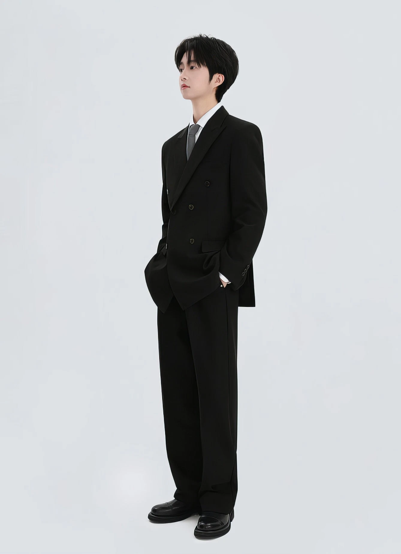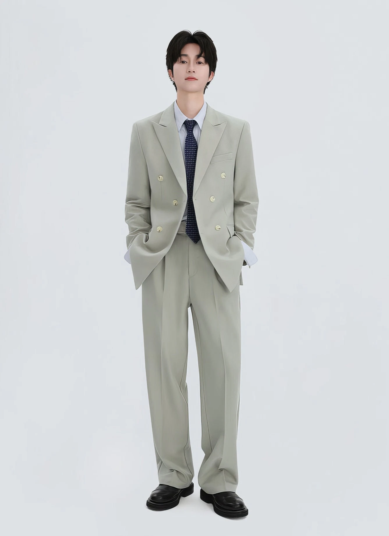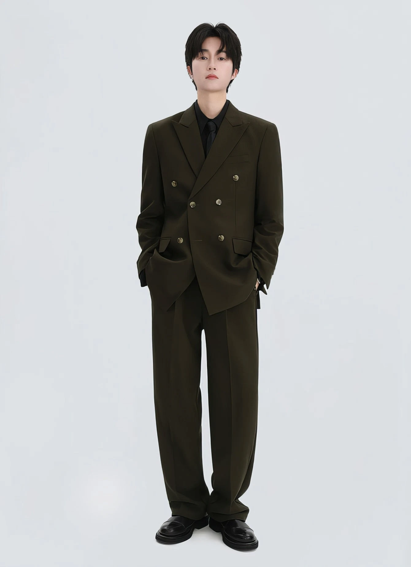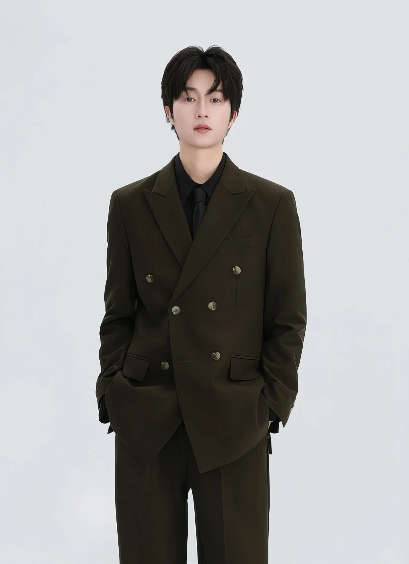 A double-breasted blazer that doesn’t try too hard — just sharp tailoring and well-executed details in a relaxed, oversized cut you’ll wear on repeat.