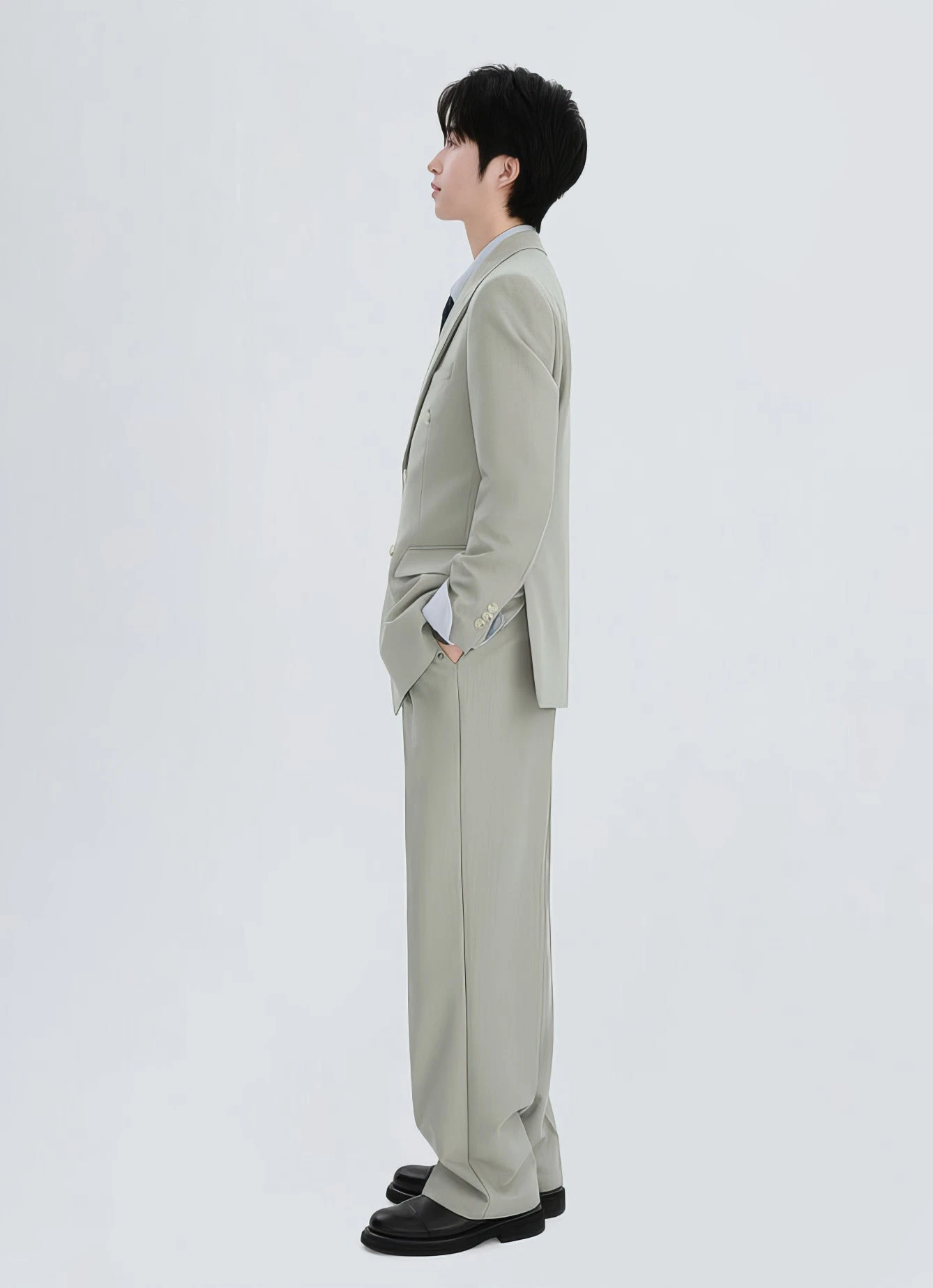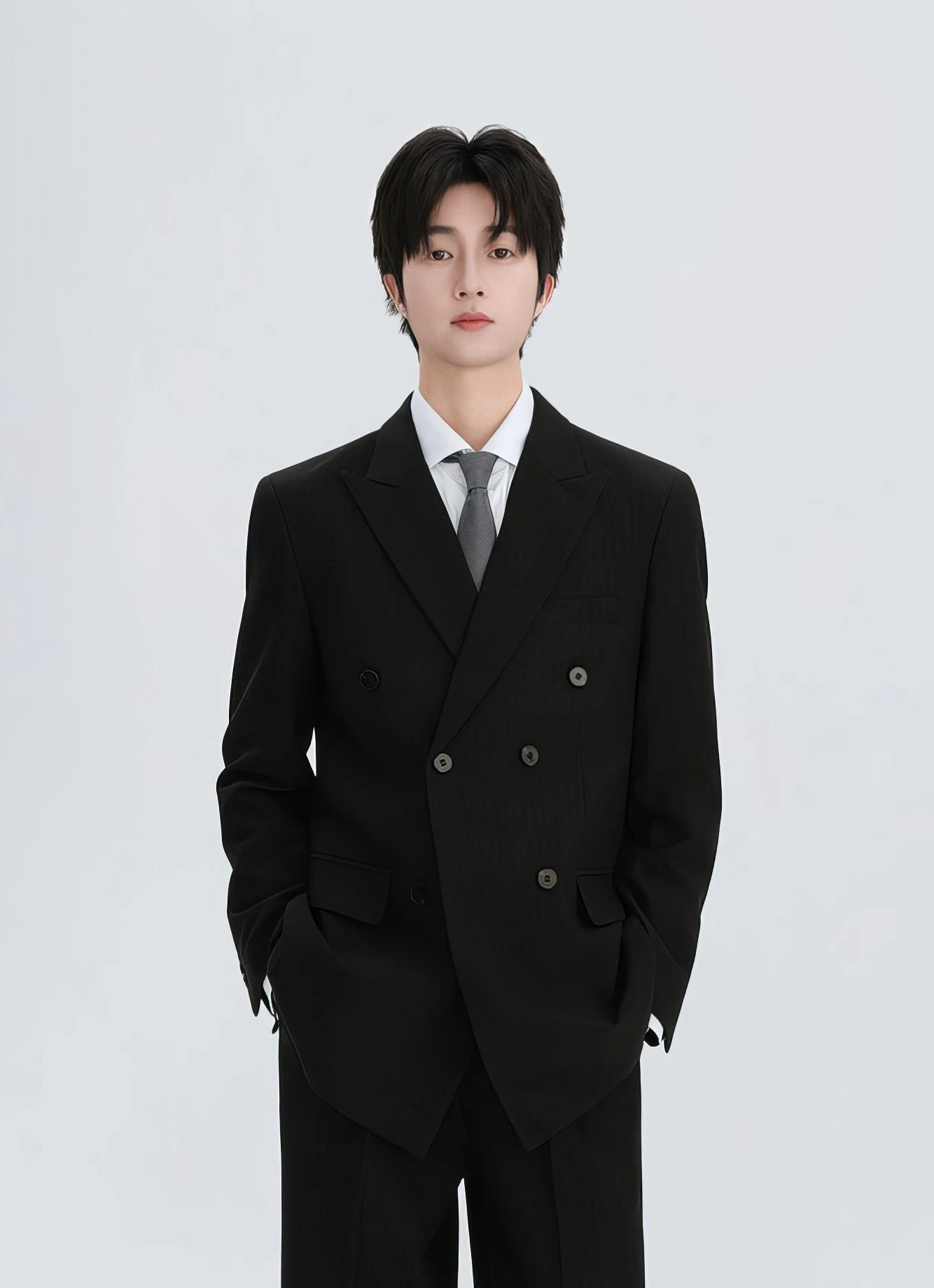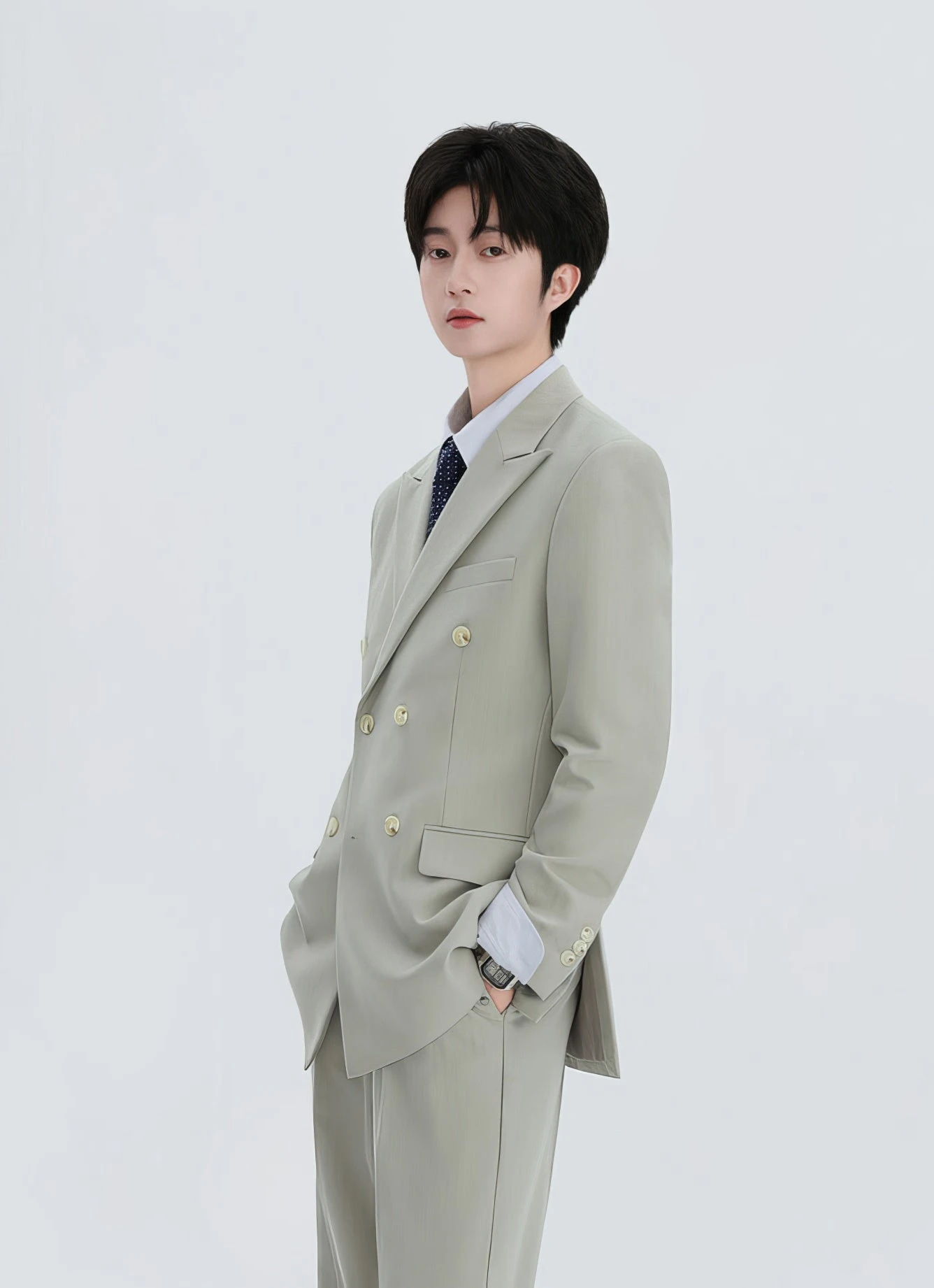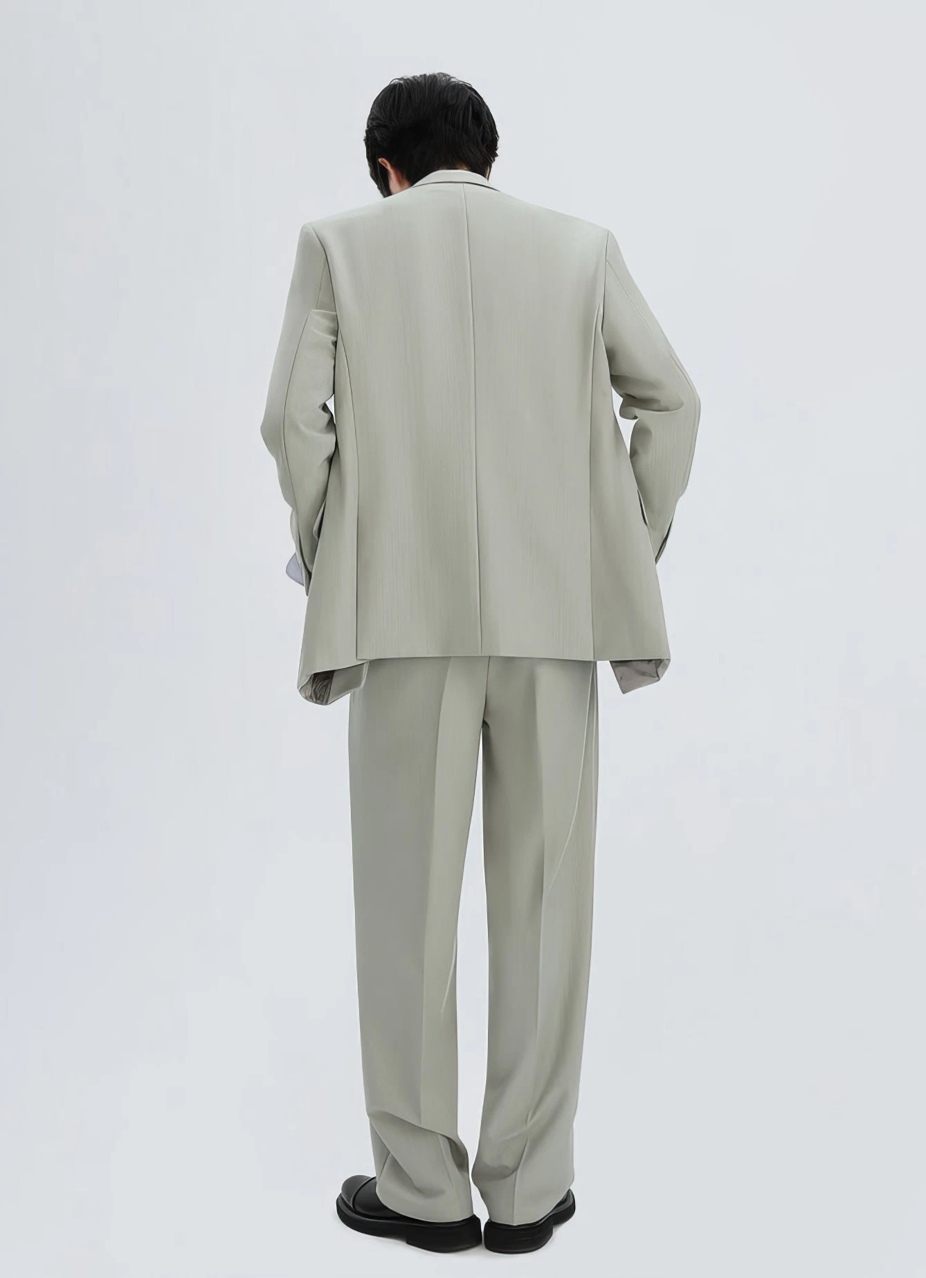 A double-breasted blazer that doesn’t try too hard — just sharp tailoring and well-executed details in a relaxed, oversized cut you’ll wear on repeat.