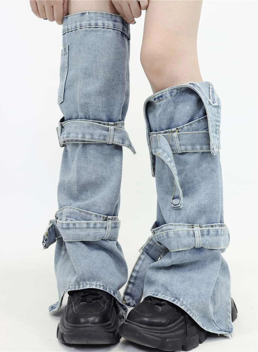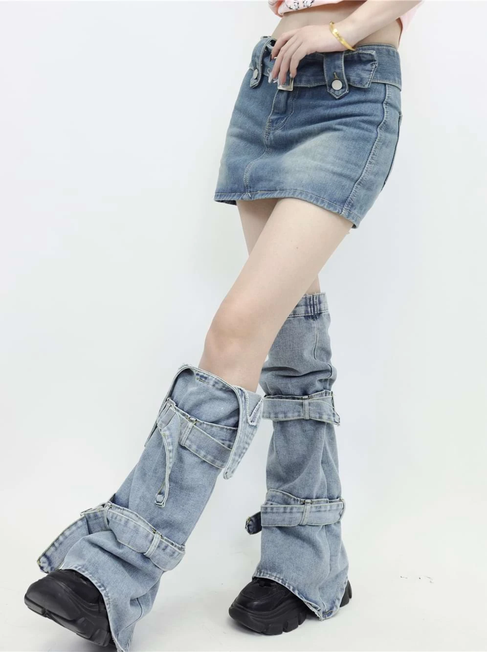 Catch everyone’s eye this season in the Double Strap Denim Leg Warmers from nightcity clothing. Perfect for pairing with a denim skirt. With extra warmth and a sleek double strap design, these leg warmers are sure to become the envy of all your friends. Keep your outfit unique and on trend with these denim leg warmers that demonstrate both comfort and fashion.