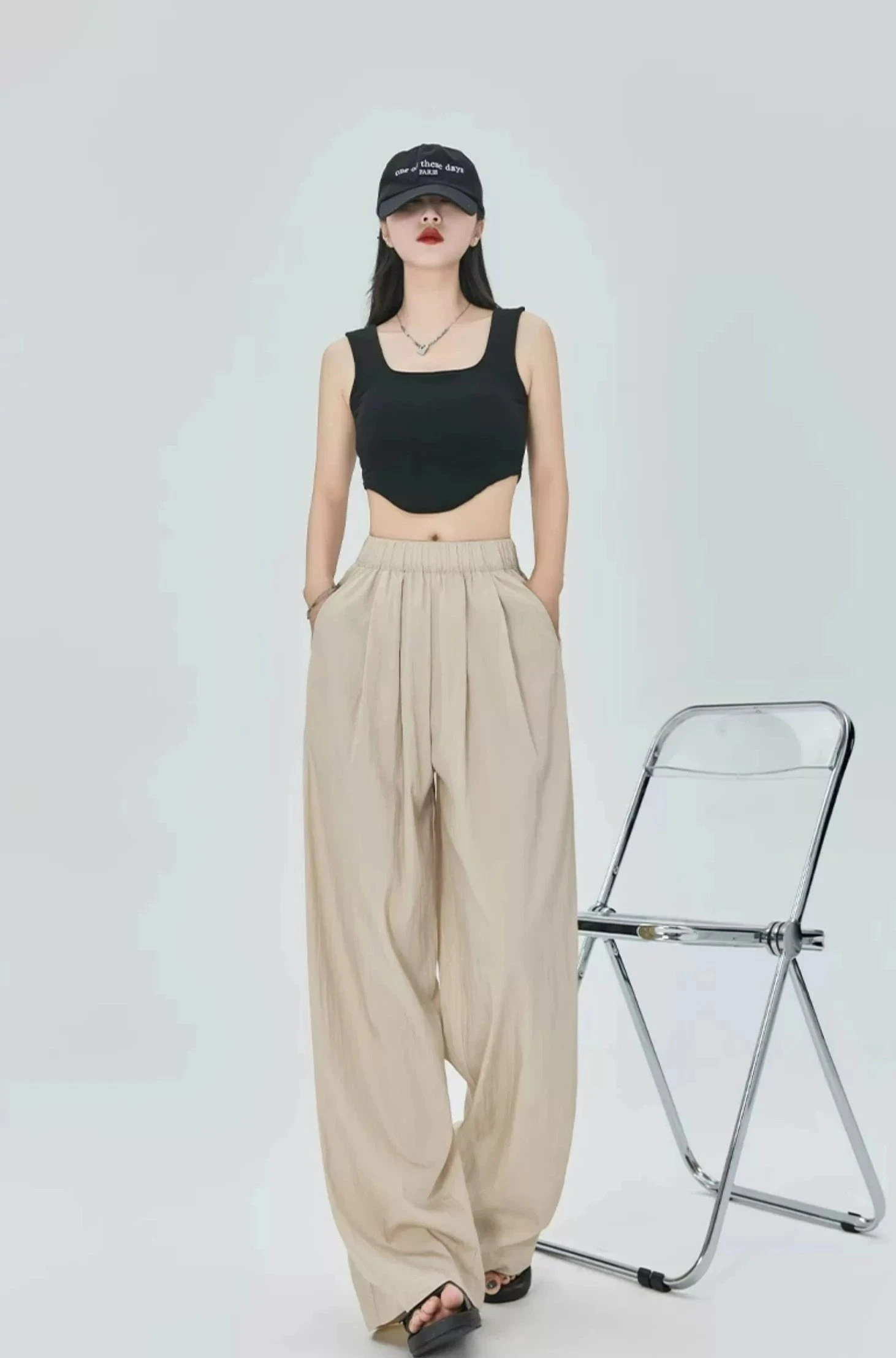 Pair these versatile trousers with a fitted blouse and heels for a professional day look, or wear them with a casual tee and sneakers for weekend outings. Their timelessly chic style makes them suitable for a variety of occasions, while the elastic waist ensures all-day comfort.