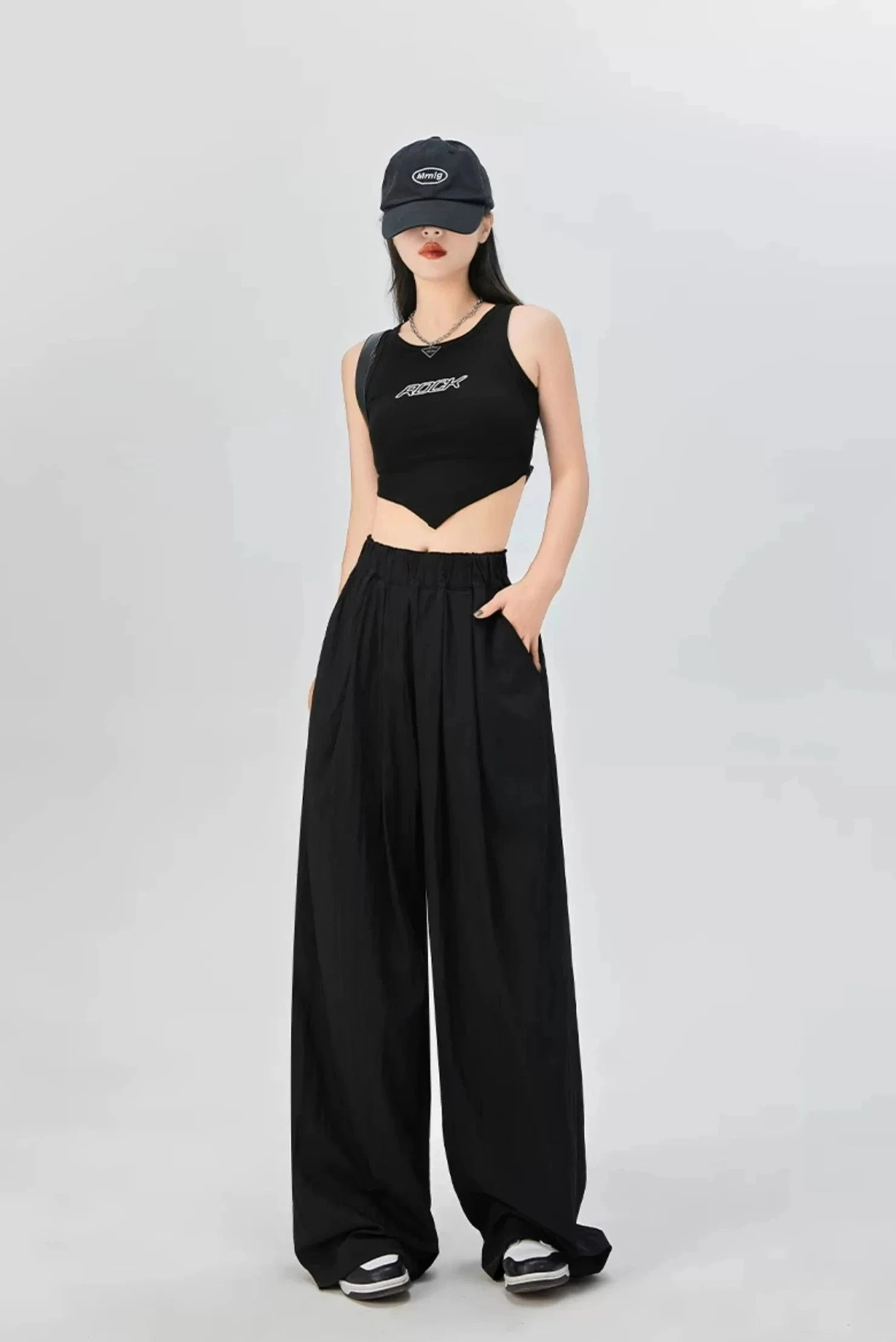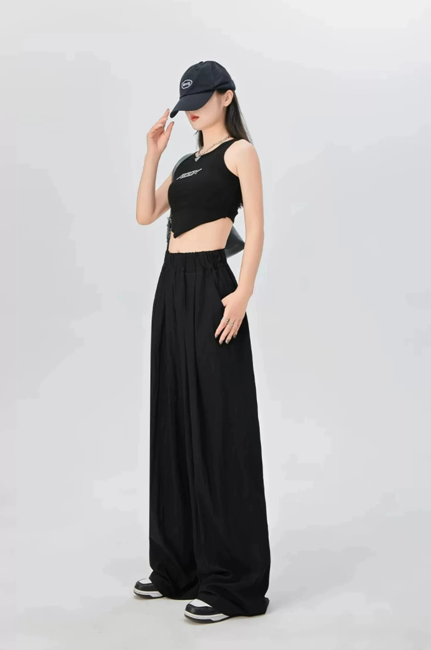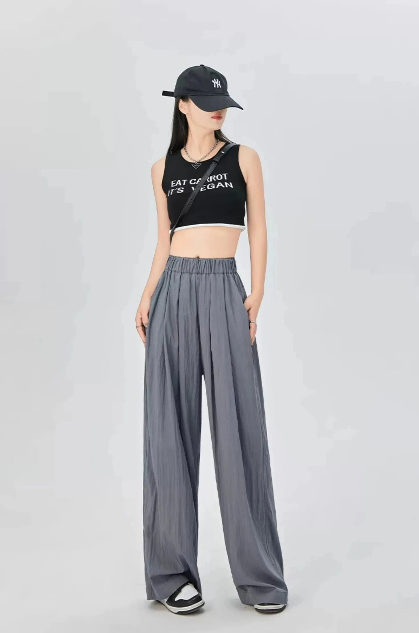Fit: High-waisted, loose fit