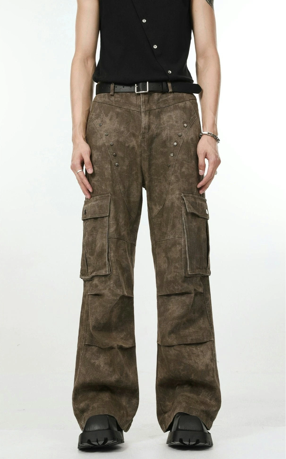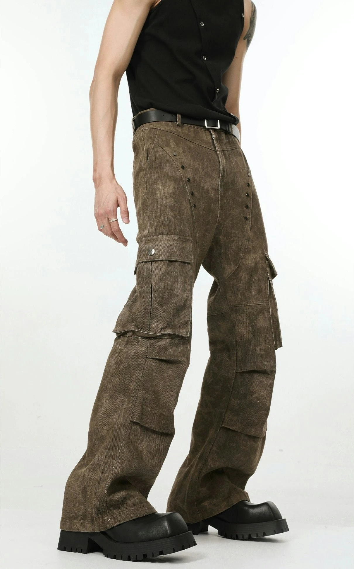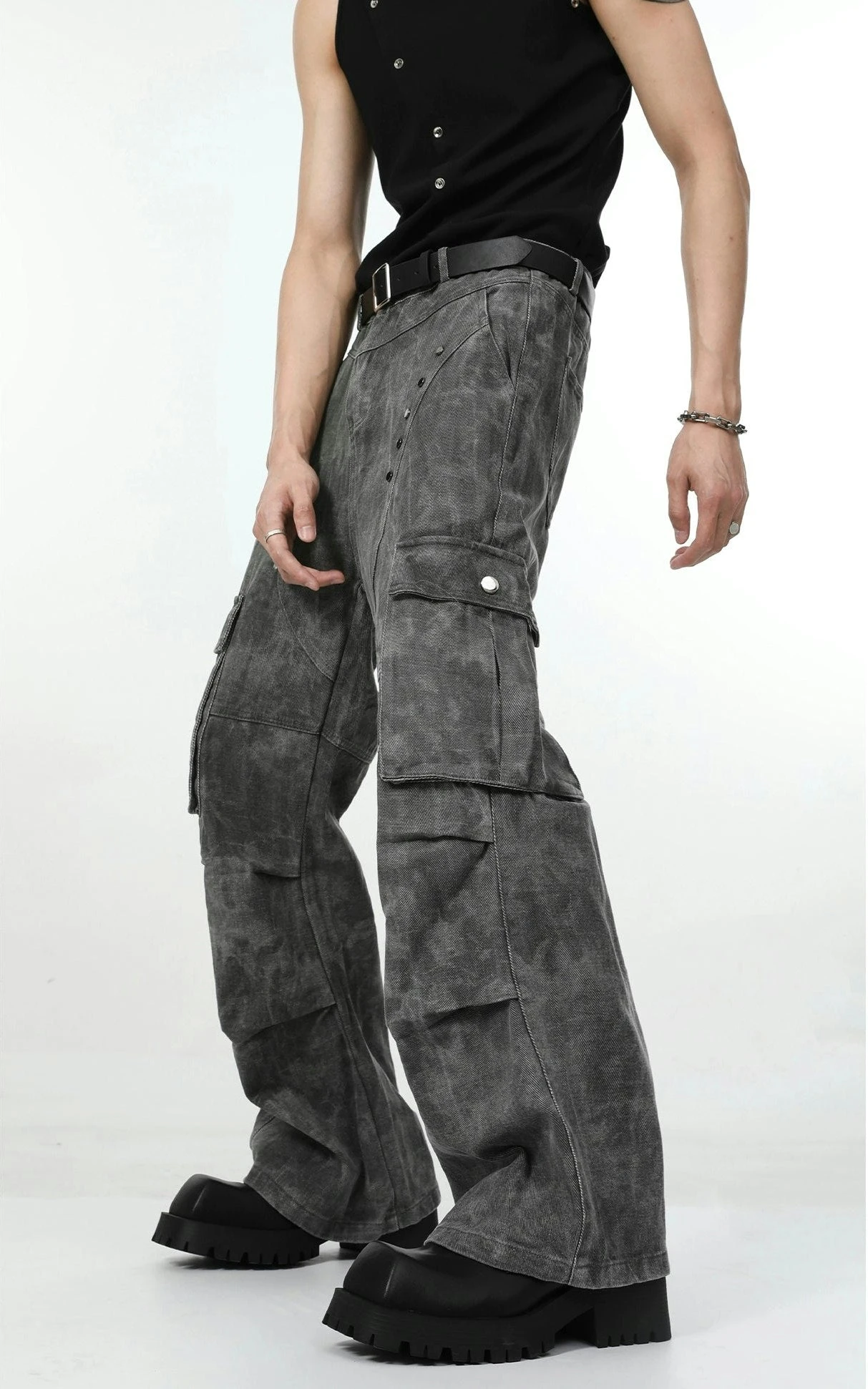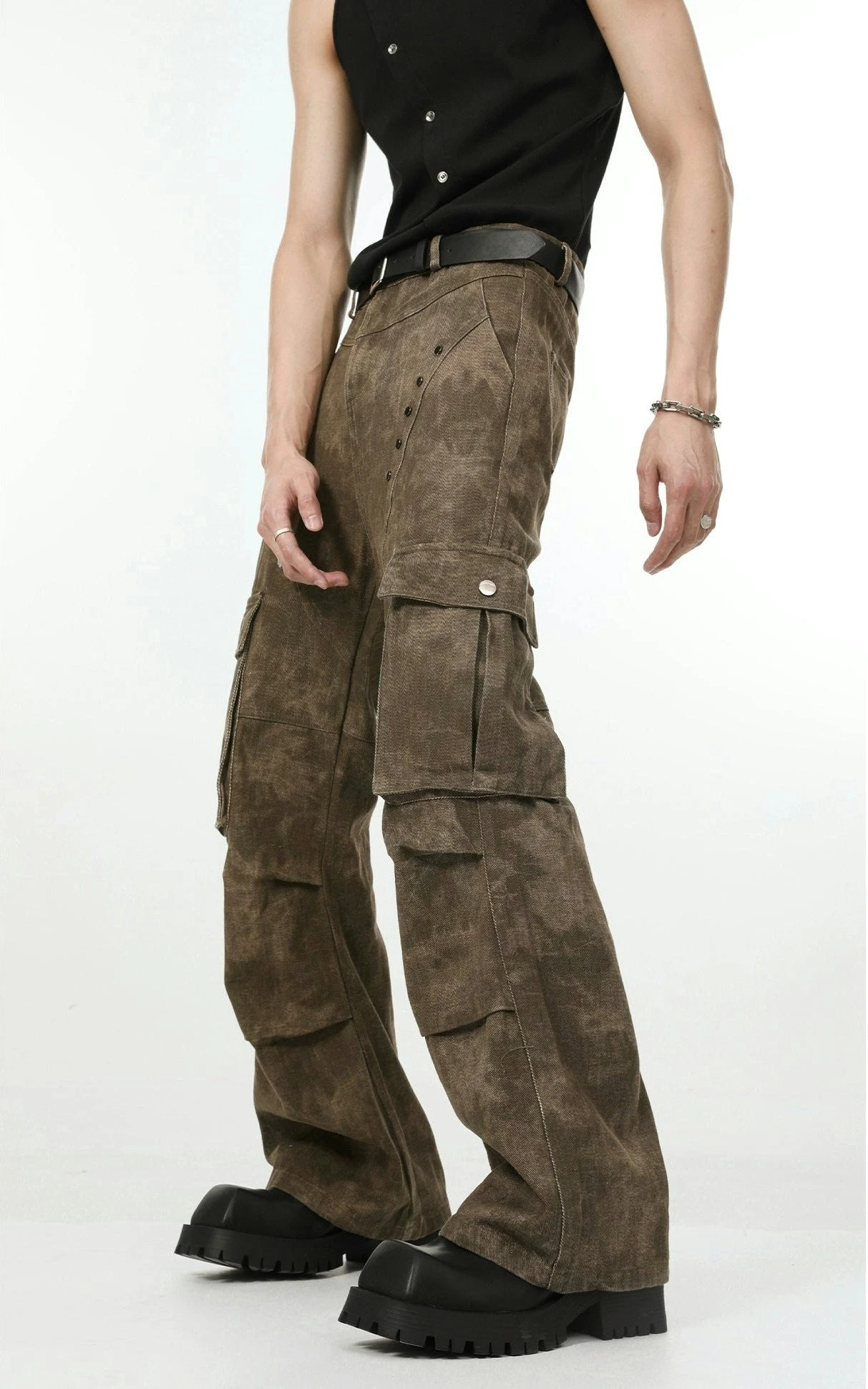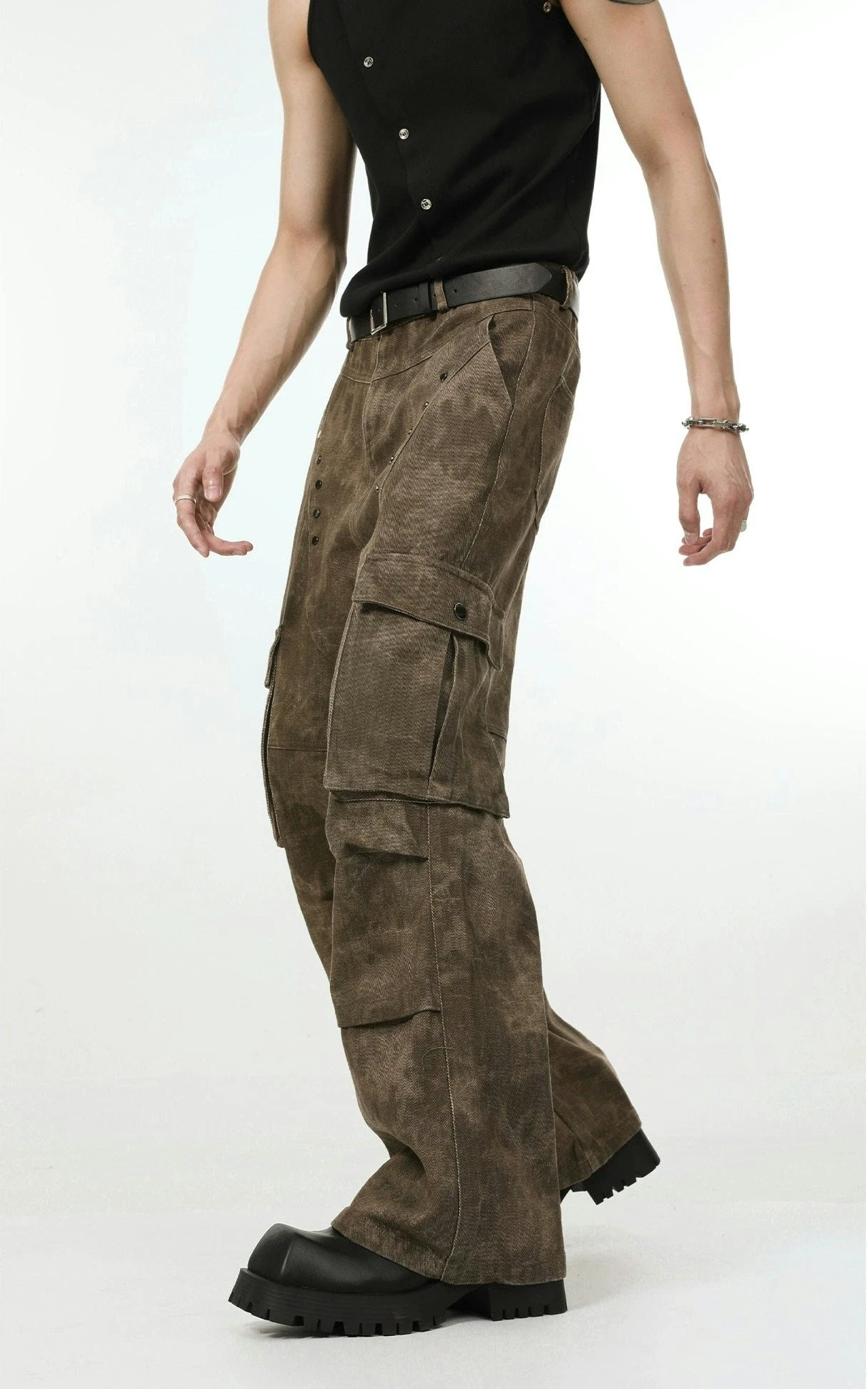 Experience the ultimate blend of style and utility with our Faded Camo-Wash Multi-Pocket Cargo Trousers, designed for the modern go-getter.
