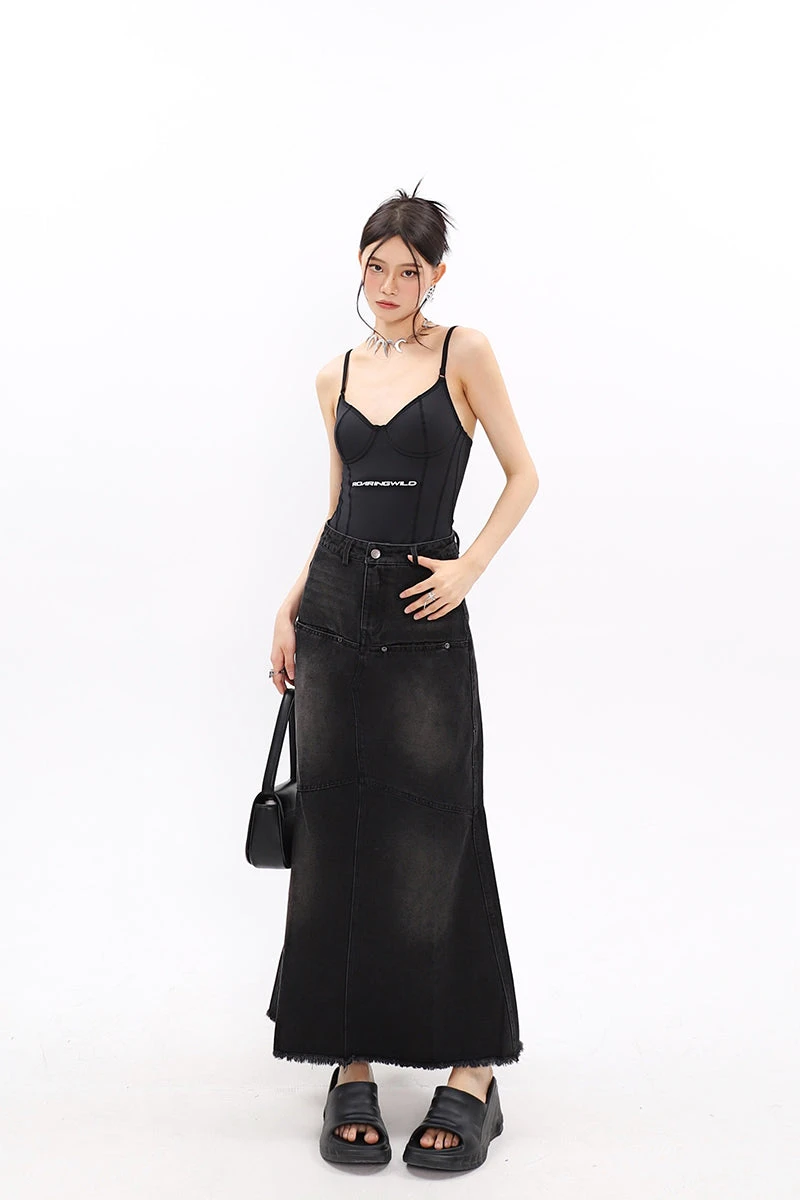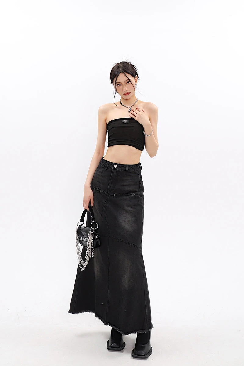 Slay your day-to-day look with this flowy denim midi skirt. With a serpentina fit and A-line silhouette, this skirt will give you a flowy and elegant casual look. The faded denim material makes it perfect for all occasions. Style this skirt up with blazers or dress it down with a t-shirt and sneakers for a more casual look.