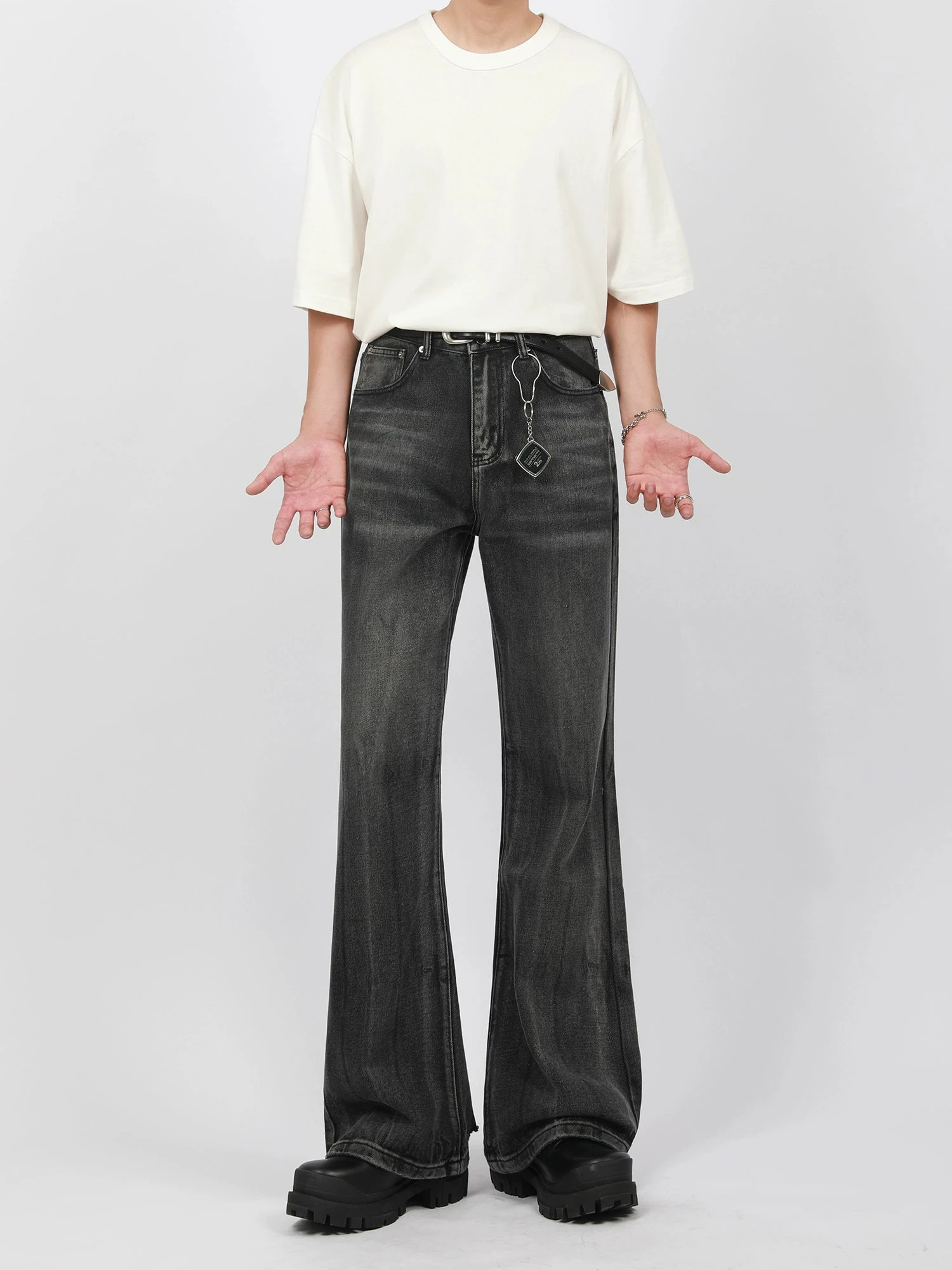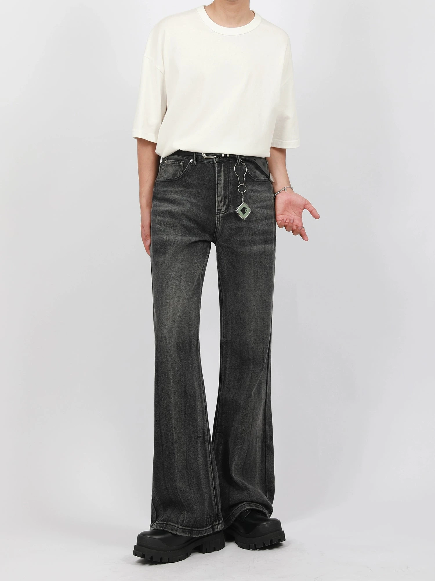 Experience a blend of vintage allure and modern comfort with our Faded Slim Fit Semi-Flare Denim Jeans.