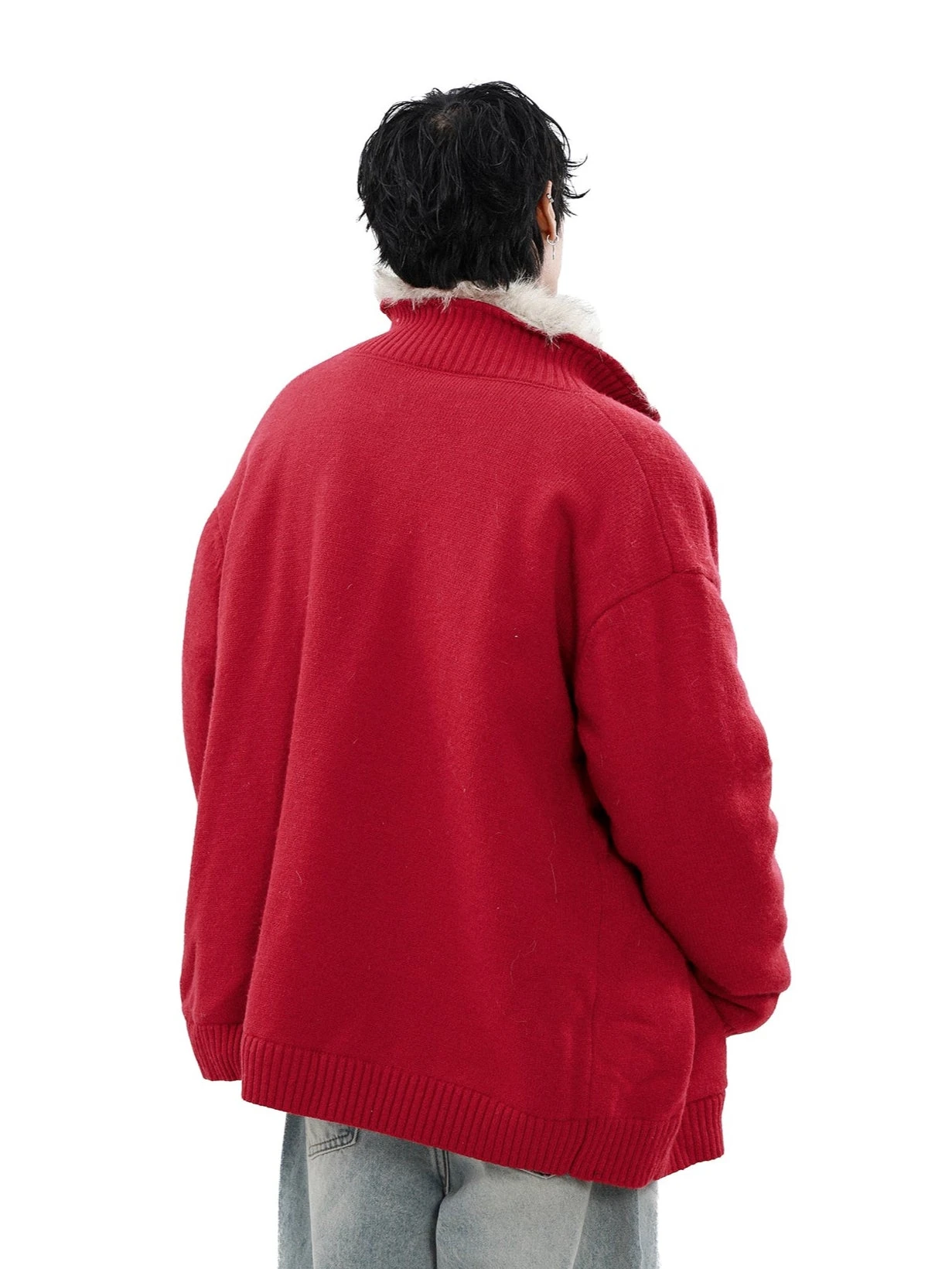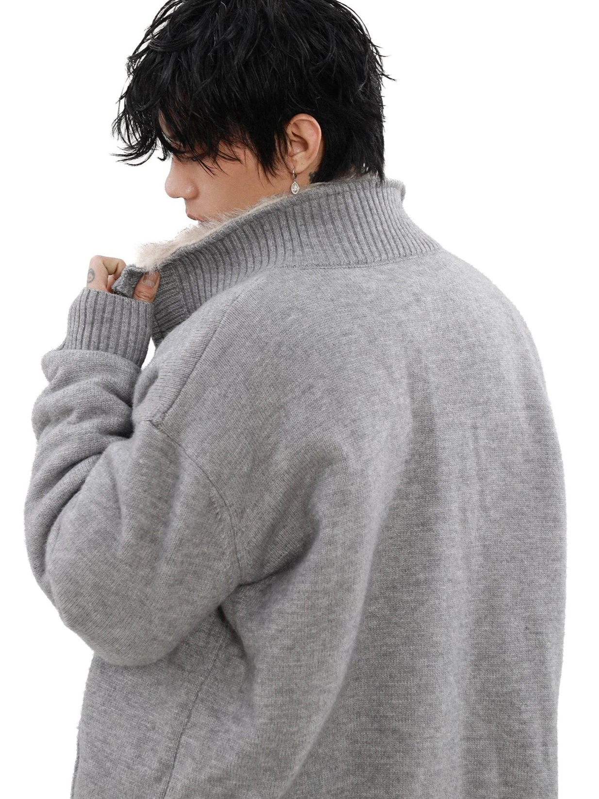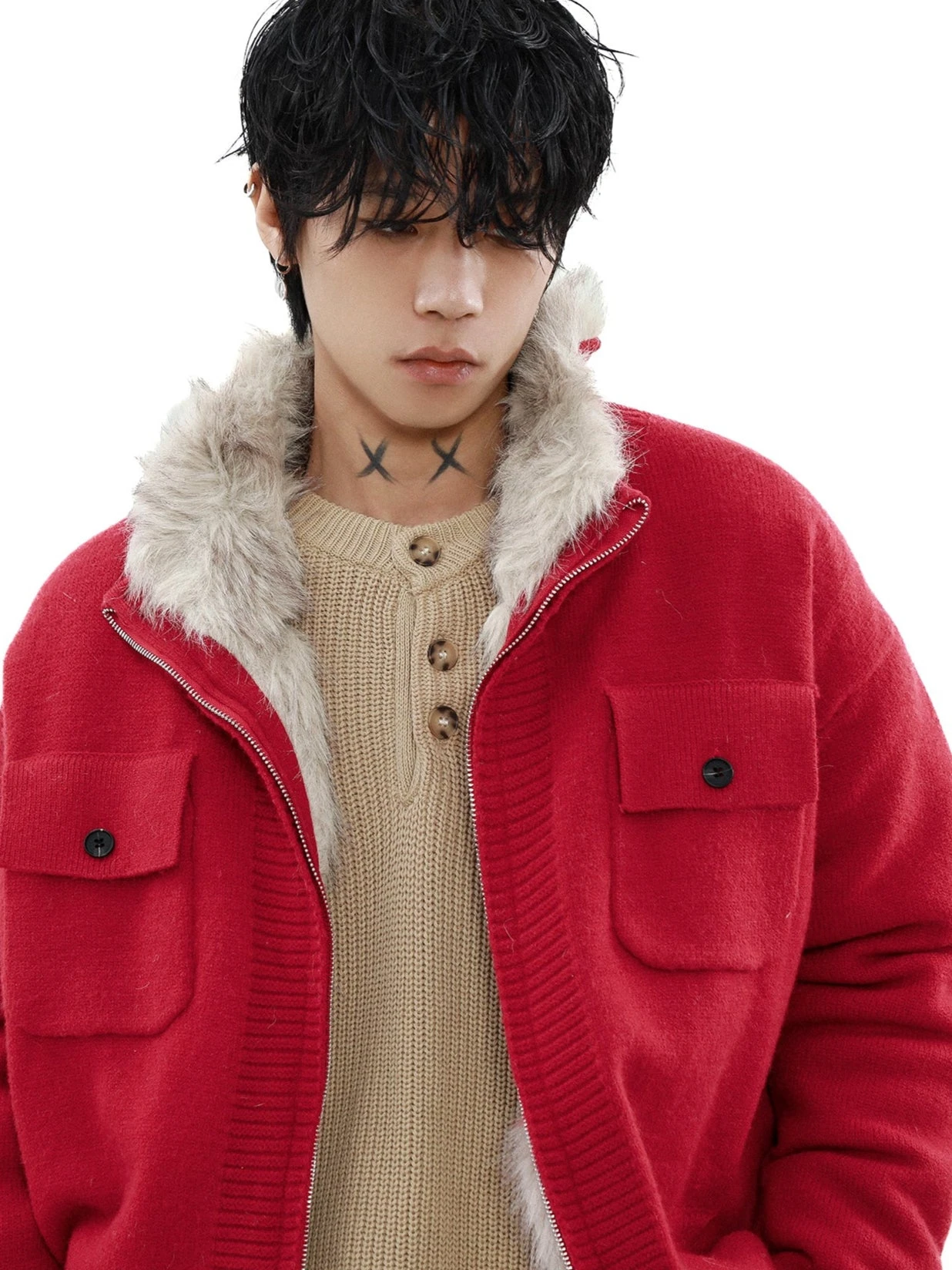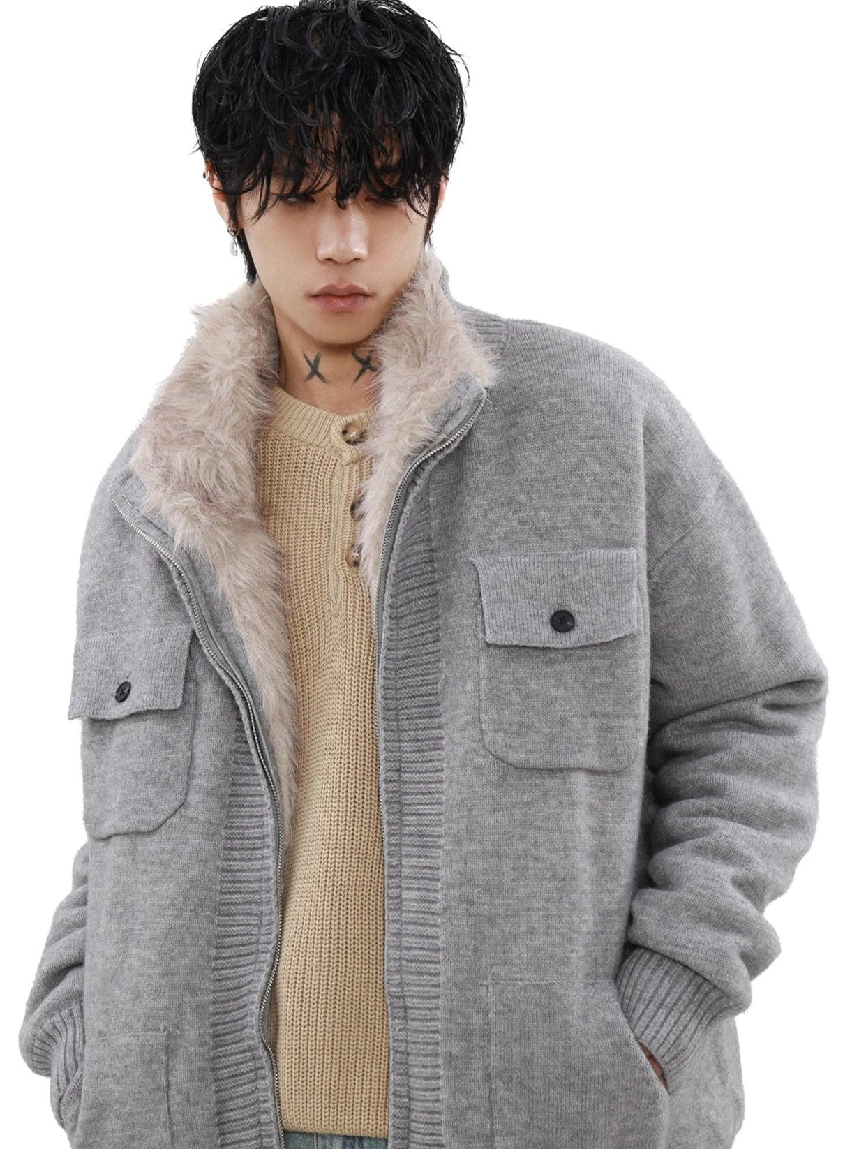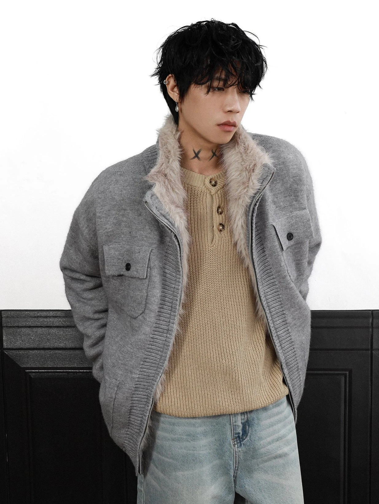 The Faux Fur Lined Ribbed Trim Zip Knit Jacket offers an effortlessly refined way to stay warm with its luxe faux fur lining and ribbed knit accents.