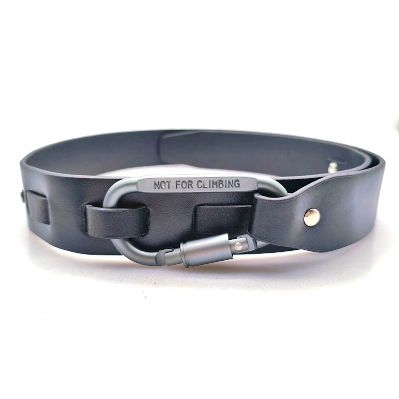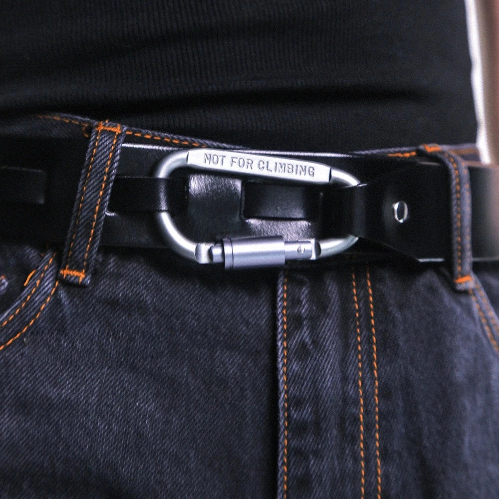 The metal buckle and carabiner loop offer a rugged, industrial edge while maintaining functionality and style for your everyday looks. Made from premium PU faux leather, the smooth finish and durable construction guarantee a polished aesthetic that stands the test of time. The engraved metal details and functional carabiner loop add a unique touch, making it a versatile accent for casual and semi-formal outfits alike.