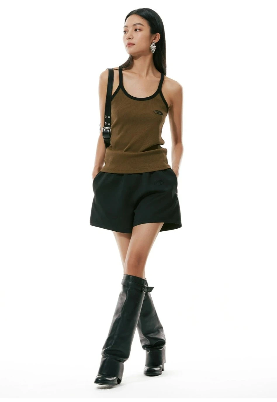 Constructed with a premium blend of 94% polyester and 6% spandex, these shorts are tailored to be both durable and flexible, accommodating your on-the-go lifestyle. The flare cut and subtle embroidery detail embody a nonchalant elegance, while the elastic waistband ensures a perfect and comfortable fit. Ideal for those seeking a blend of edgy sophistication and relaxed wearability.