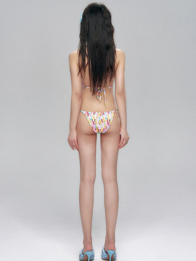 Embrace the sun with confidence in our Floral Halter Neck Bikini featuring a charming side tie sarong that adds a touch of elegance to your beach day ensemble.