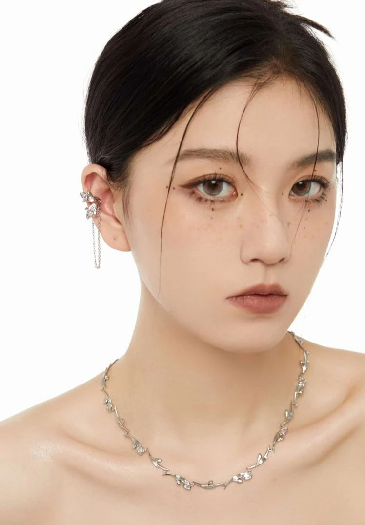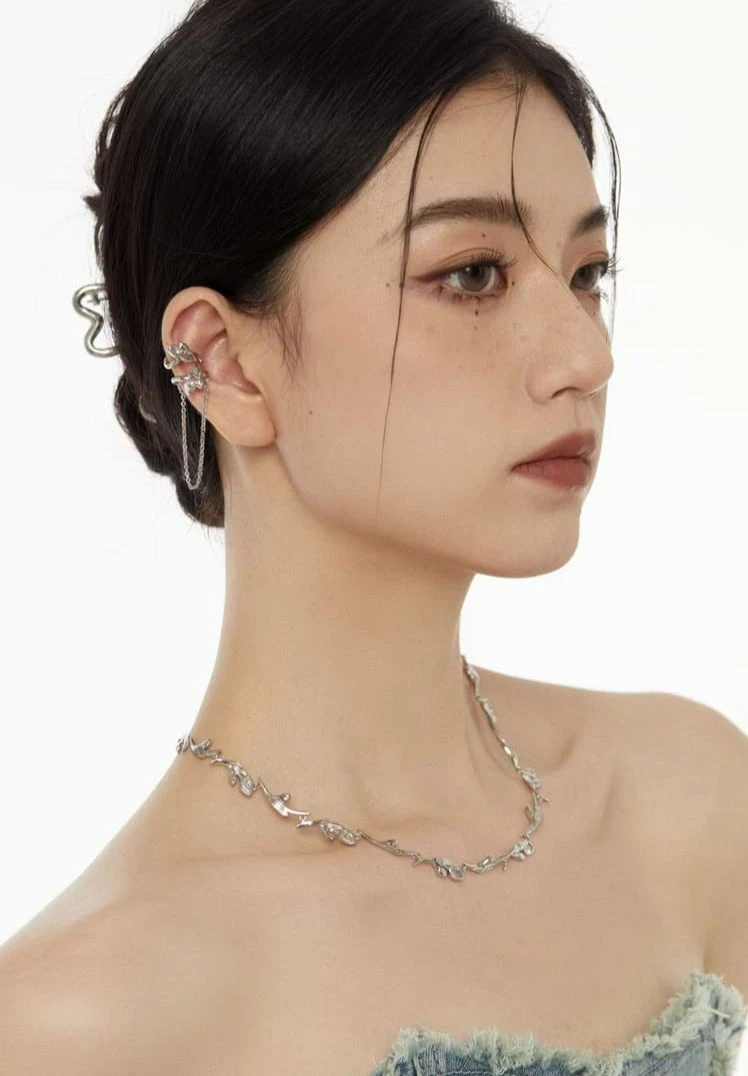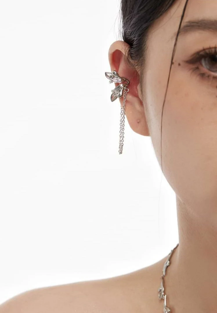 This fashion accessory features a Flower Ear Cuff with a Link Chain carefully designed to wrap around your ear. It is perfect for a night out, or to complete a timeless look. Wear it on your left or right ear, or both, for a personalized style.