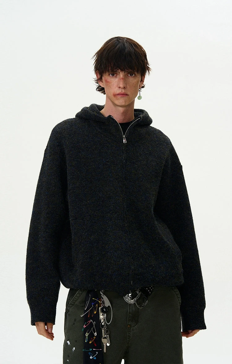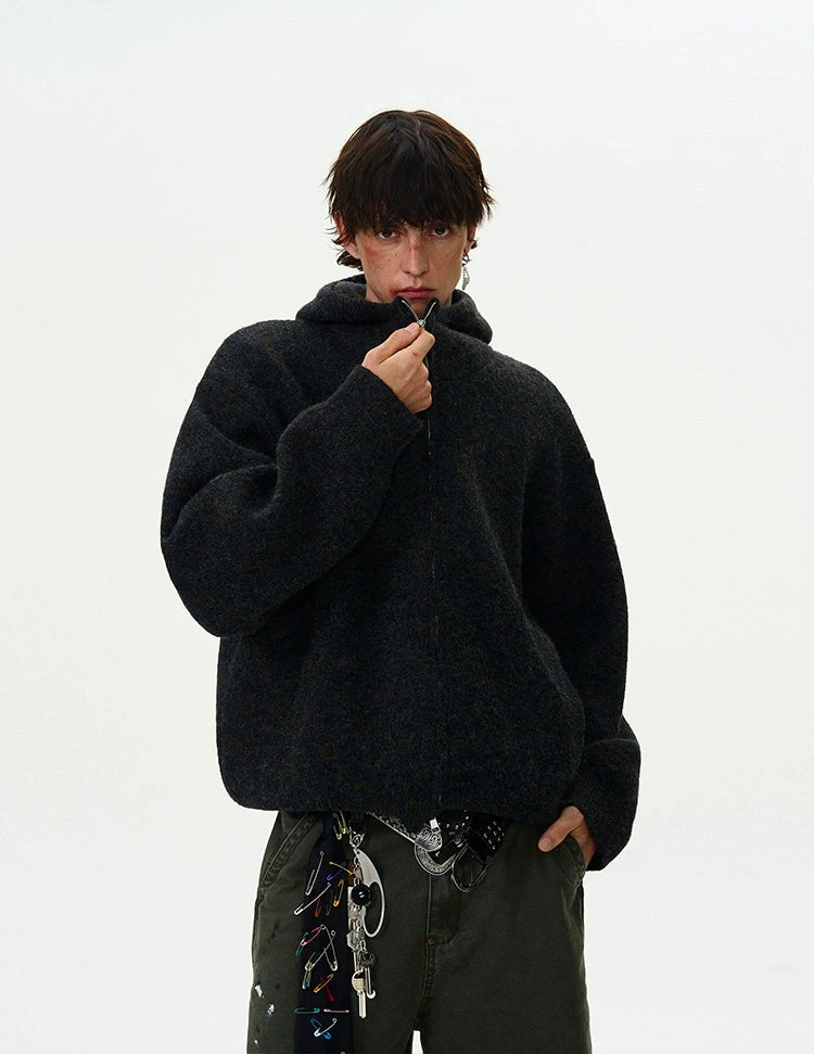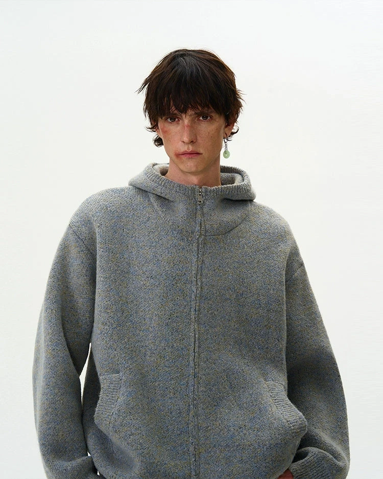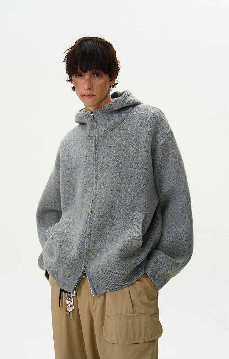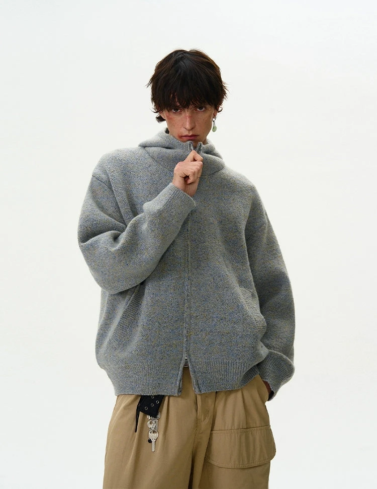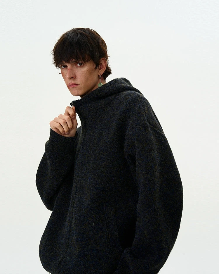 Experience the perfect blend of nonchalance and professional craftsmanship with our Funnel-Neck Hooded Knit Double-Zip Jacket.