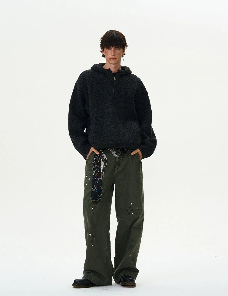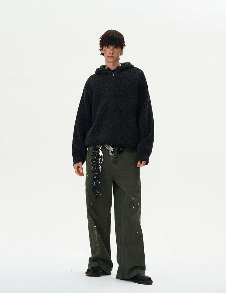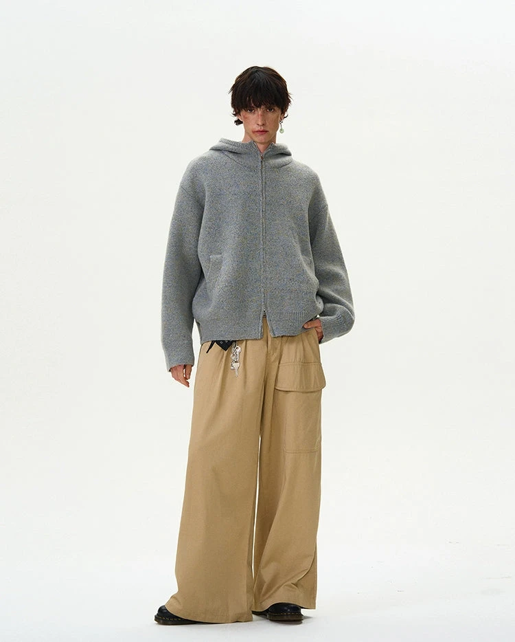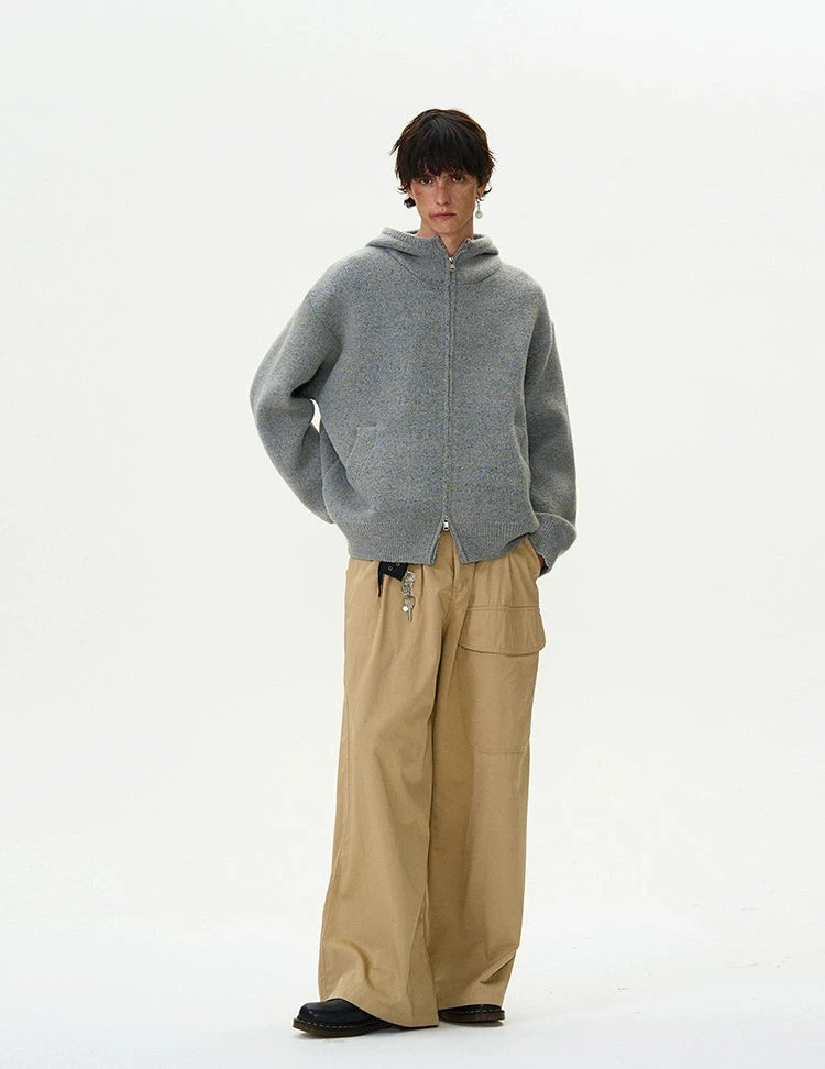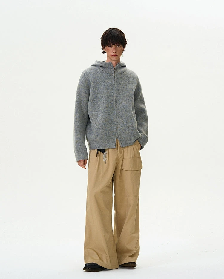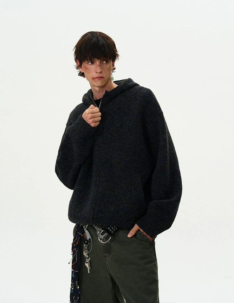 Experience the perfect blend of nonchalance and professional craftsmanship with our Funnel-Neck Hooded Knit Double-Zip Jacket.